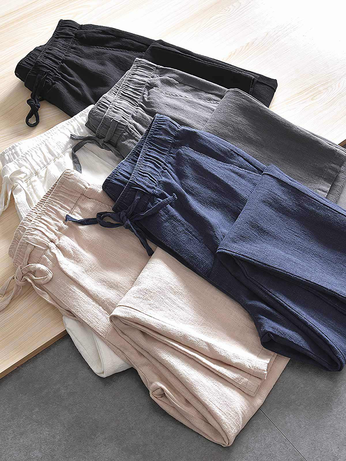 このストレートパンツはシンプルでクラシックなデザインであり、快適さと実用性を重視しています。ウエスト部分はゴム仕様で、多くの人のウエストにフィットし、着脱や調節が容易です。全体的に自然な色調で、素朴で洗練された視覚的な印象を与えます。