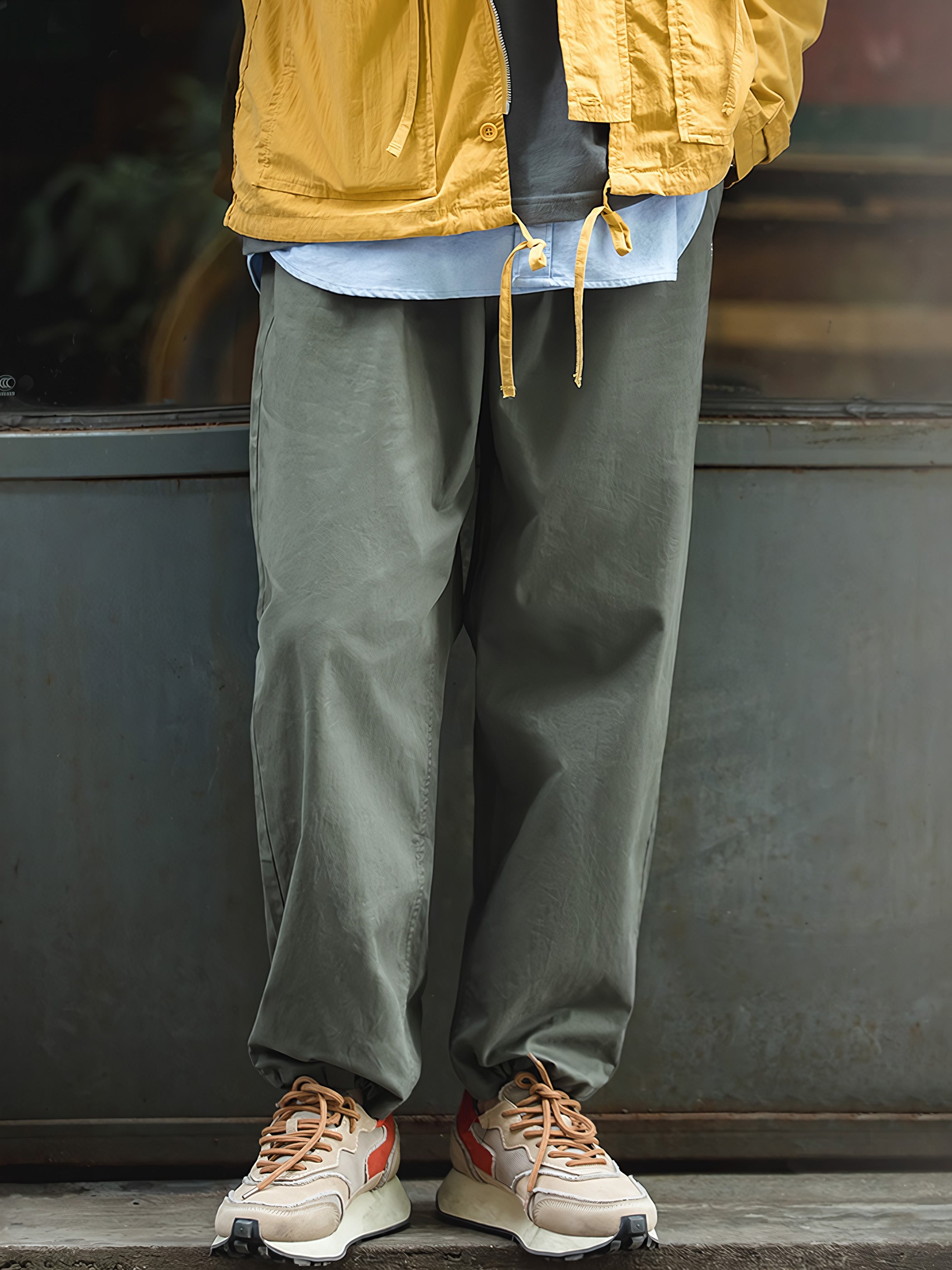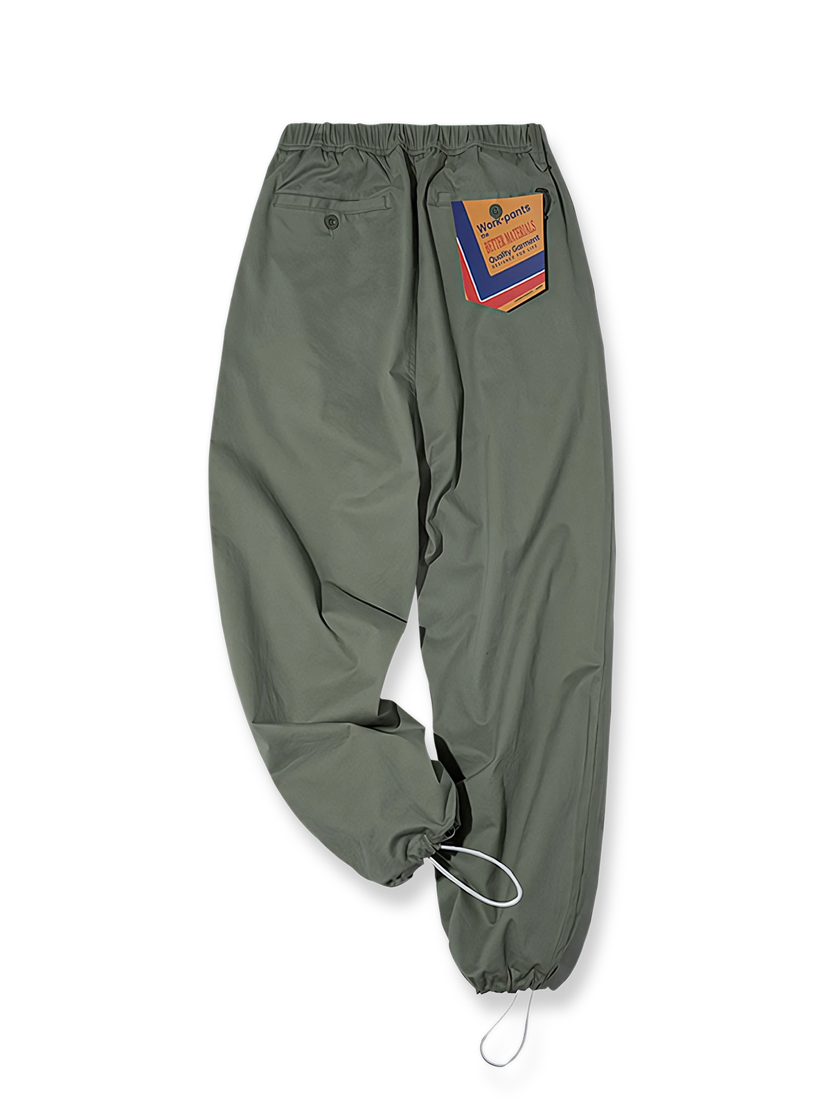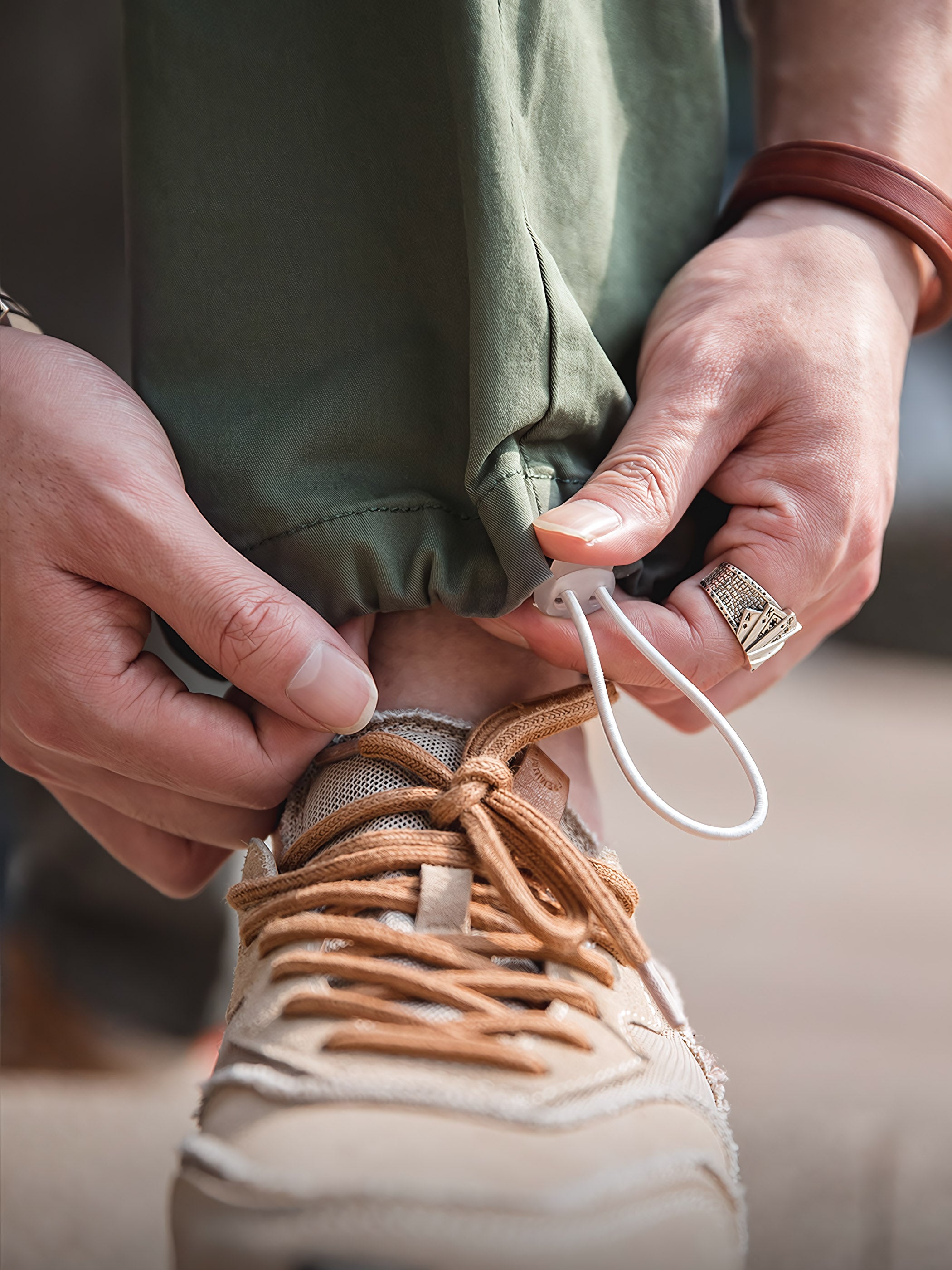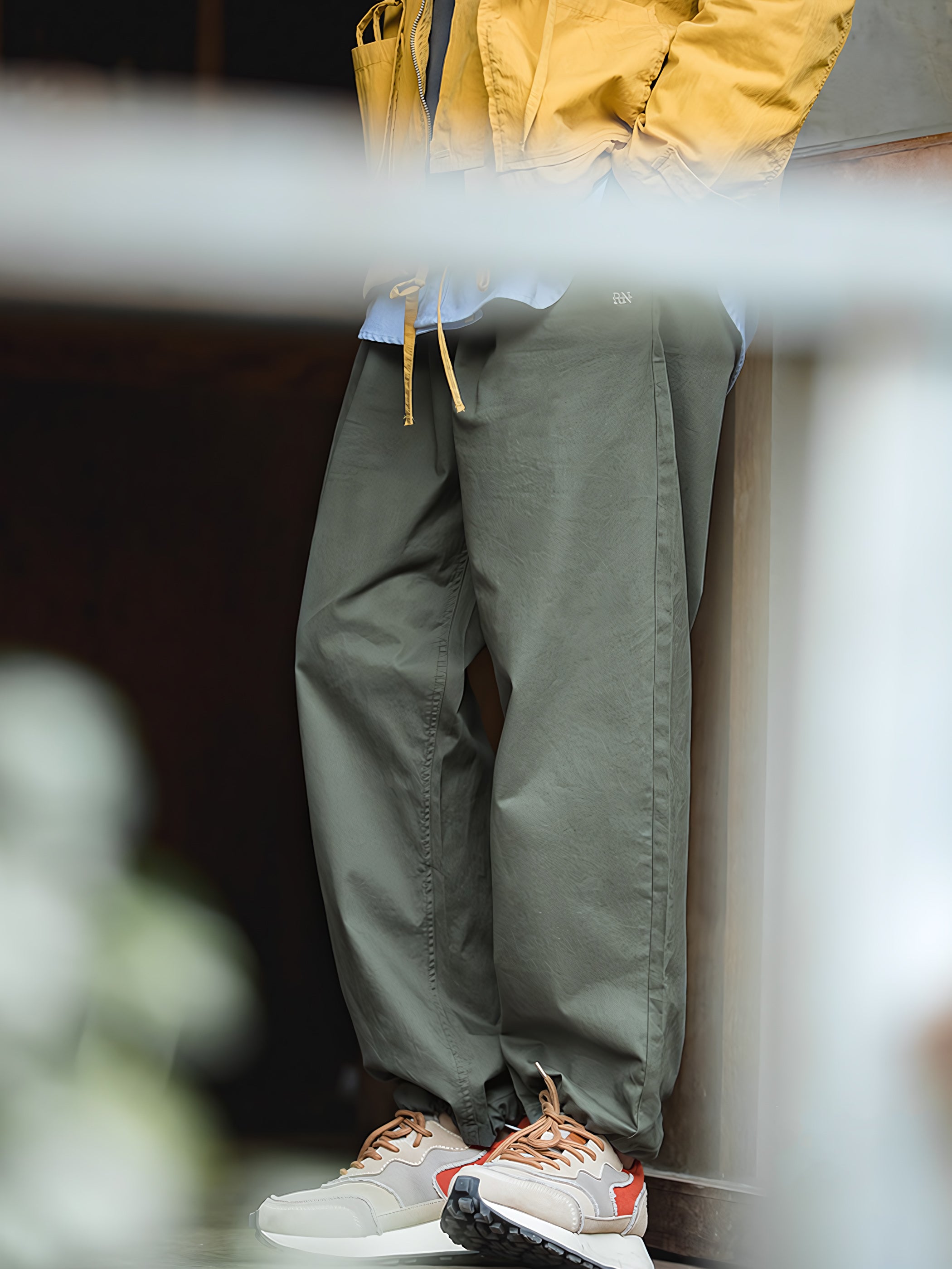 このような“イージーパンツ”は、軽くてストレッチ性もすぐれているので動きやすい。裾はドローコードで絞れる仕様に太さ調節機能付きで着脱が簡単になる。なめらかな肌触りで、いつでも快適に過ごせる。