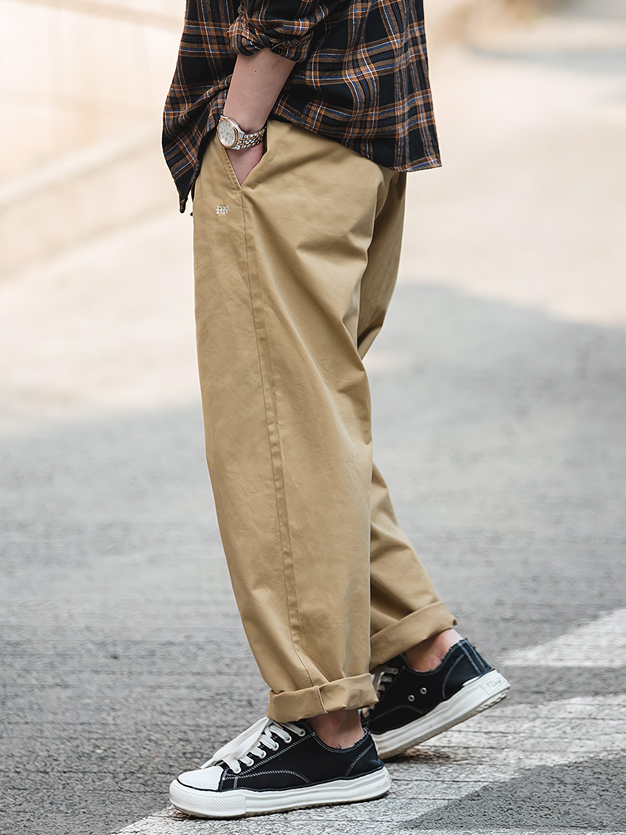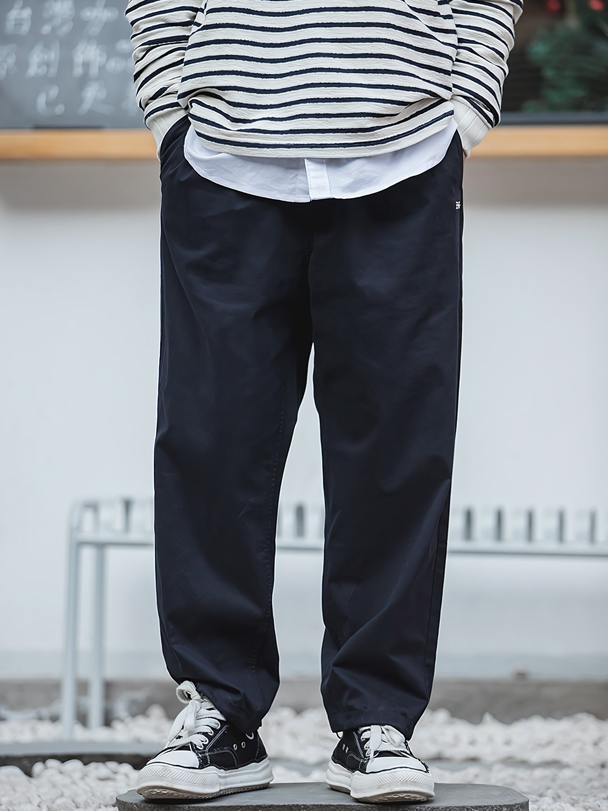 “イージーパンツ”とは文字通り、快適なはき心地が特徴のパンツです。高品質なリネンコットン素材を使用し、英字の刺繍も施されています。