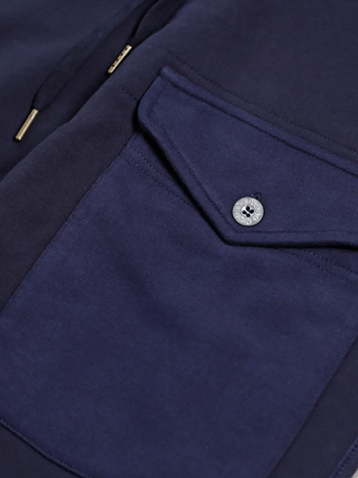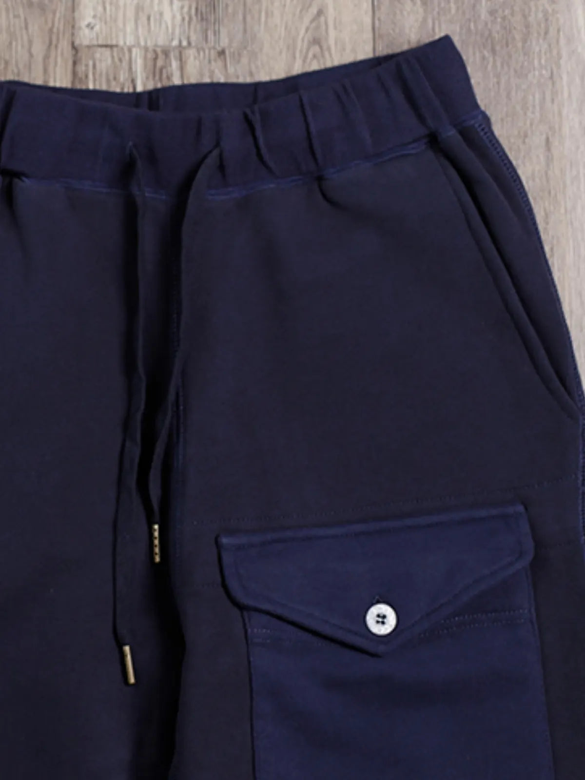重厚なフリース素材とカラーブロックのポケットデザインが特徴で、快適さとミリタリースタイルを兼ね備えたデイリーカジュアルジョガーパンツ。
