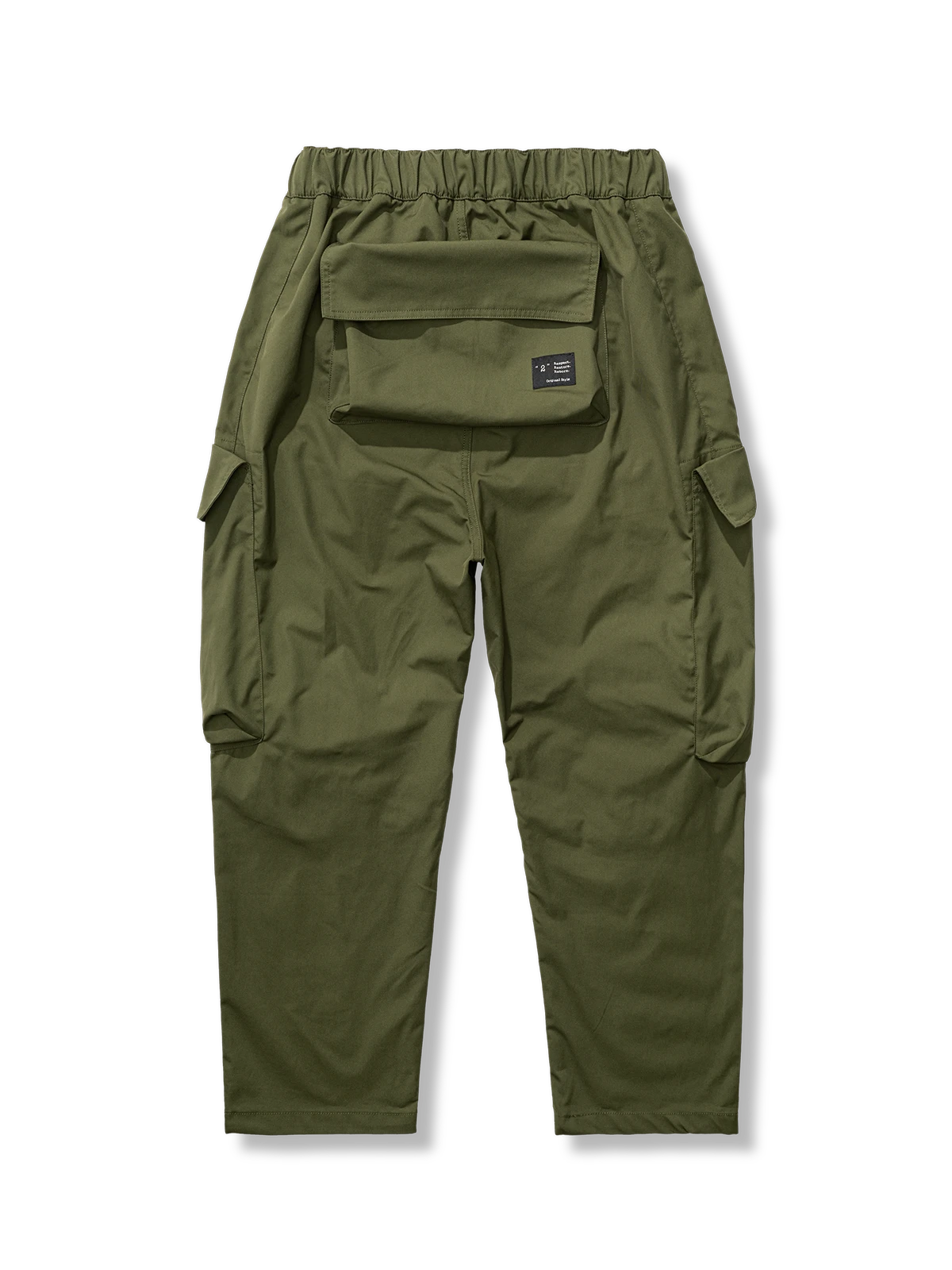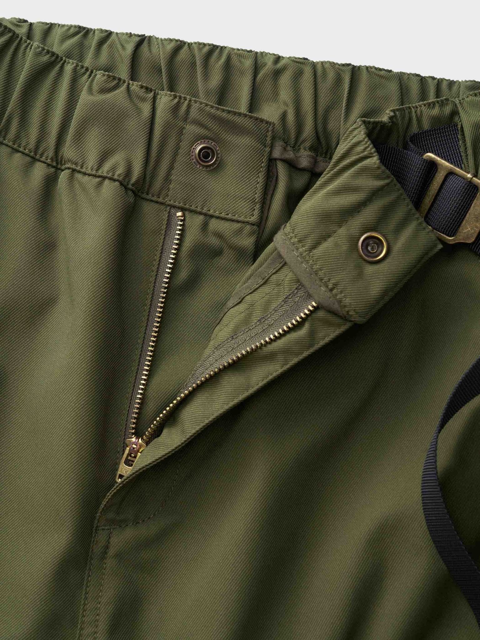 見た目の最大の特徴は、ヒップに取り付けられた横長の大きなフラップ付きカーゴポケット。この大きなポケットは、“ポンチョ”を入れるために採用された。また、フラップに関しては、伏せた状態でも中身が飛び出さないように採用されました。
