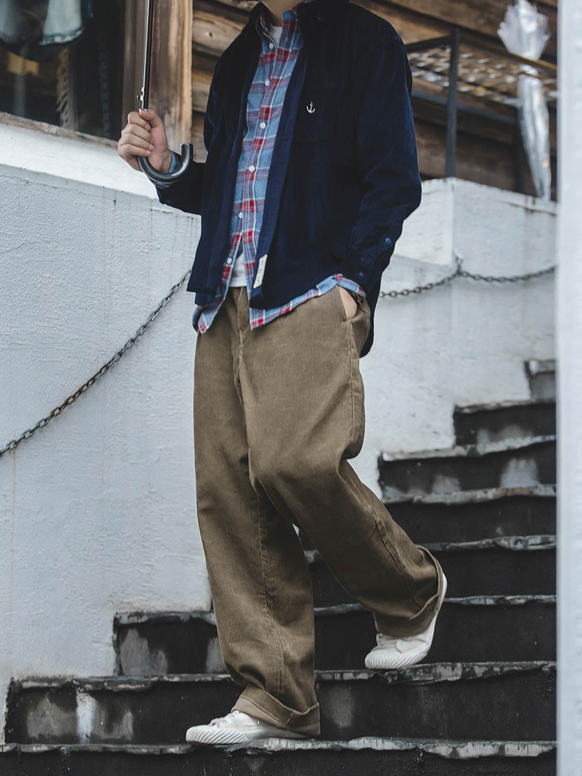 コーデュロイのロングパンツは、セーター、シャツ、またはTシャツとの組み合わせが最適です。レザーシューズやカジュアルシューズを合わせることで、暖かく洗練された秋冬のスタイルが完成します。カジュアルな場面や日常の仕事環境に適しており、クラシックでありながらモダンな感触を持たせることができます。