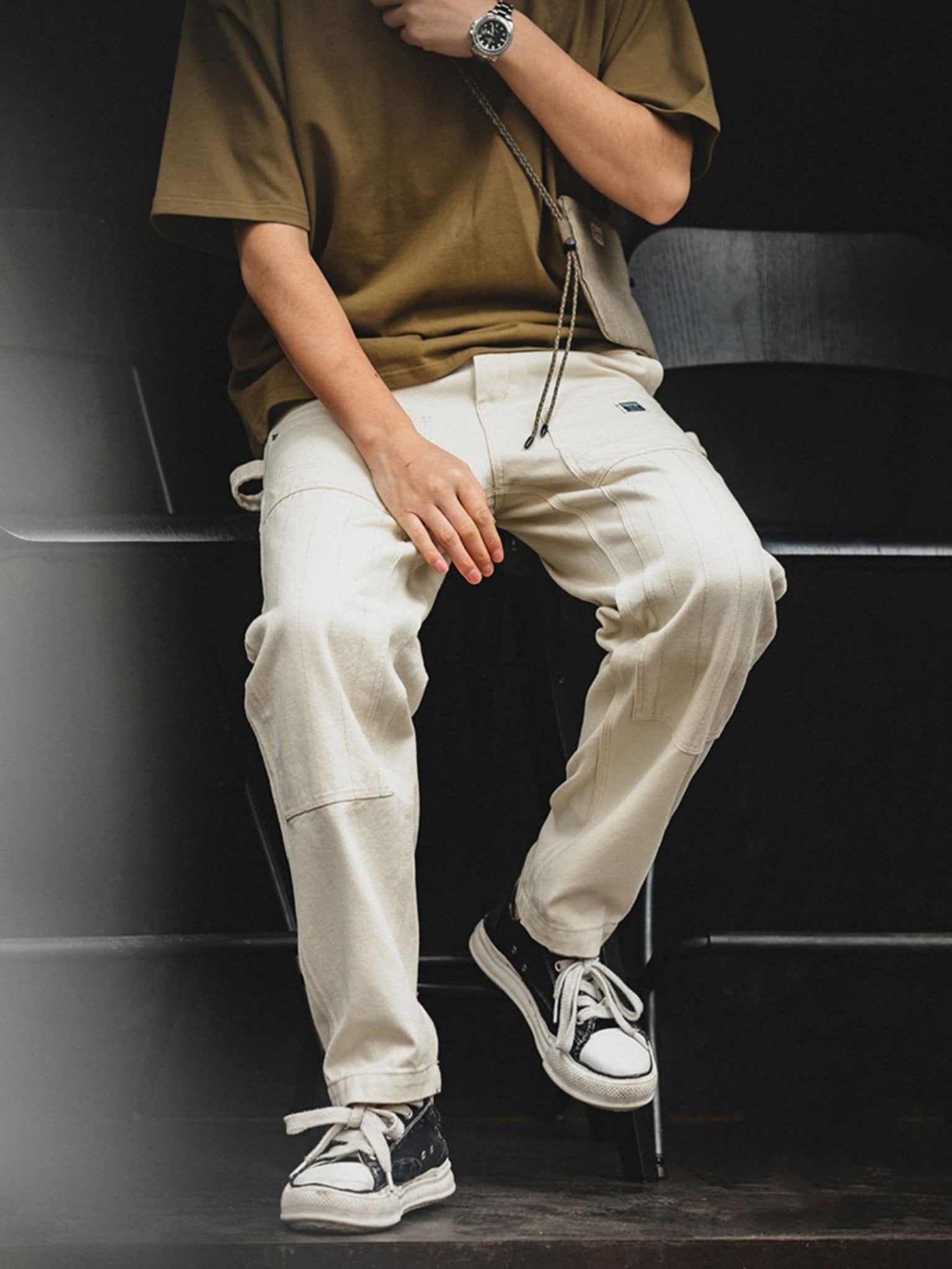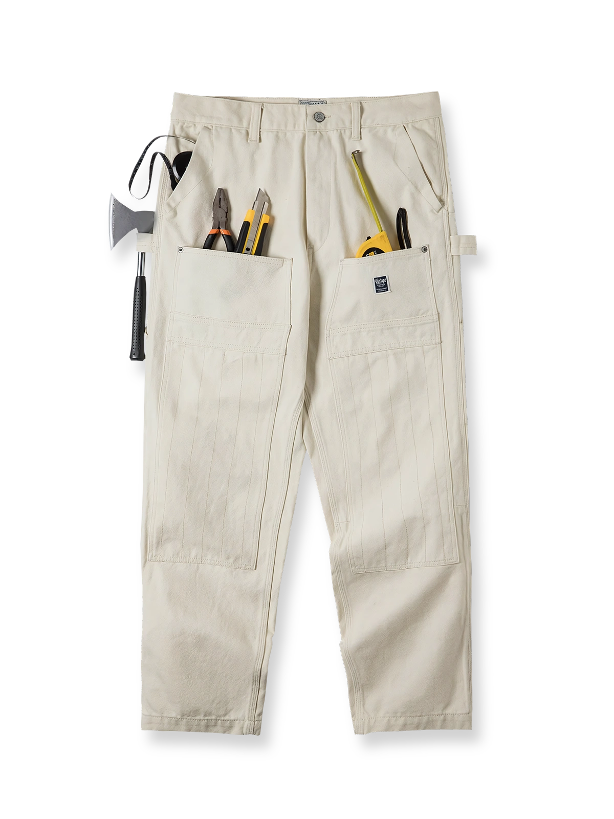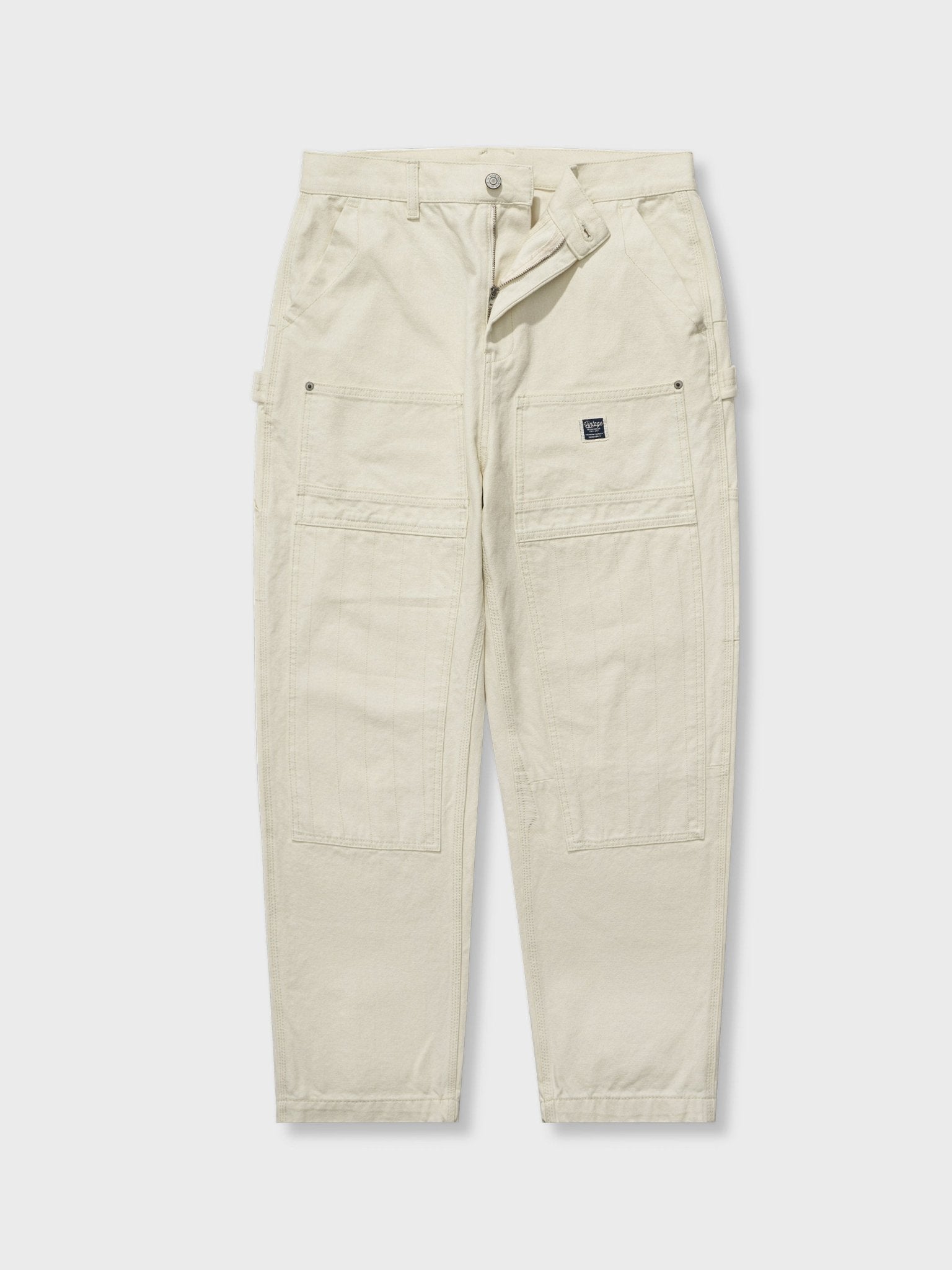 ハンマーループやフロントのツールポケットなど、ワークディテールが映える。膝の部分には二層生地のデザインに変わり、パンツ全体の存在感が更にUP。ゆったりとストレートのシルエットは制限なし、快適に着用可能。