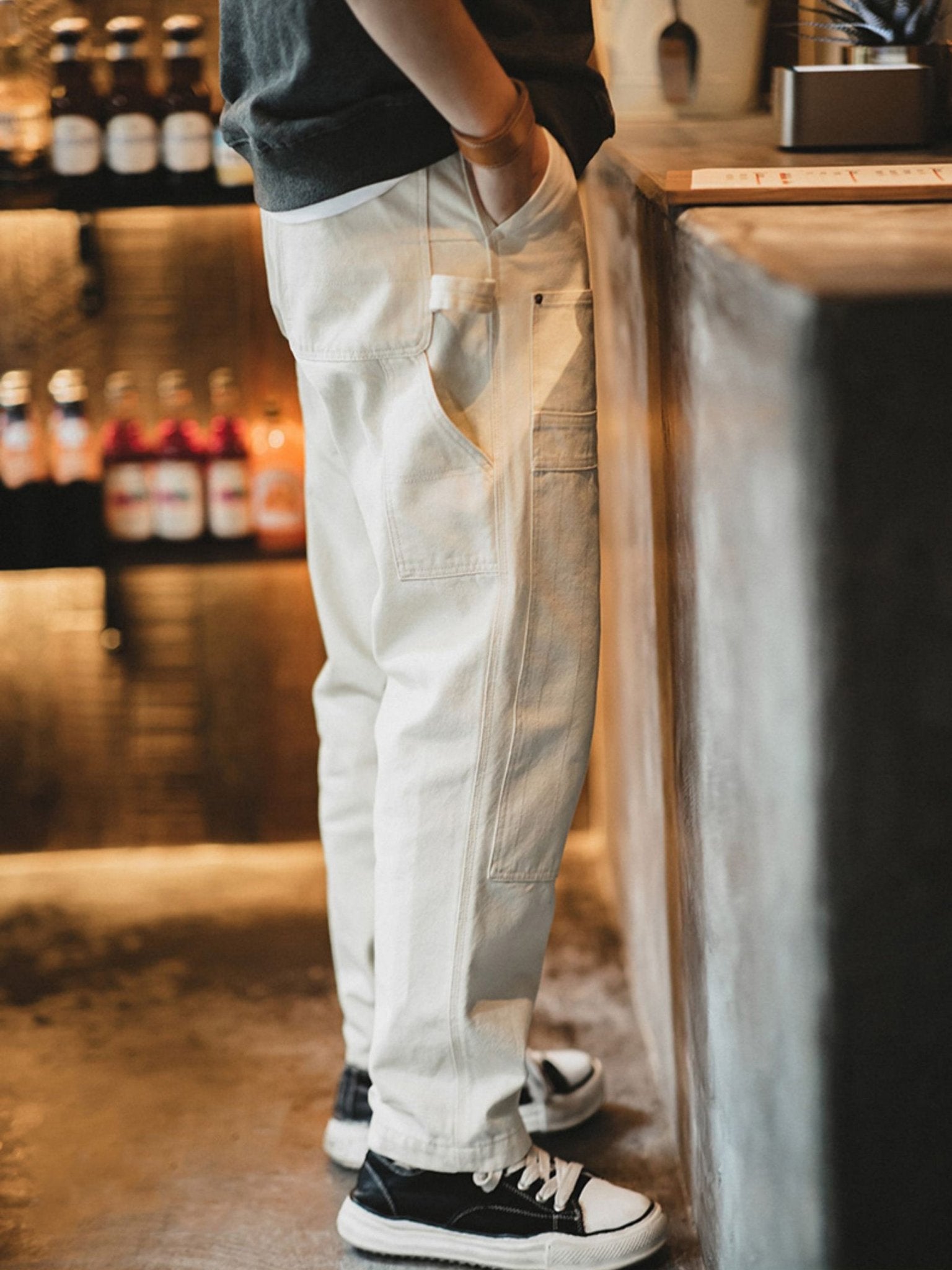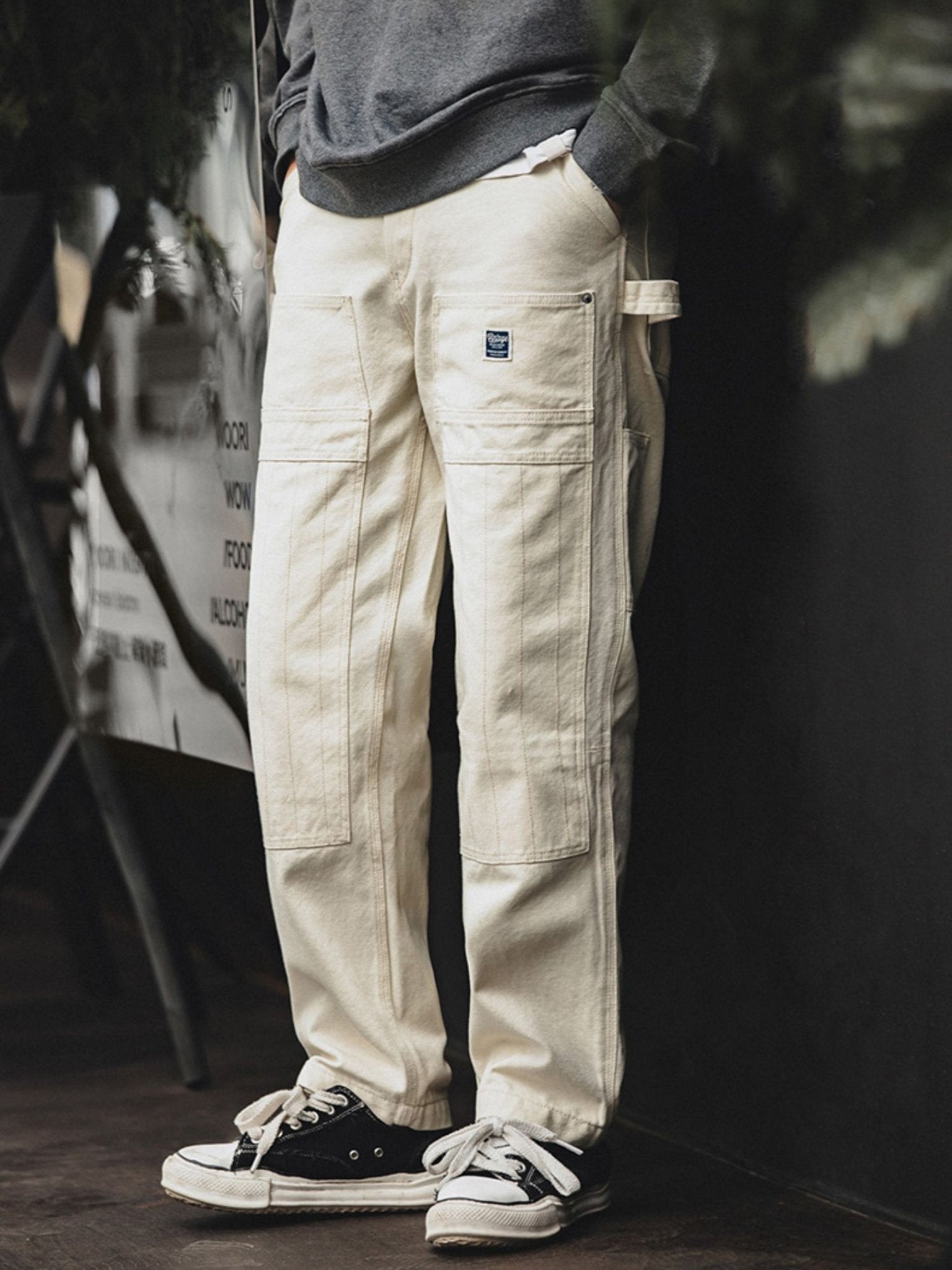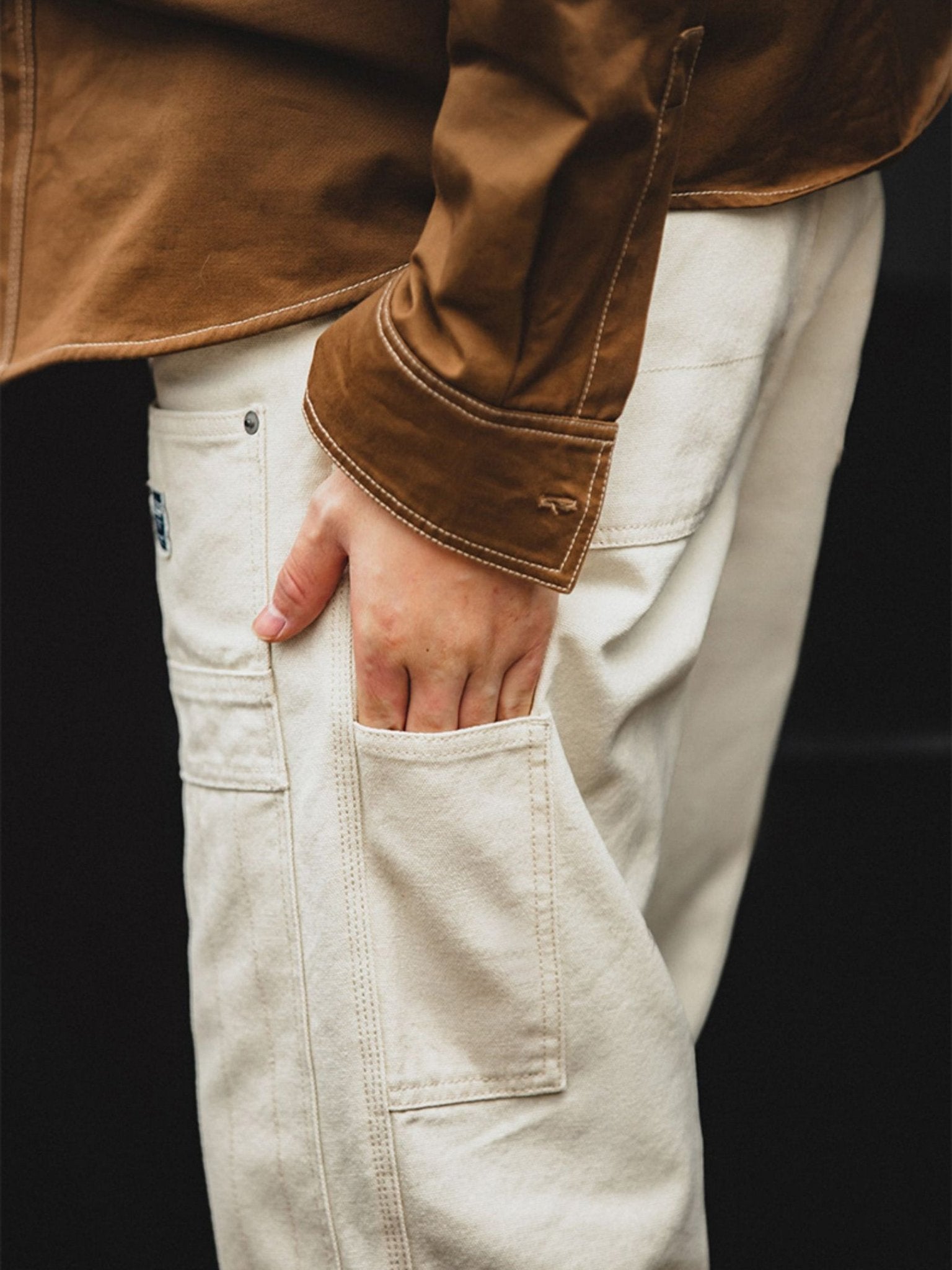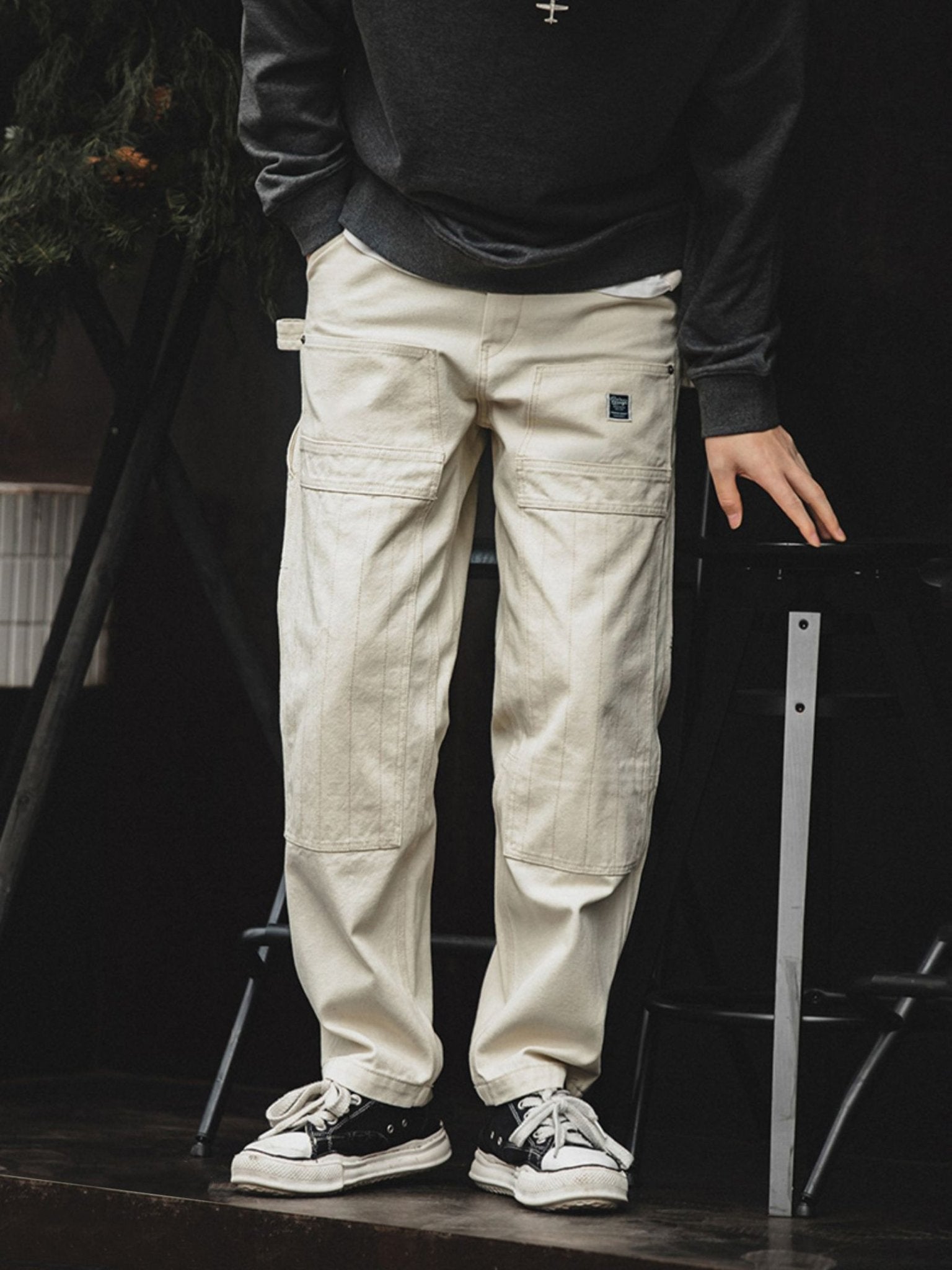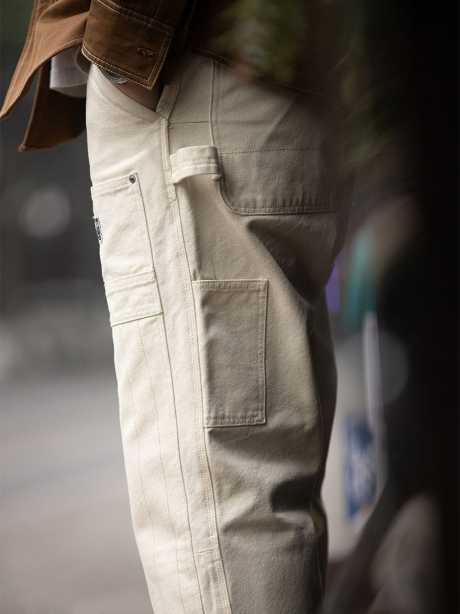 カーゴパンツの定番人気に推されるペインターパンツです。ペインターパンツとは、ペンキ職人がよく使っていた作業用のパンツで、ハンマーループ(金槌を吊るすための輪)やスパナポケット等がついているのが特徴。
