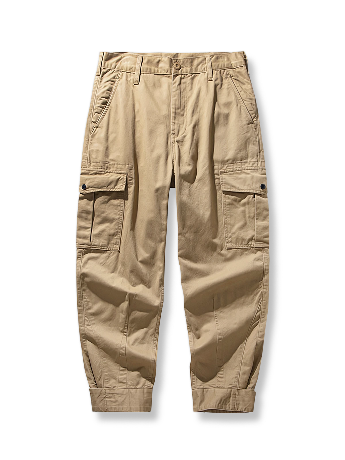 耐摩耗性のあるコットン素材を使用しており、この素材は丈夫で耐久性があり、摩擦や使用に耐えることができます。YKKのジッパーは品質保証し、全体的なパンツの耐久性と使いやすさを高めています。