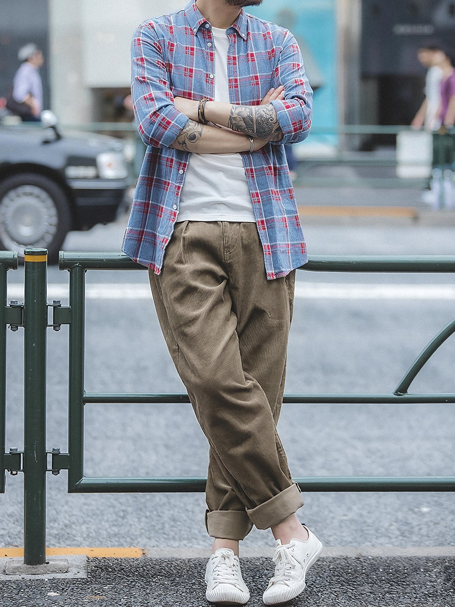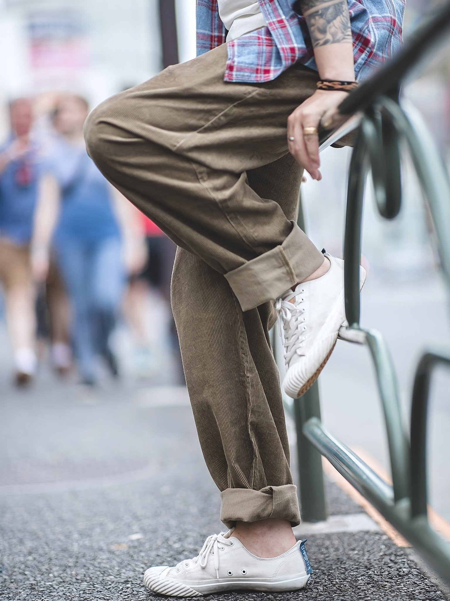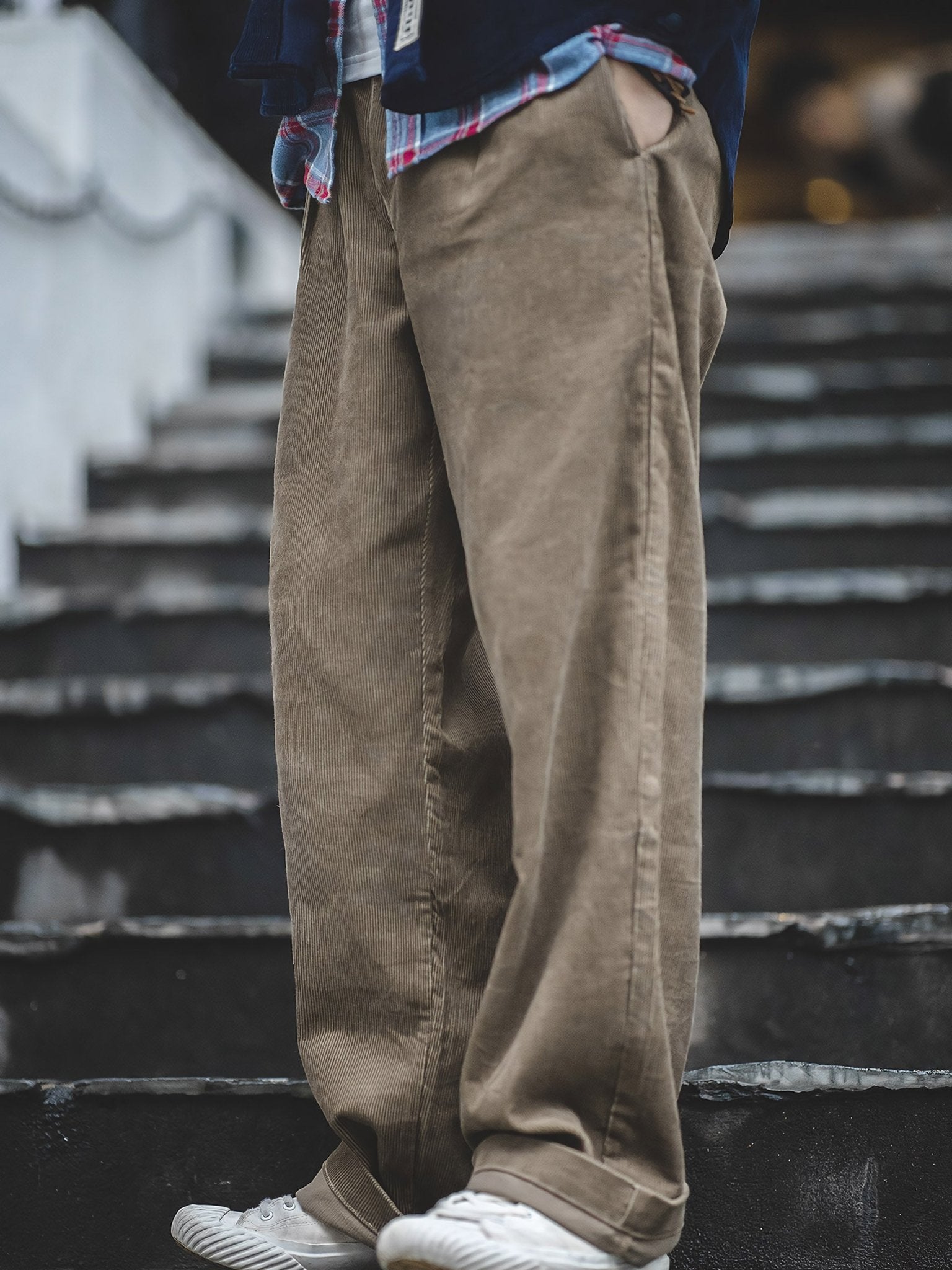 ややオーバーサイズ感のあるコーデュロイパンツは包容力が高く、快適に着用できます。クラシックな黒や白とは異なり、カーキ色は同様に合わせやすく、ビンテージ感も漂います。大人のカジュアルスタイルと高い着回し力を備えており、休日らしいリラックス感を味わいたい人に最適です。