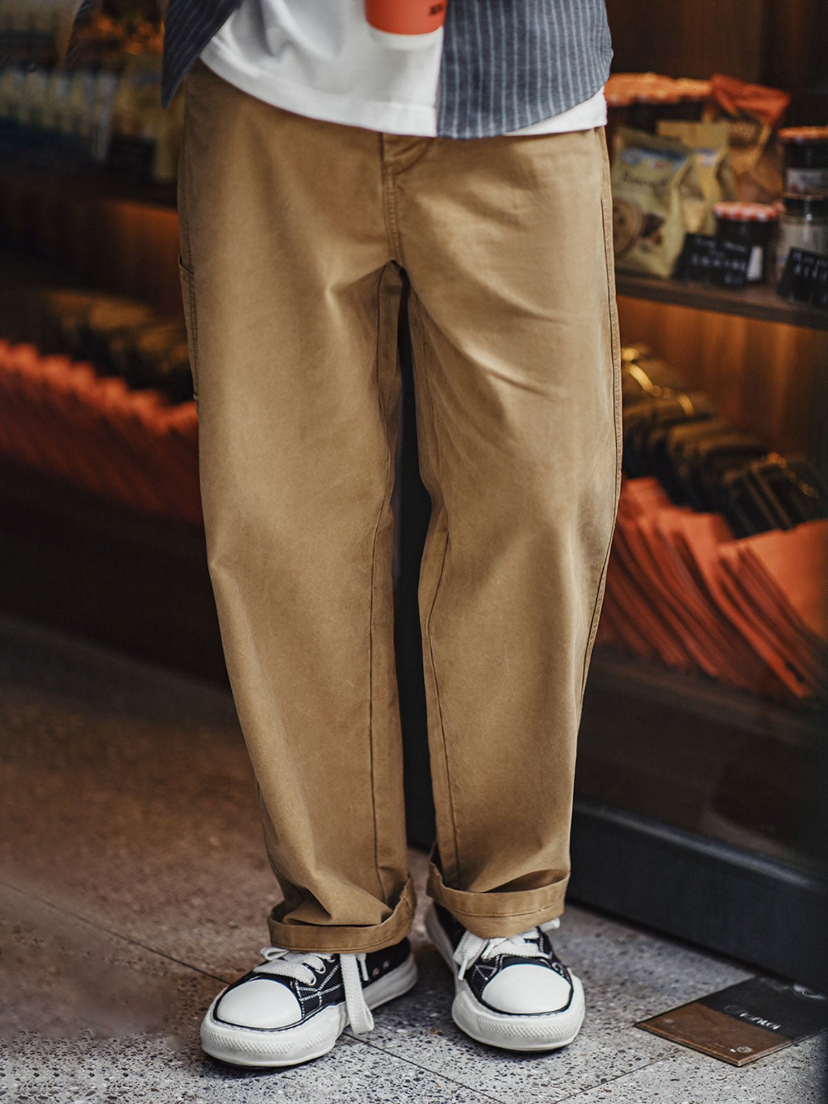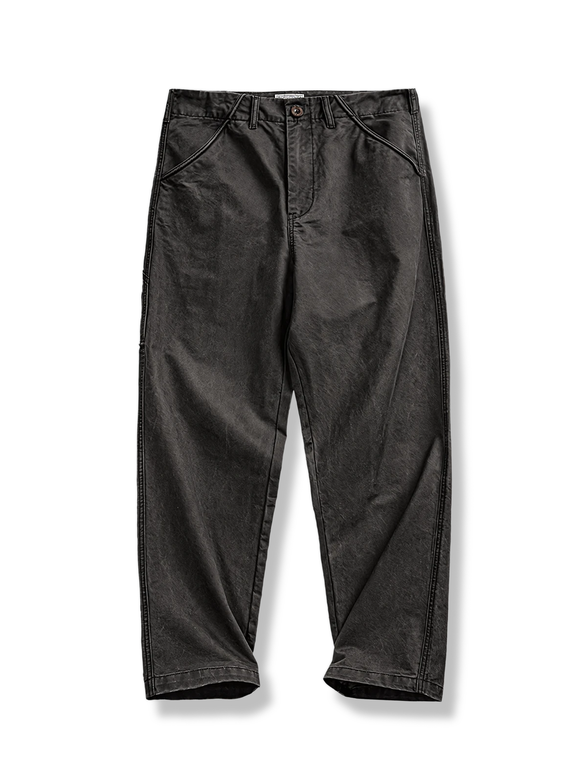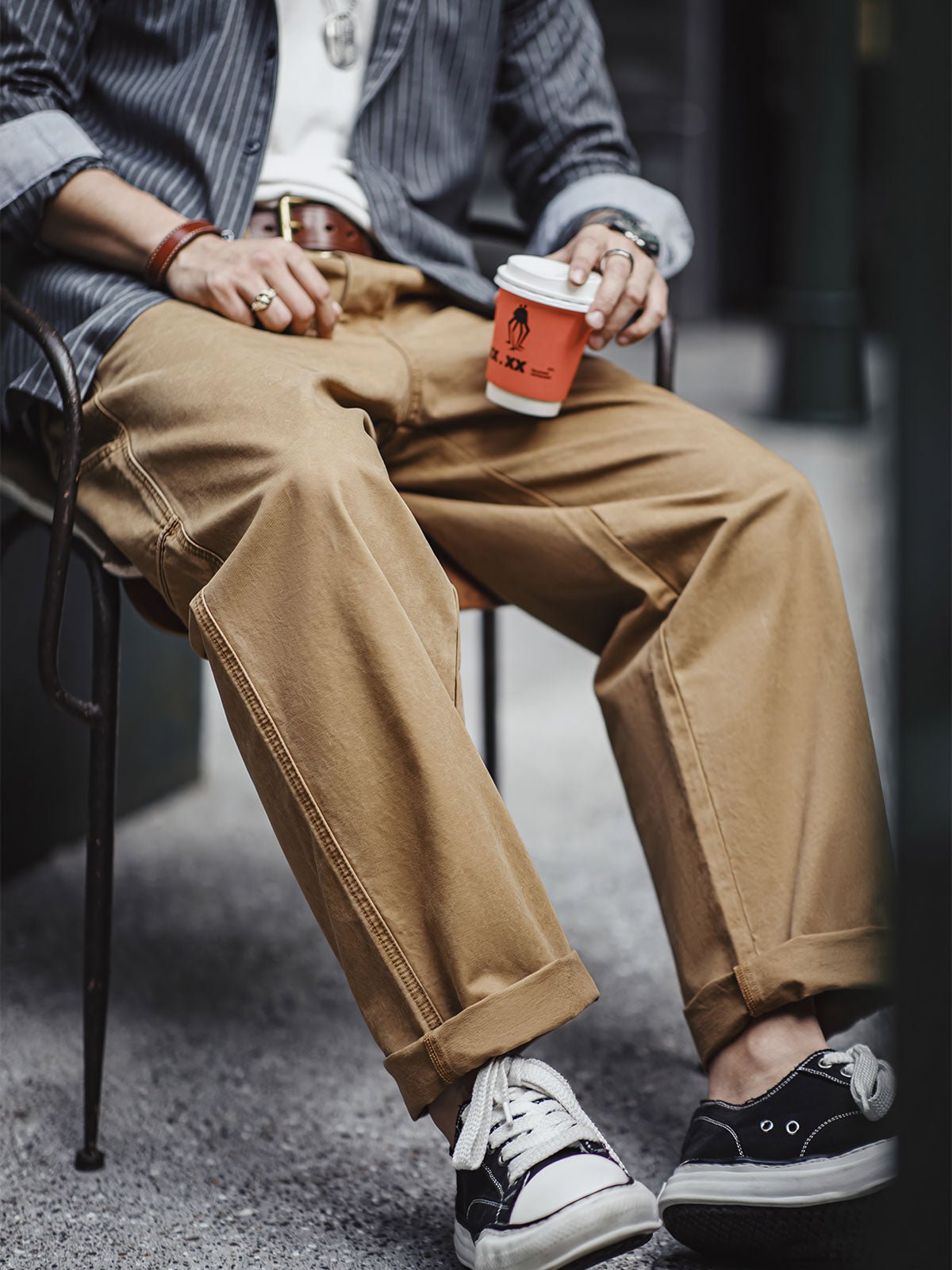 パンツのゆったりとしたストレートカットは、脚のラインを最適化し、着用者の動きを自在にします。洗いざらしとエイジング加工が施され、快適でありながら、よりビンテージ感のあるレトロな質感を演出しています。