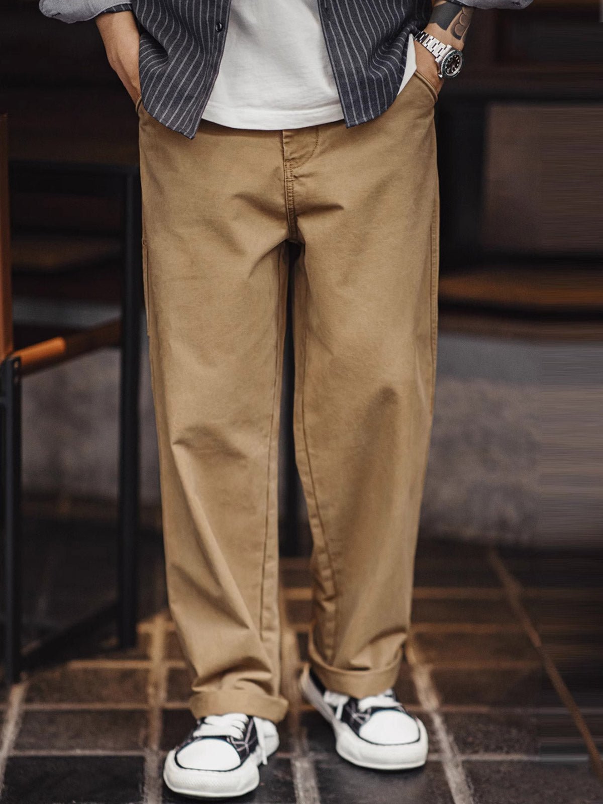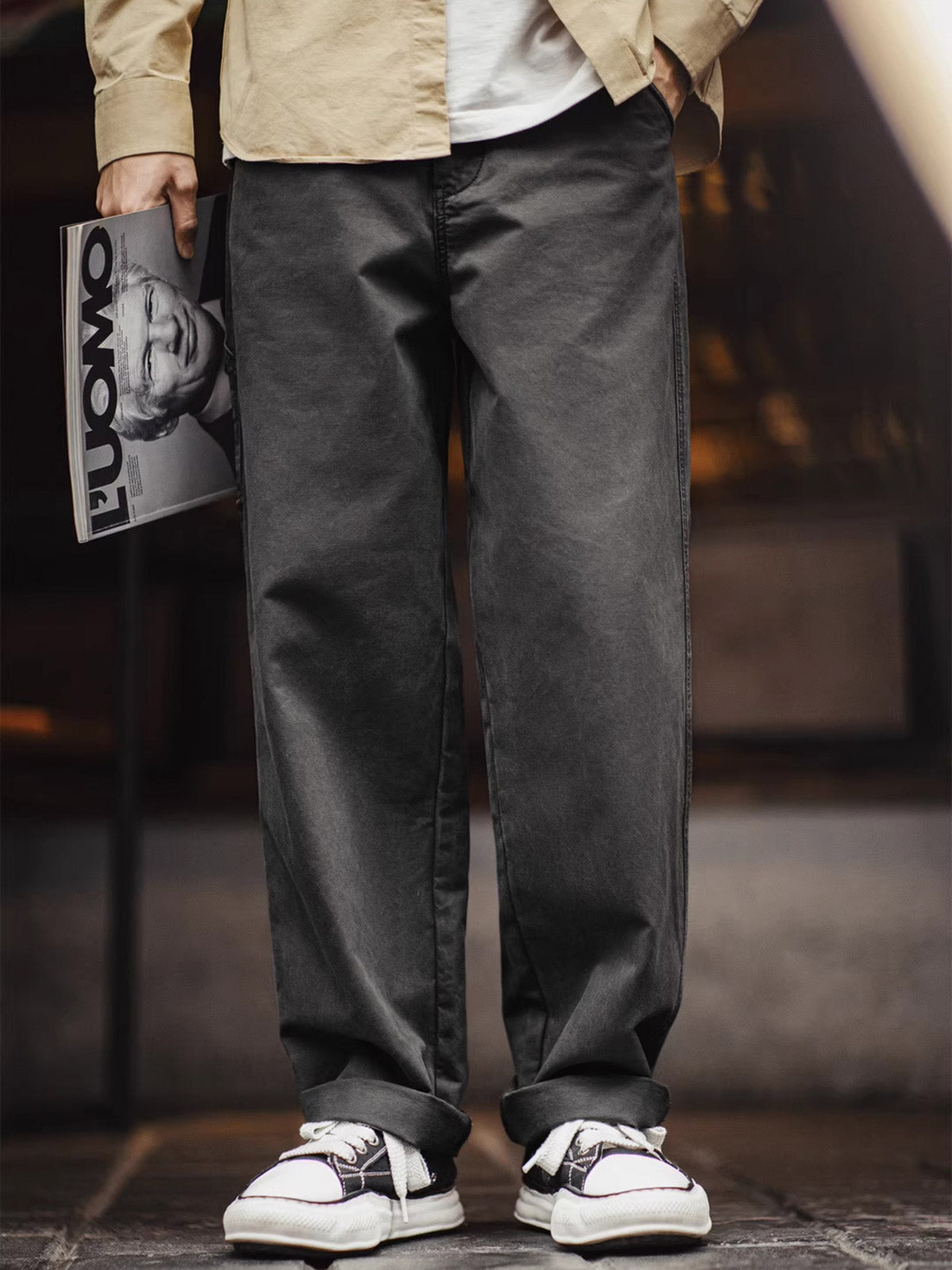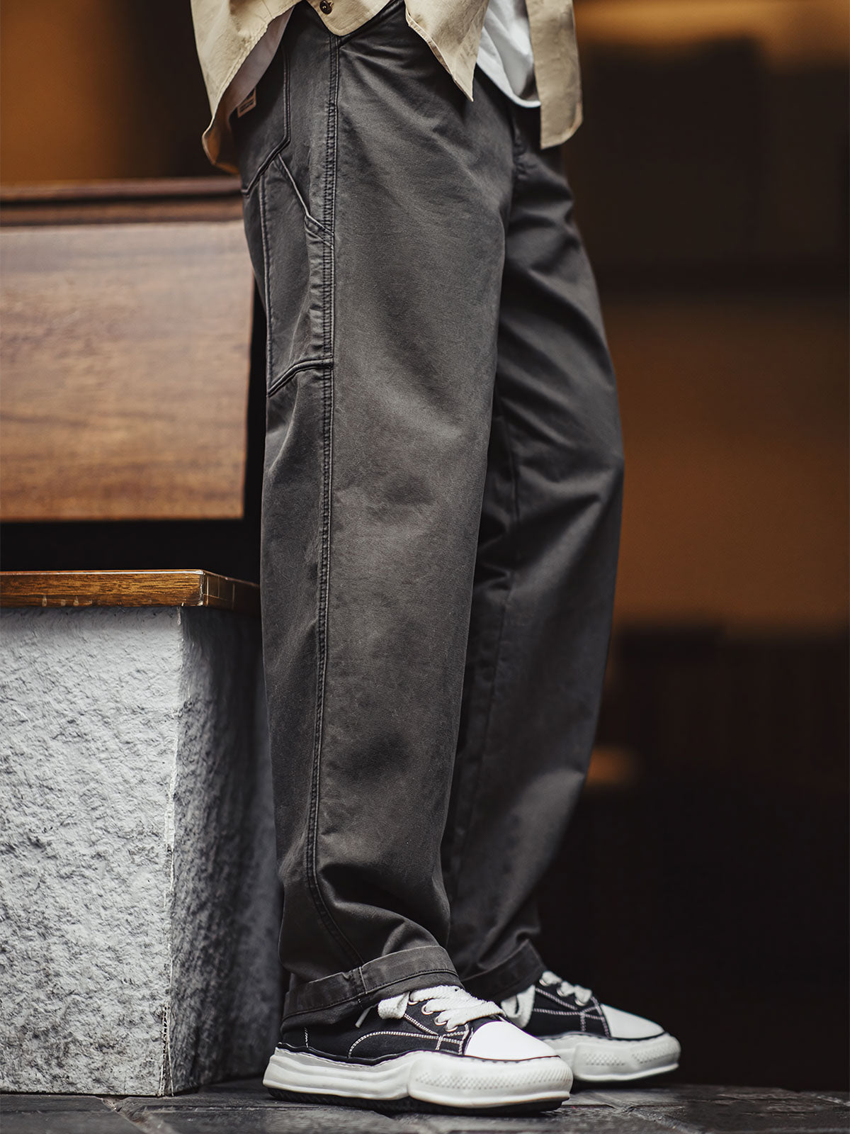 パンツのゆったりとしたストレートカットは、脚のラインを最適化し、着用者の動きを自在にします。洗いざらしとエイジング加工が施され、快適でありながら、よりビンテージ感のあるレトロな質感を演出しています。