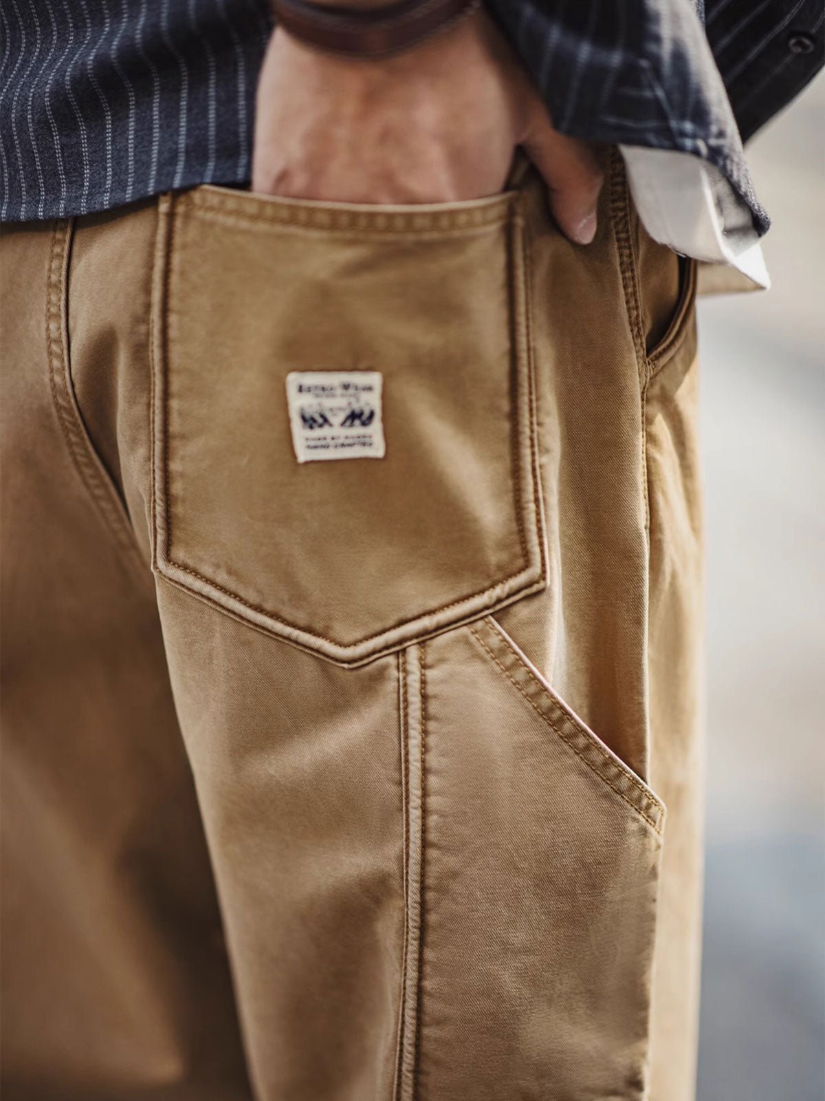 このパンツは、コットンシャツやチャンキーニットと合わせ、レザーブーツを履くことで、レトロで力強いワークウェアスタイルを完璧に演出できます。アウトドア活動から日常のカジュアルまで、粗野でありながら細部にこだわったスタイルを表現できます。