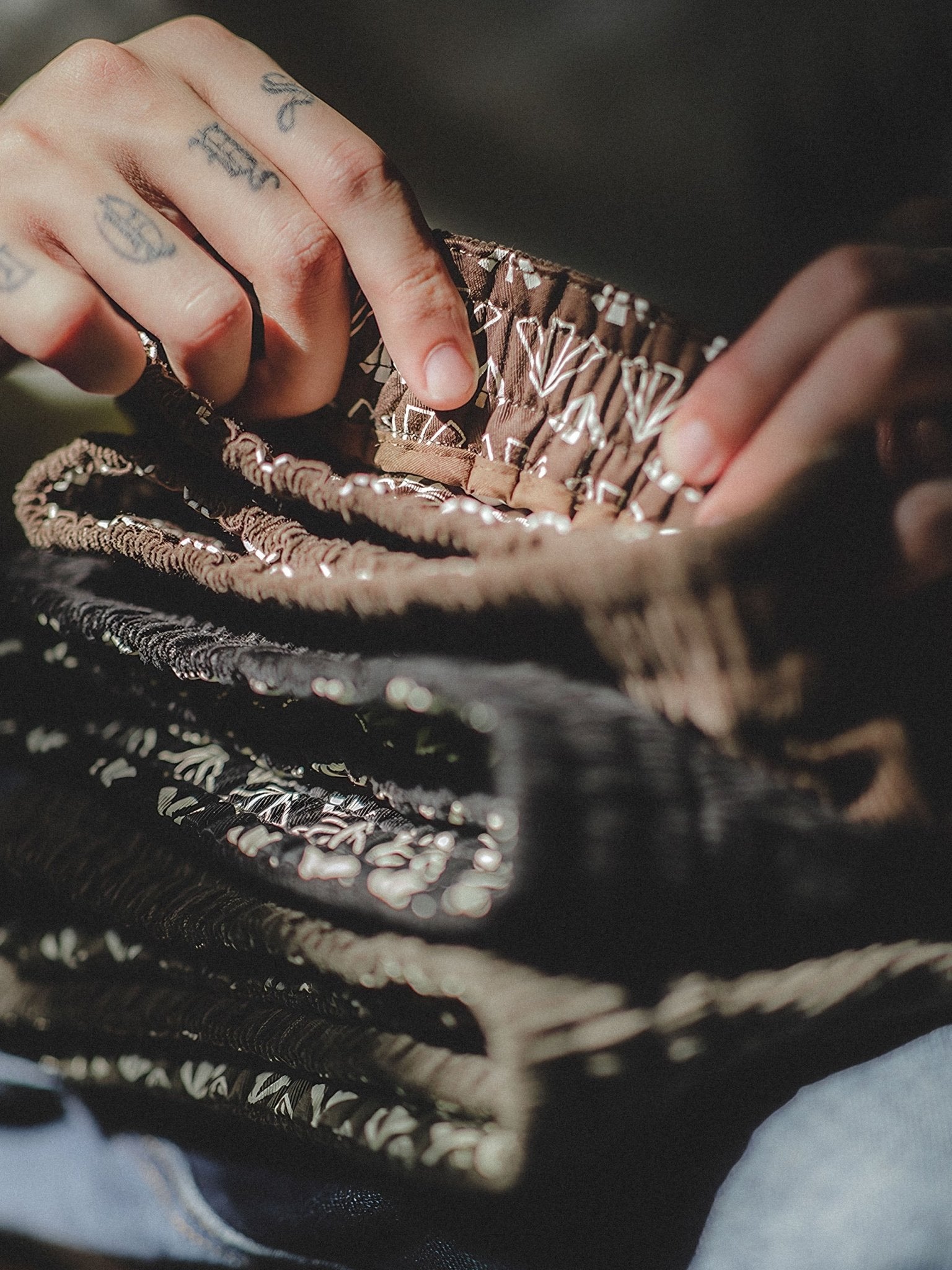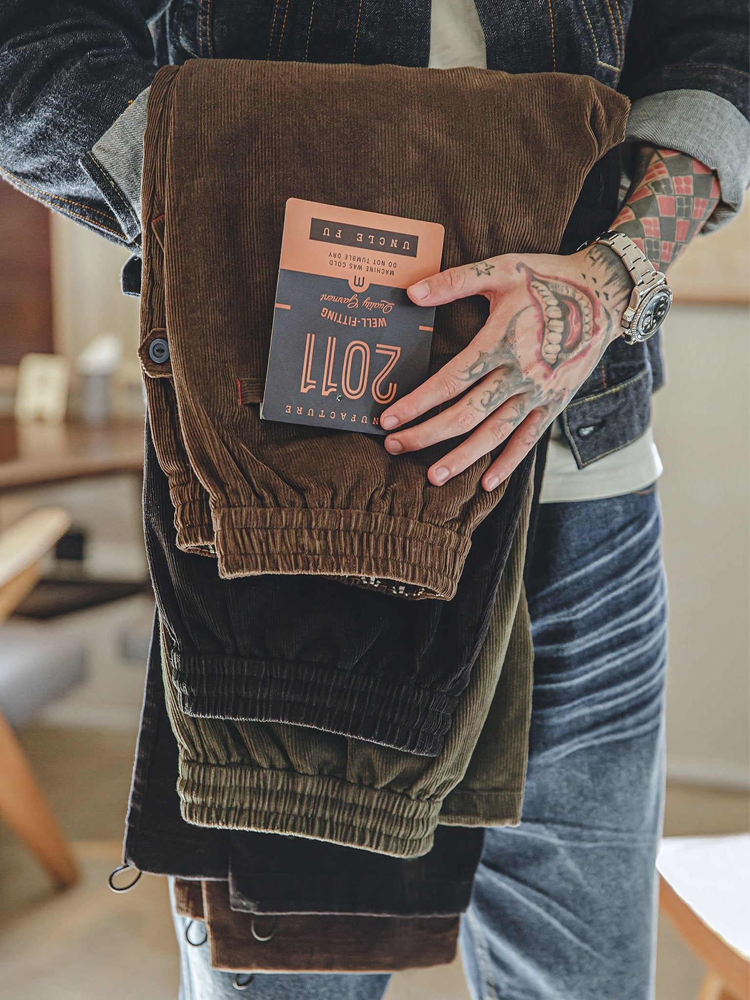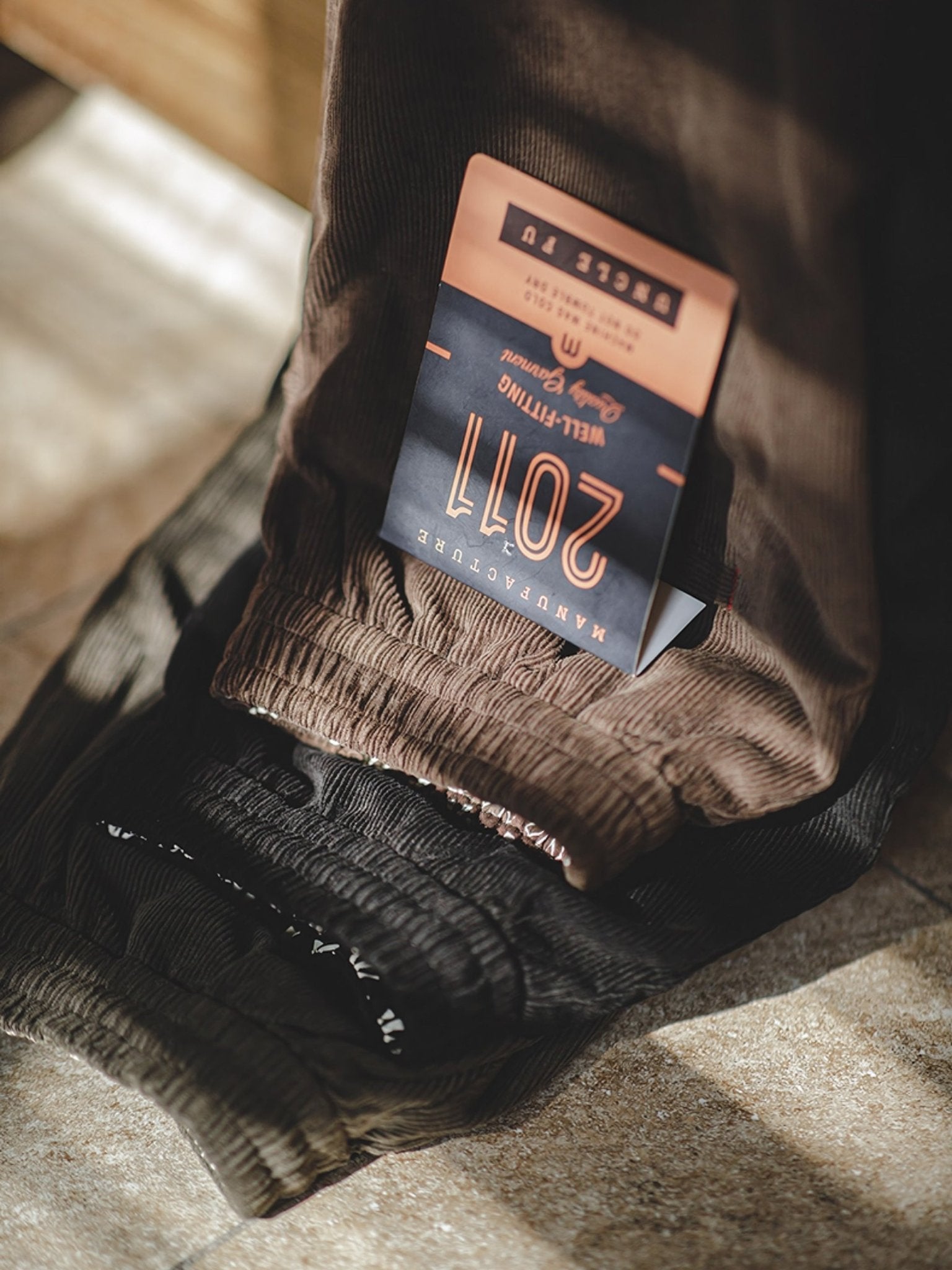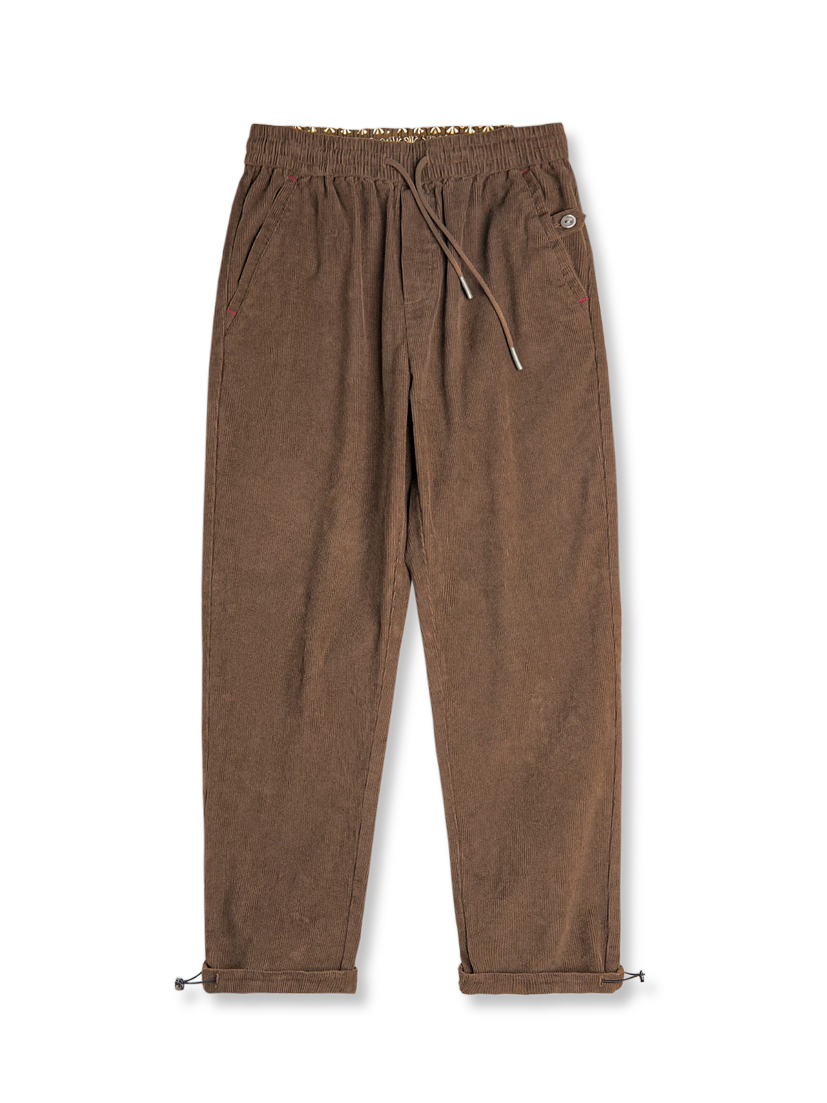 機能的で洗練されたデザインのコーデュロイパンツが登場しました!ウエスト裏にはシンプルな花びら柄を取り入れ、遊び心が光る仕上がりです。ウエストはゴム仕様で着脱しやすく、内側には調節可能なウエストコードが付いており、サイズに合わせたフィット感を楽しめます。