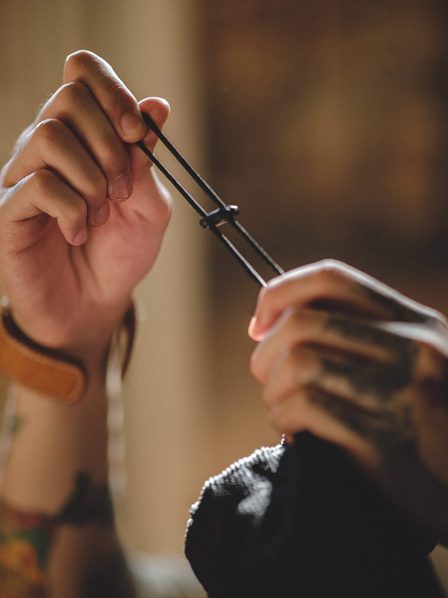 ワイドシルエットでありながら、裾に向かって細くなるテーパードシルエットが美しく、すっきりとしたスタイリッシュな印象を与えます。裾部分のロープコードにより、シルエットのアレンジが自在に可能です。