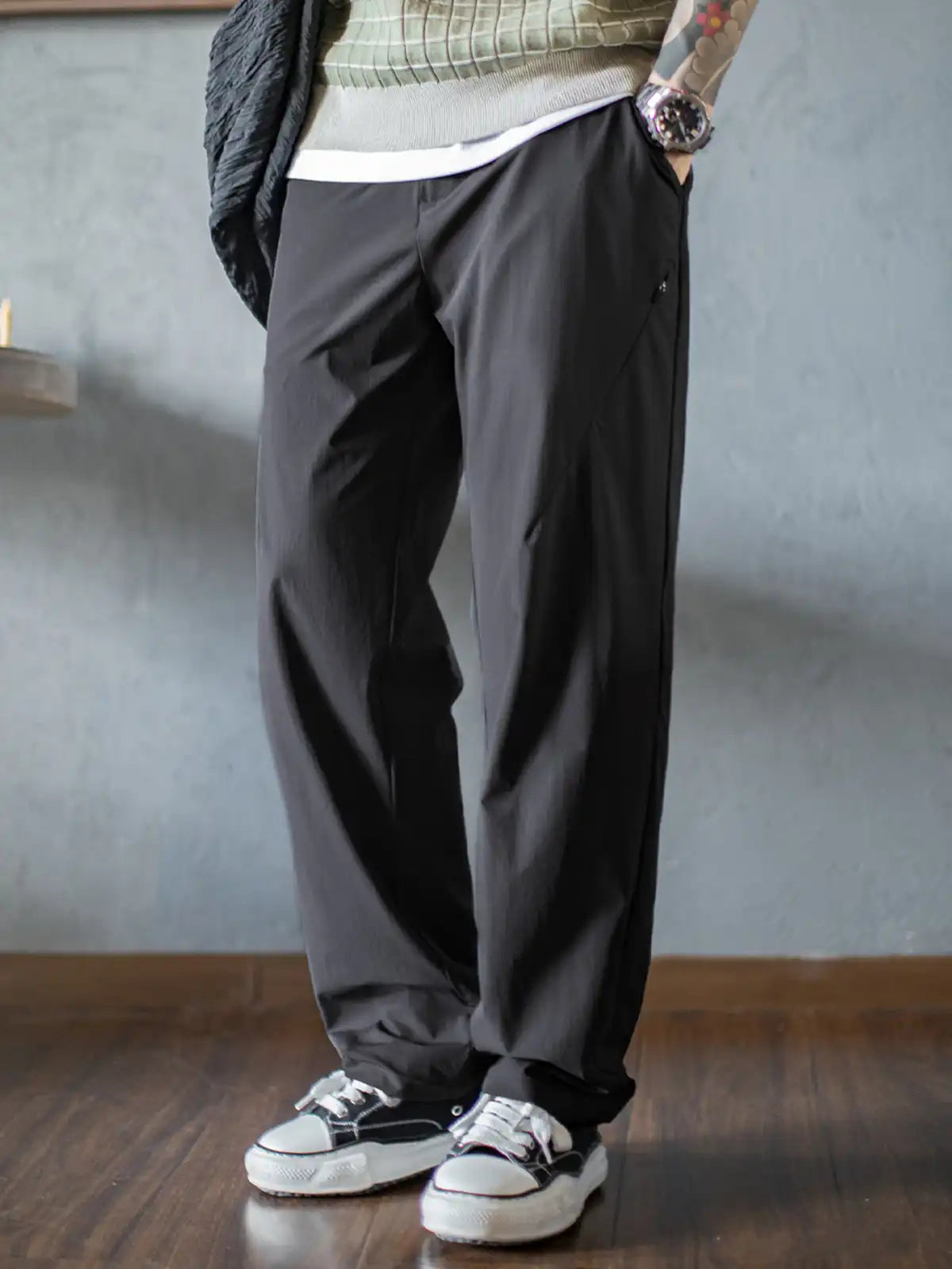 たった120g/m²の軽さと、立体3Dエアーカッティングによる“動きやすさ”を追求したリラックスモーションパンツ。高密度ナイロン×12.5%スパンデックスのブレンド素材はシワになりにくく、手入れ不要で毎朝がもっと気楽に。膝周りに立体縫製を施したことで、しゃがんでも、脚を組んでも、張りつかず自然に動ける。ウエストも腰回りもスッキリ見せる無駄のないシルエットで、Tシャツやシャツ、スニーカーや革靴まで、何にでも馴染む万能さを備えている。仕事の日も休日も、これ1本で“気を張らずにいられる”状態が続く。