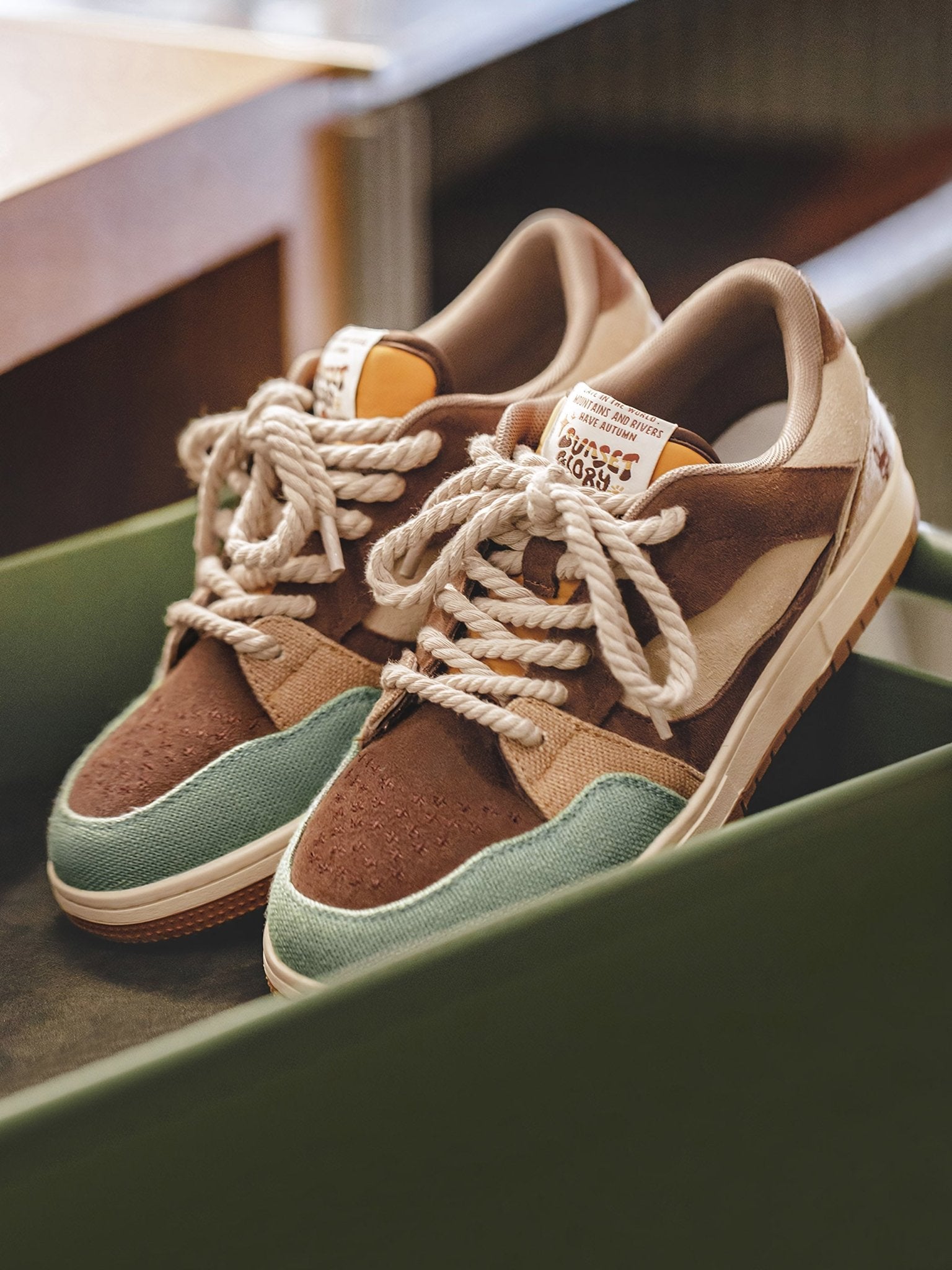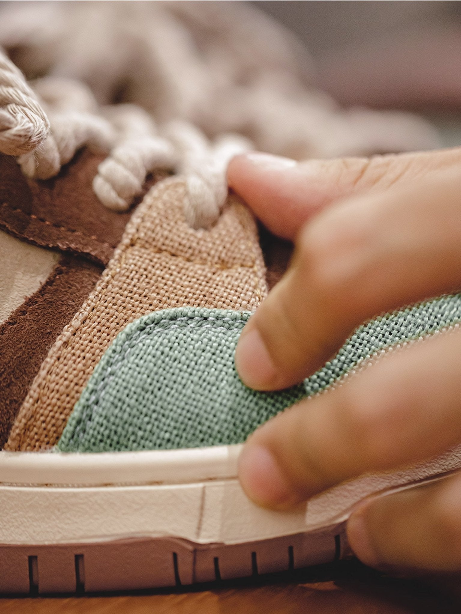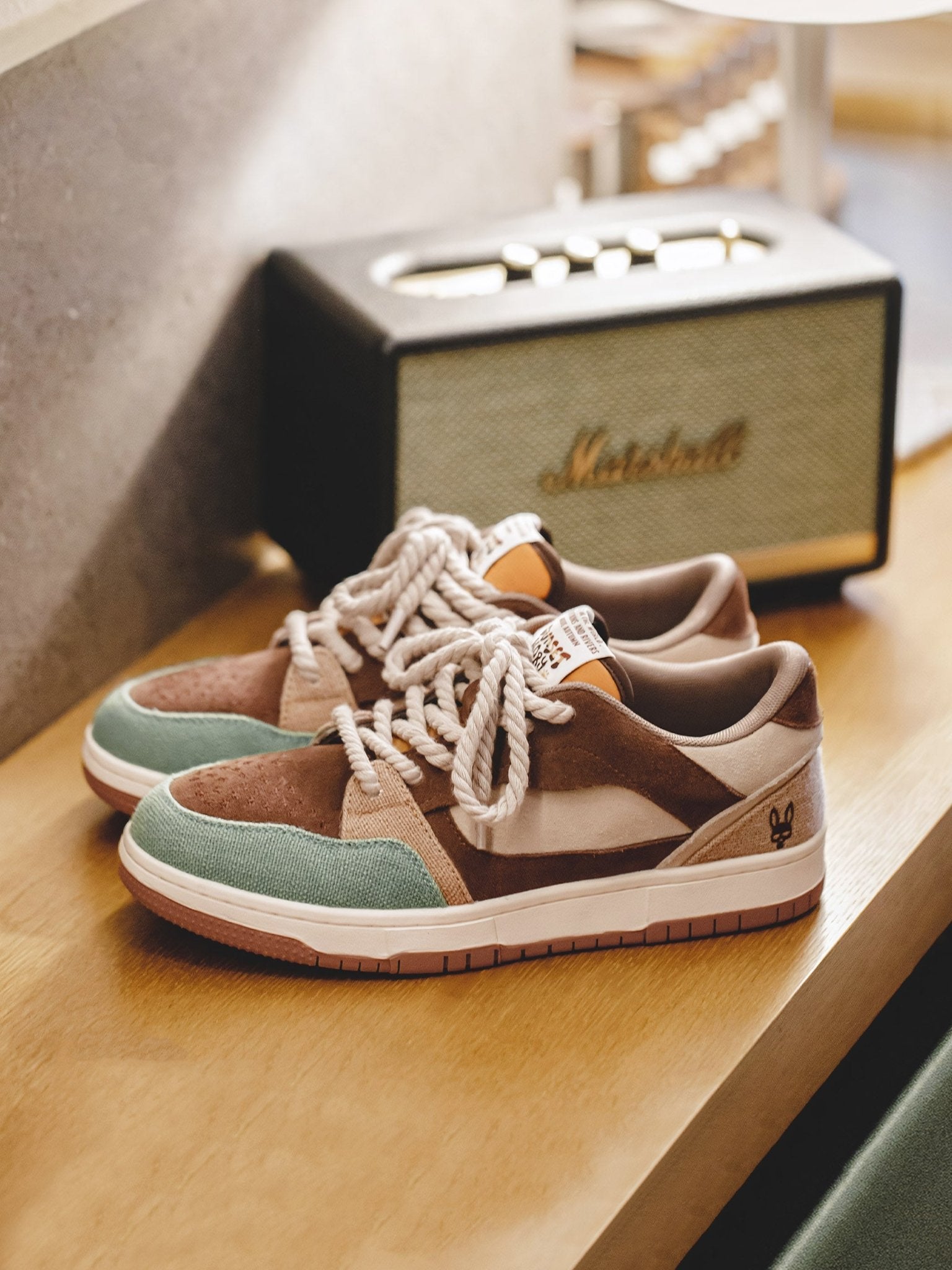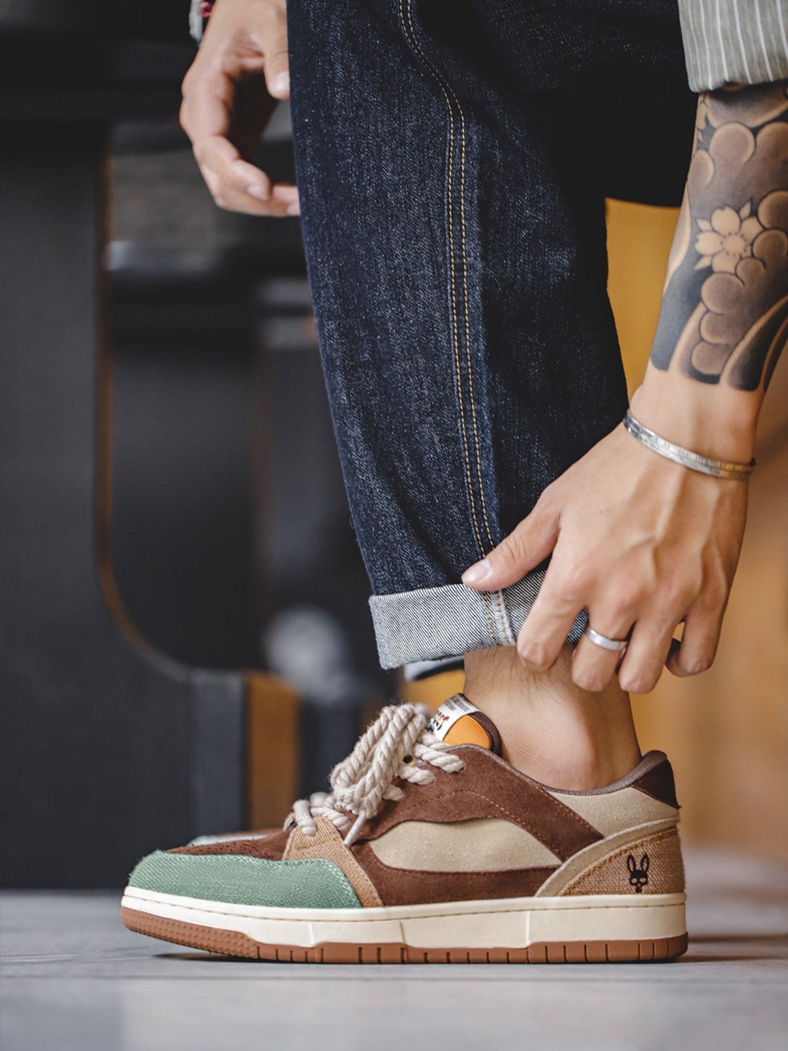 本アイテムは90年代のスケートボードシューズをモデルにし、100年前の童話「The Tale of Peter Rabbit」からカラーマッチングのインスピレーション素材を取り入れ、19世紀初頭のレトロなスタイルを再現しています。耐久性に優れたスエードとリネンを使用した定番のオーバーレイを再構築し、サイドにウェーブのステッチのディテールと新鮮なカラー切替とのマッチングが目を引くデザインです。靴底の宇宙飛行士のパターンも独特で、グリップ性の充実と遊び心がエッセンスとなっています。着古していくことで楽しめる経年変化は本格的なヴィンテージライクな表情に変化し、洗練された印象に仕上がっています。