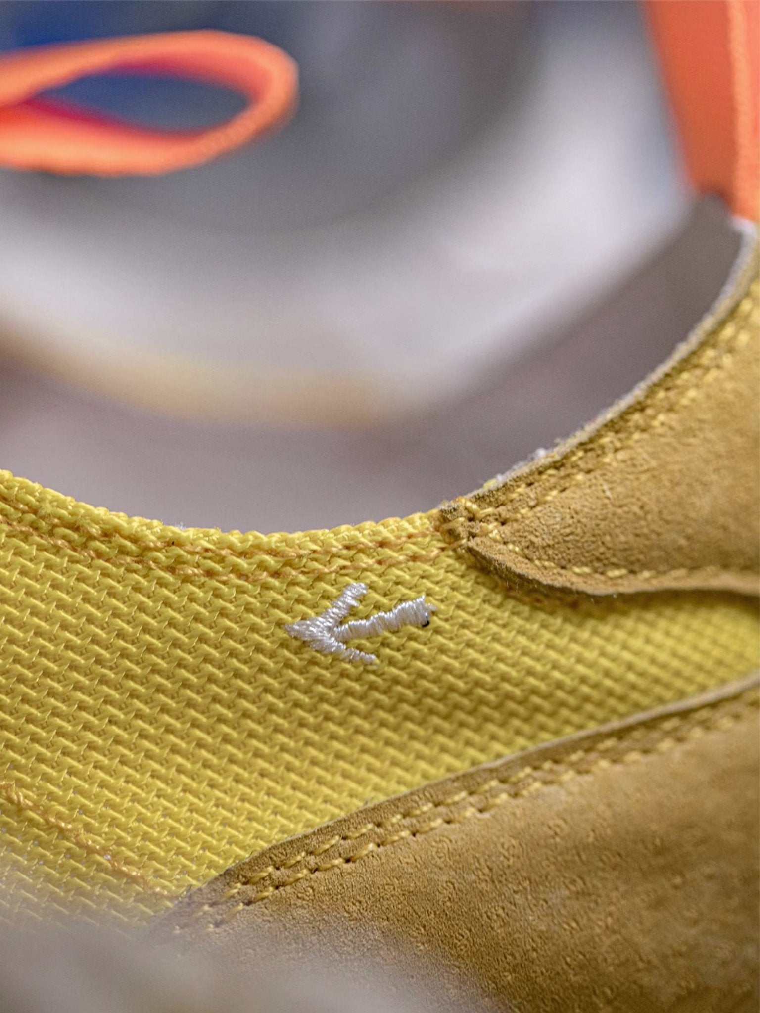 レトロ好きには嬉しい、ヒールとシュータン部分に配されたキラリと光るメタリックなロゴがポイントとなっています。スポーティーなメッシュとレザーのスエードを備えたこのシューズを履いて、ショッピングモールに繰り出すと、オシャレ度がさらにアップします。贅沢なスエードを使用し、包まれるような履き心地を提供しています。厚さのあるゴムソールは耐久性が優れており、質感と実用性も兼ね備えています。