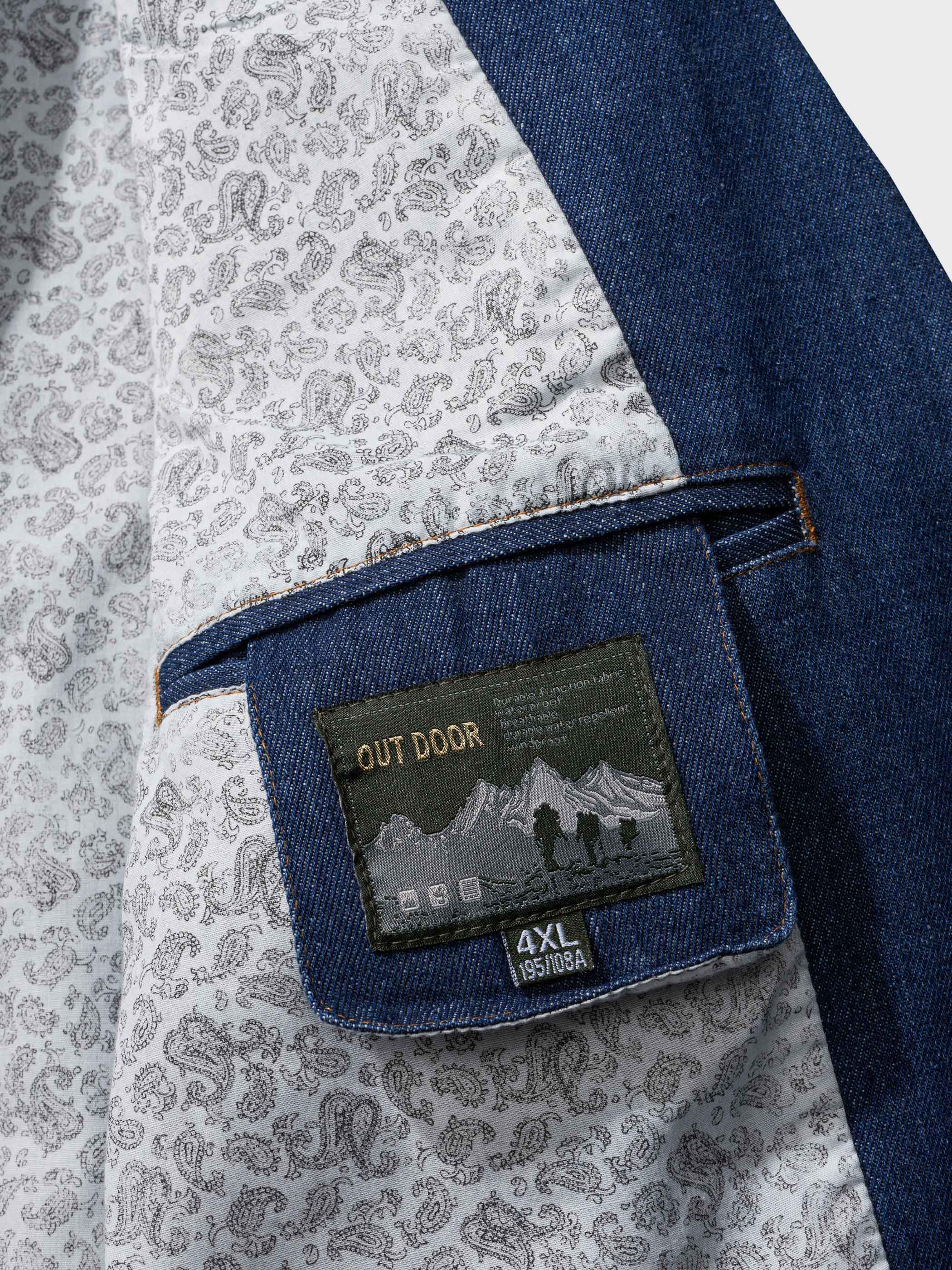 表地には主にコットンデニム生地を使用し、丈夫さと暖かさを併せ持つ質感が特徴で、吸水性と伸縮性にも優れています。裏地にはポリエステルとコットンの混合生地を採用し、ポリエステルと綿の特性が調和し、高い吸収性とシワになりにくさを実現しています
