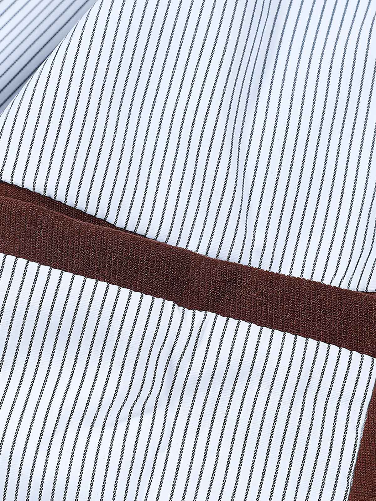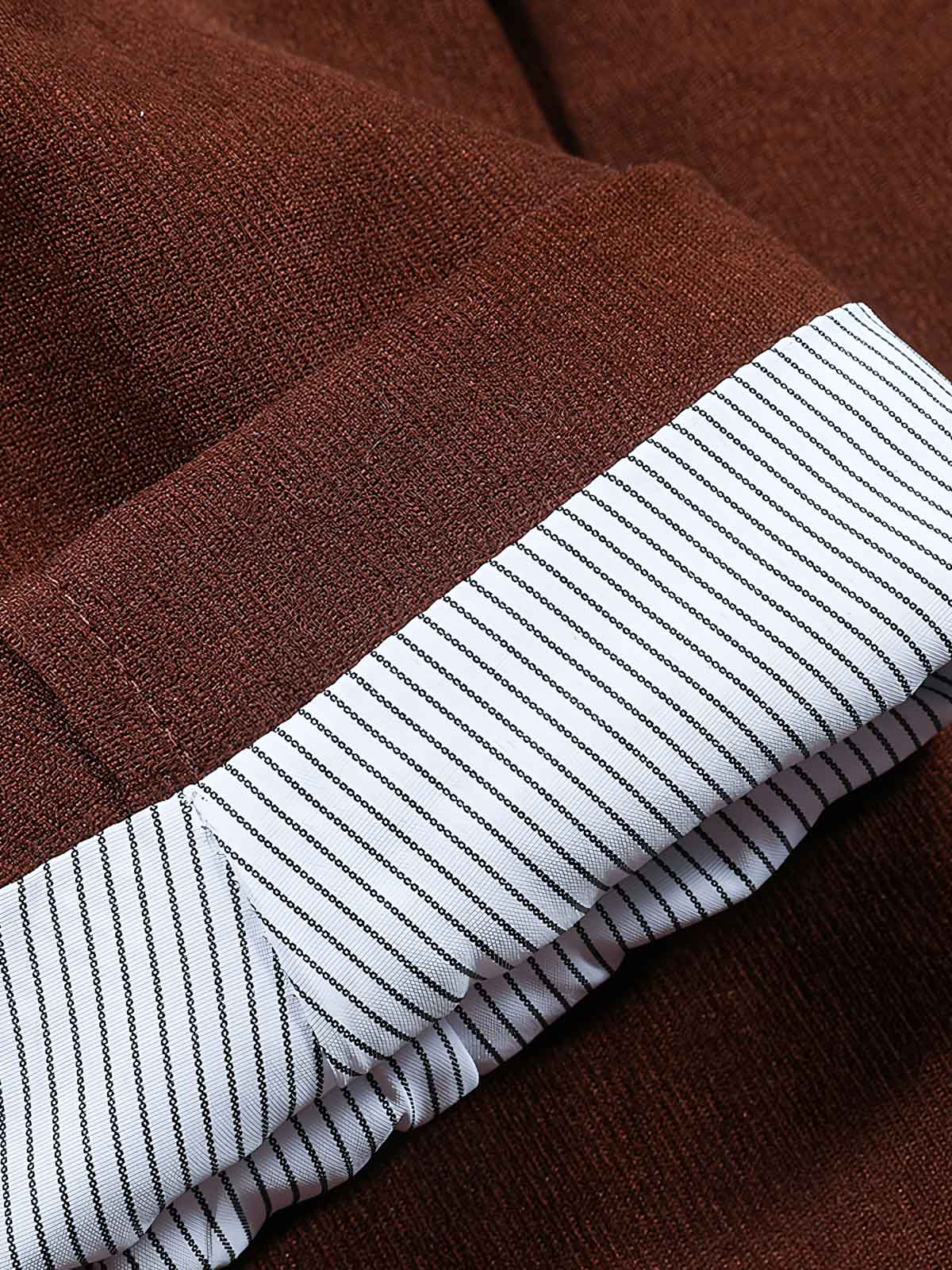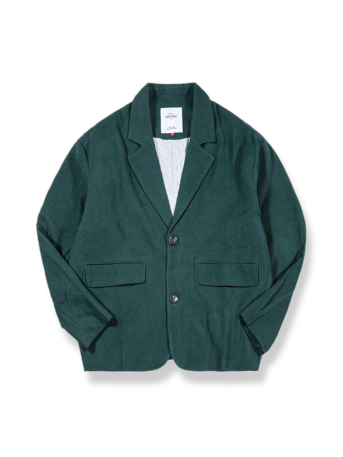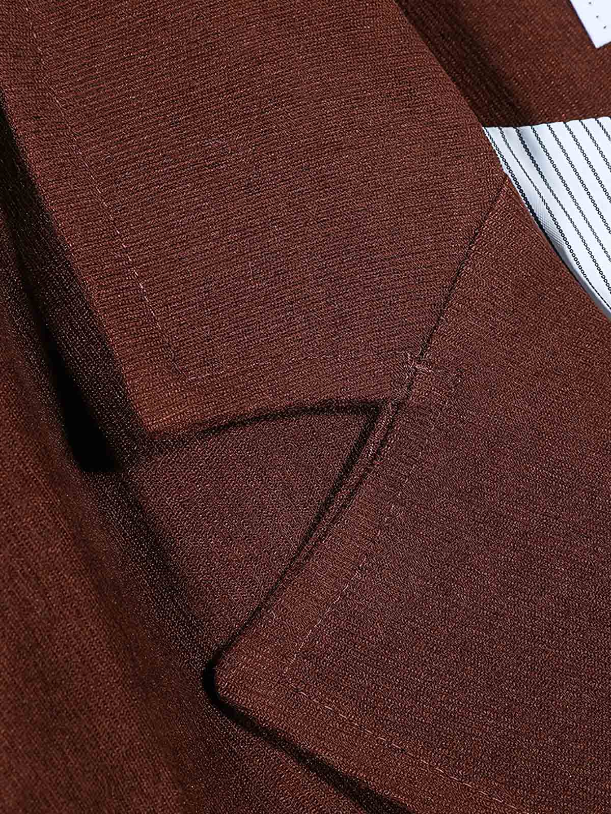 このスーツはリラックスしたゆったりとしたシルエットを採用し、快適さとカジュアルなスタイルを強調しています。伝統的なスーツのタイトなカッティングとは異なり、よりリラックスした着心地を提供しながら、翻り襟やフロントポケットなどのスーツの基本要素を保持し、外見の整頓さと機能性を確保しています。