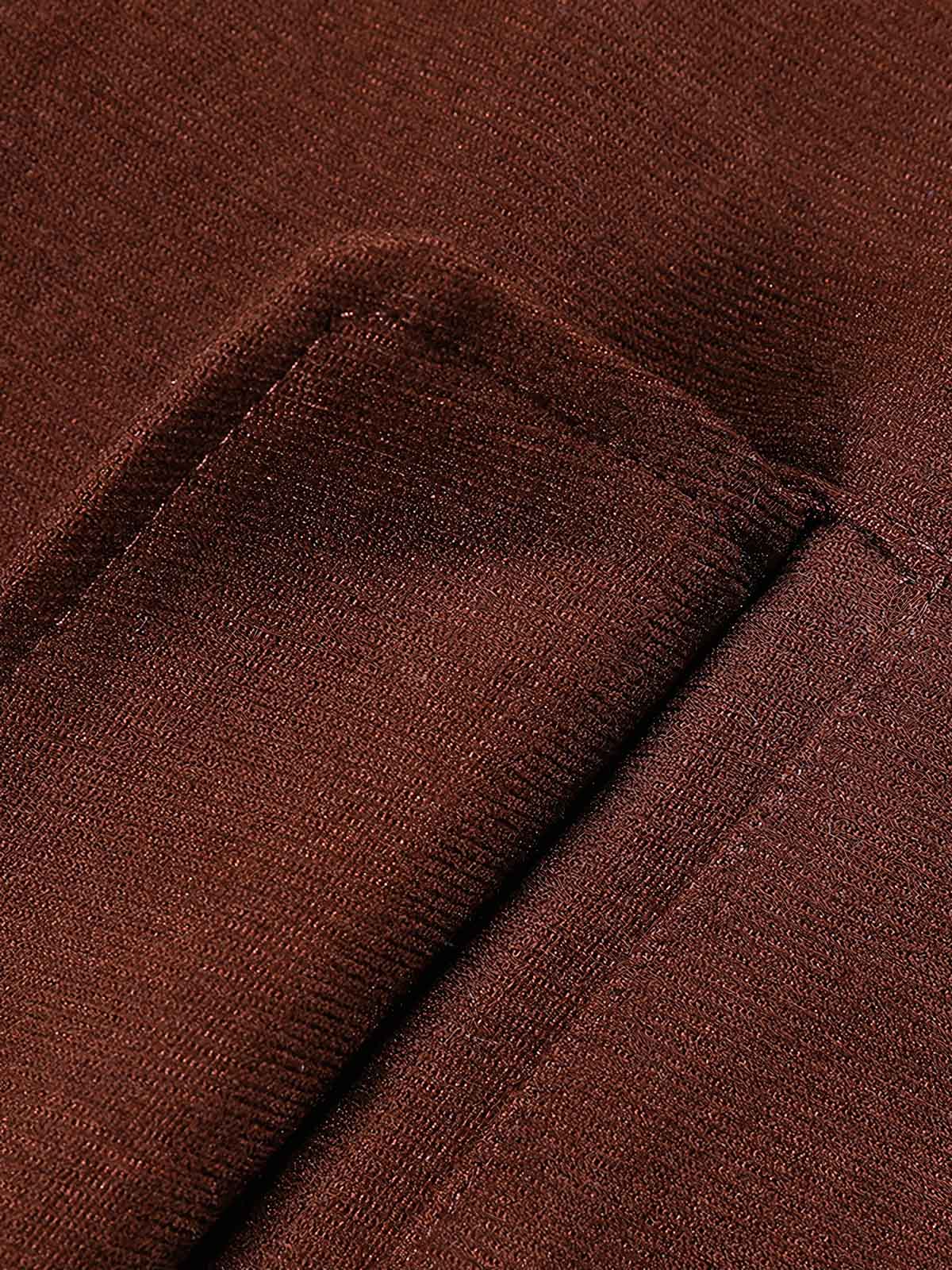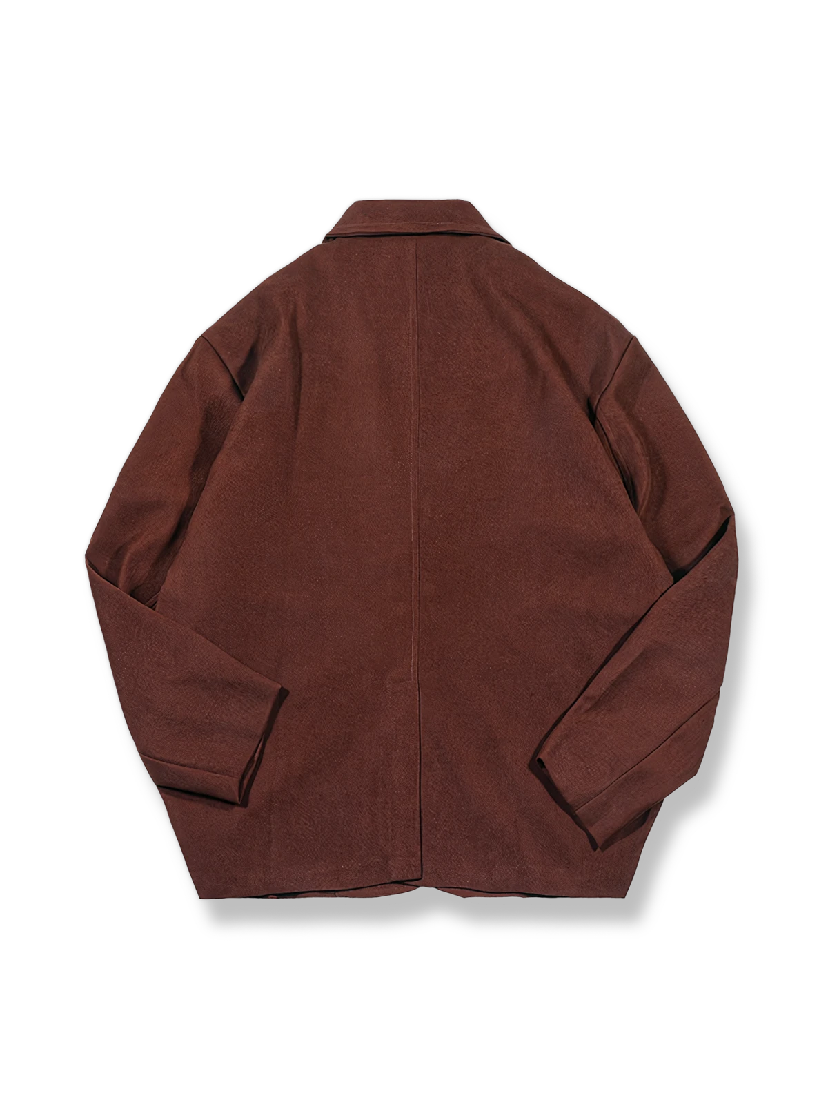 選ばれたポリエステル素材は、柔らかく温かみのある手触りと、深みのある色合いで、さまざまな衣類と容易にコーディネートできます。また、細やかなステッチと均一なボタンホールの処理は、細部へのこだわりを示しています。