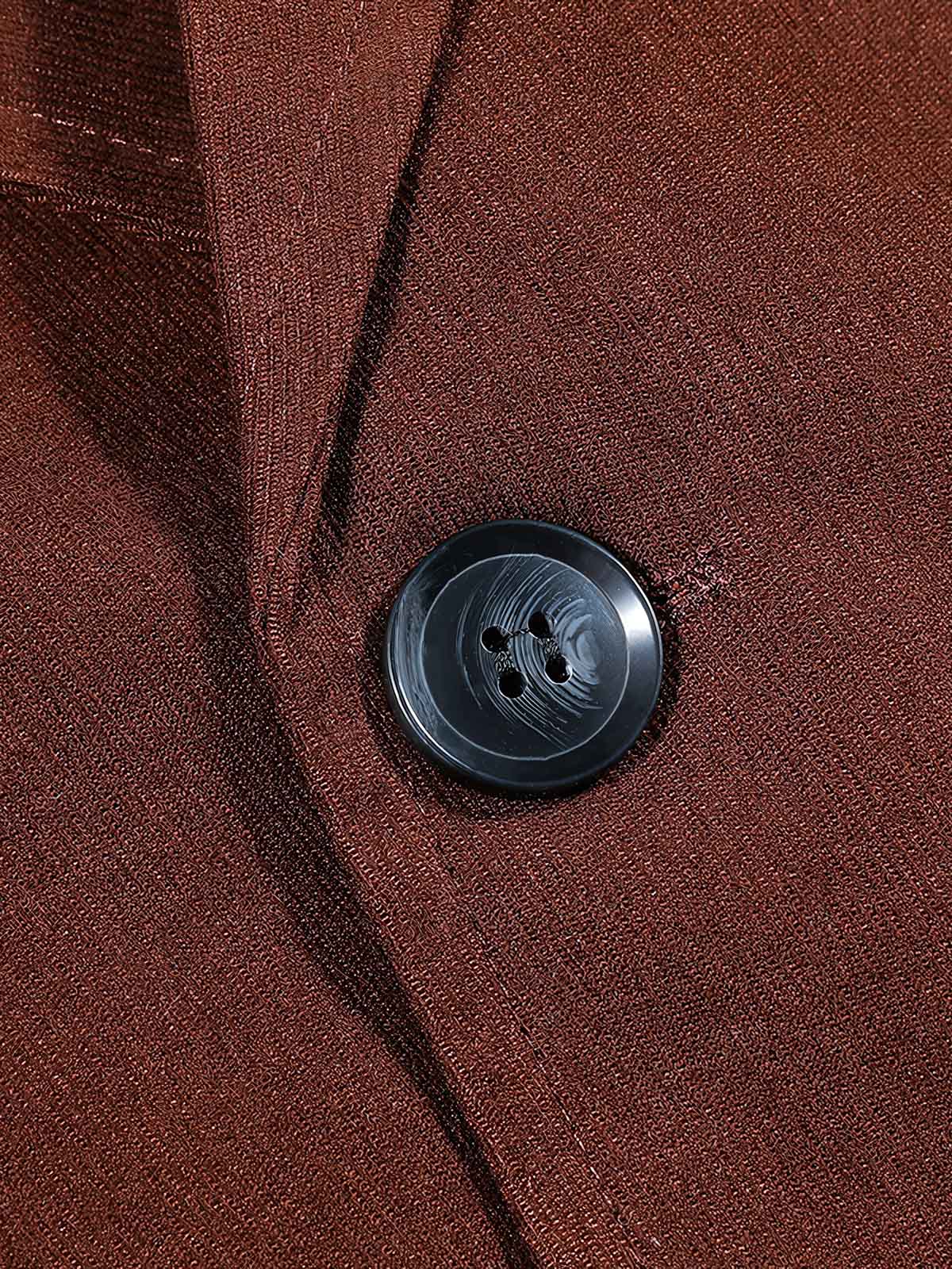 このベルベットのカジュアルスーツは、その柔らかい素材と深い栗色で、古典的な紳士のスタイルを展開しています。20世紀のアメリカとヨーロッパのデザインから着想を得ている可能性があり、カジュアルスーツが流行し始めた時期、これらは正式なスーツの束縛を解き放ち、着用者により多くの快適性と動きの自由を提供しました。