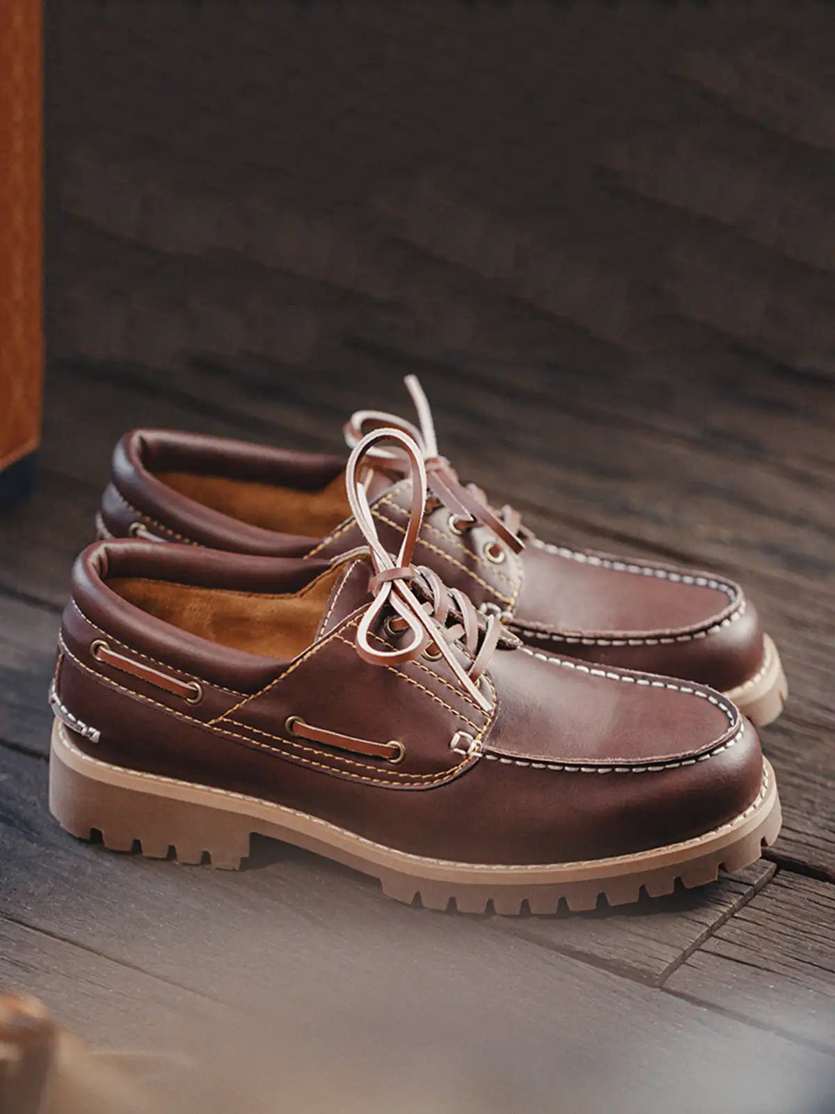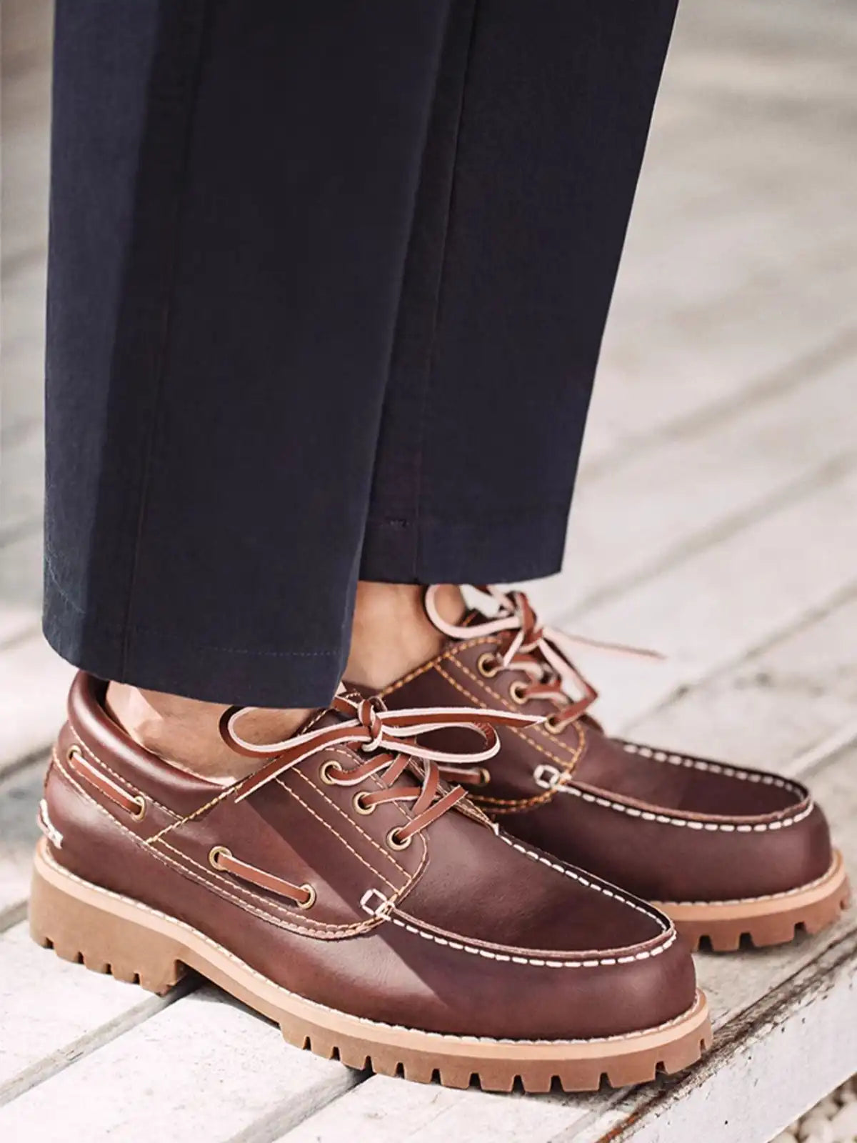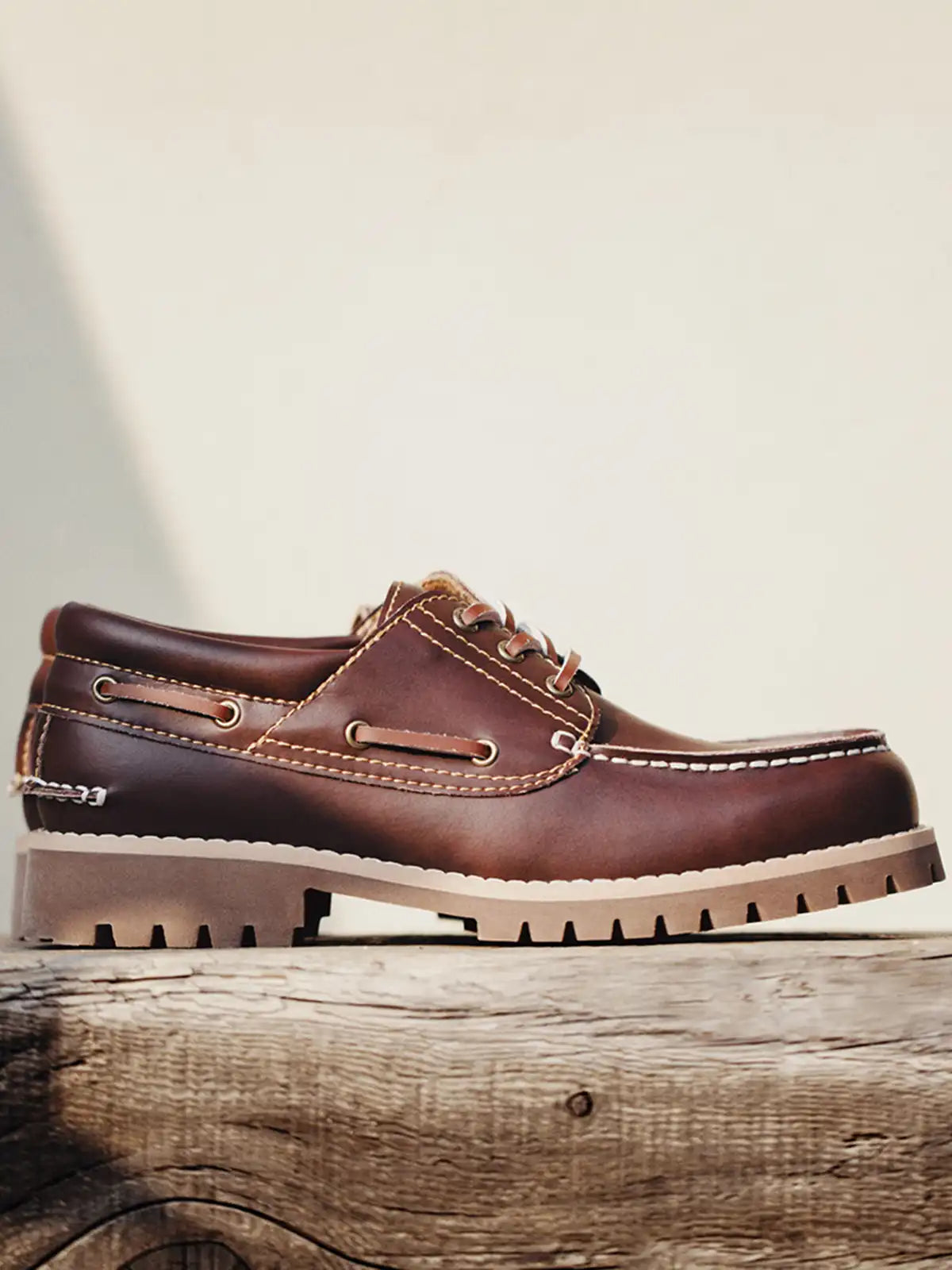 1935年誕生のクラシックな三アイレットボートシューズを、タフな鋸歯ソールで現代的にアップデート。