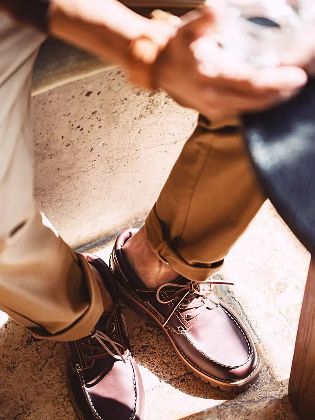 オリジナルは保羅・スペリーが水上作業用に開発した「Deck Shoes」で、サイドの排水ステッチや丸みあるモカシン型が持つ機能性とエレガンスを踏襲。厚みのあるレザーアッパーは耐久性を確保しつつ、シンプルな三アイレット構造がどんなスタイルにも馴染みます。コントラストステッチがアクセントとなり、加厚した鋸歯状のラバーソールが程よいボリューム感とグリップ力をプラス。デニムからチノ、ショーツまで合わせやすく、非公式なシーンからリゾートまで幅広く活躍します。