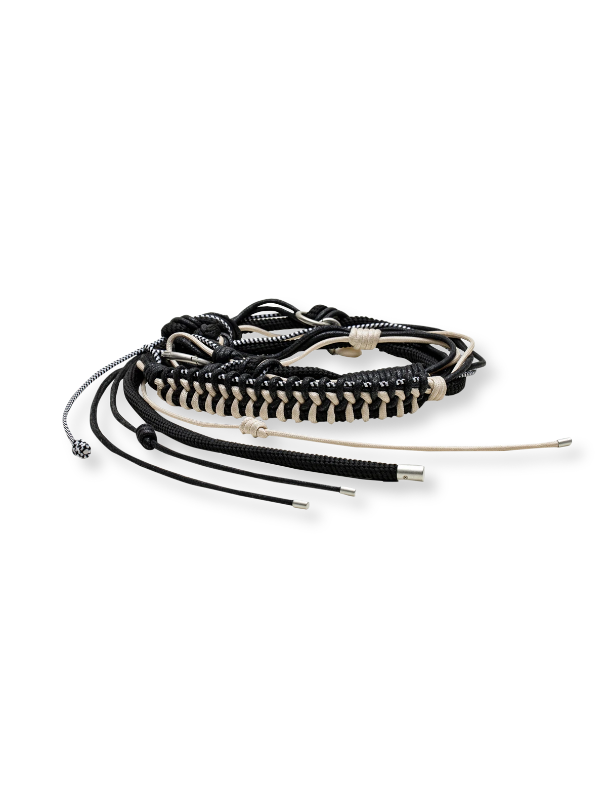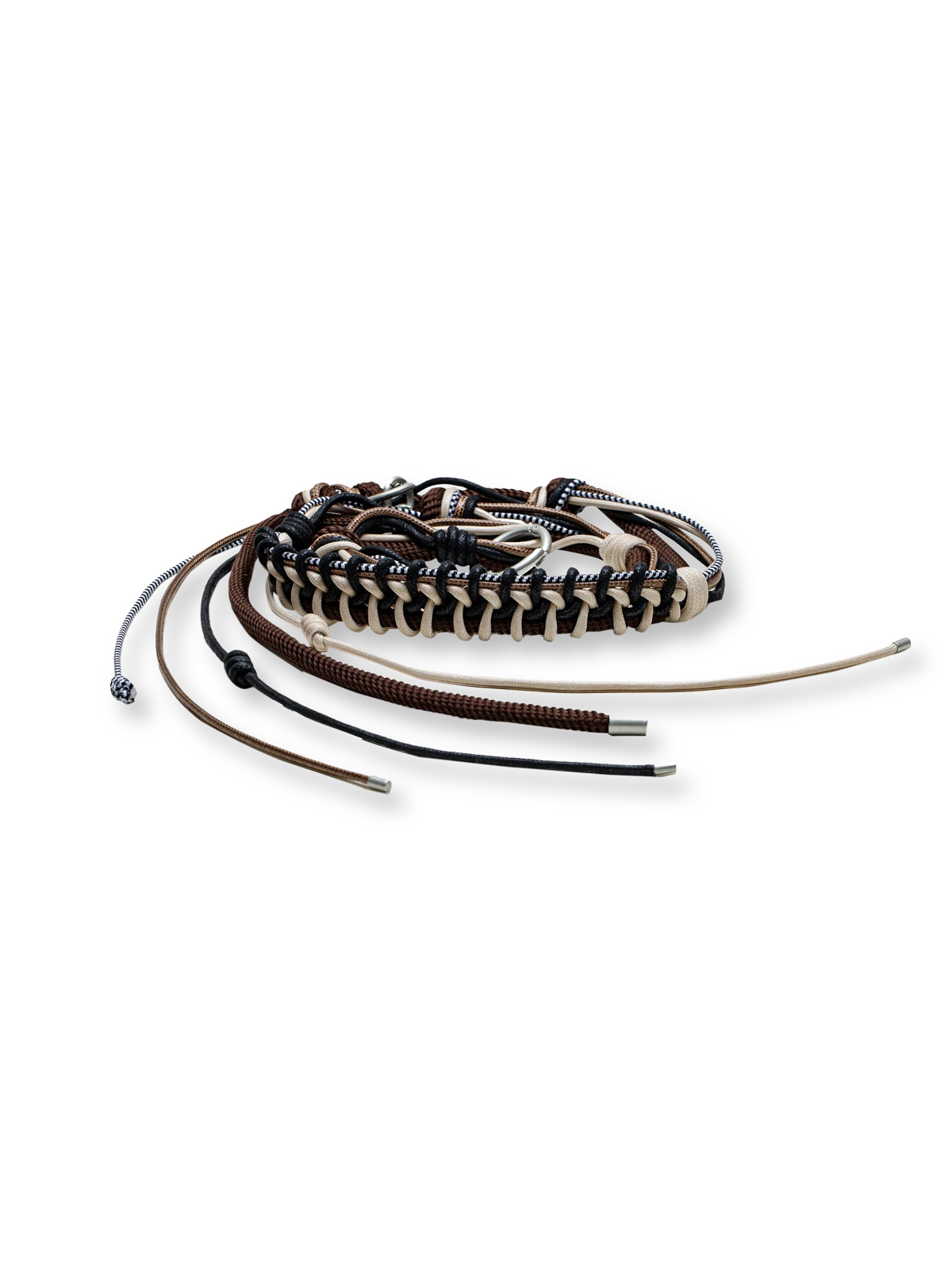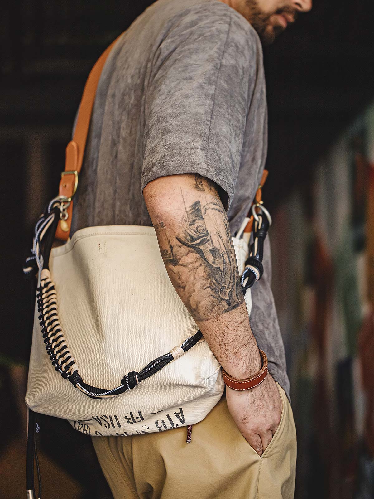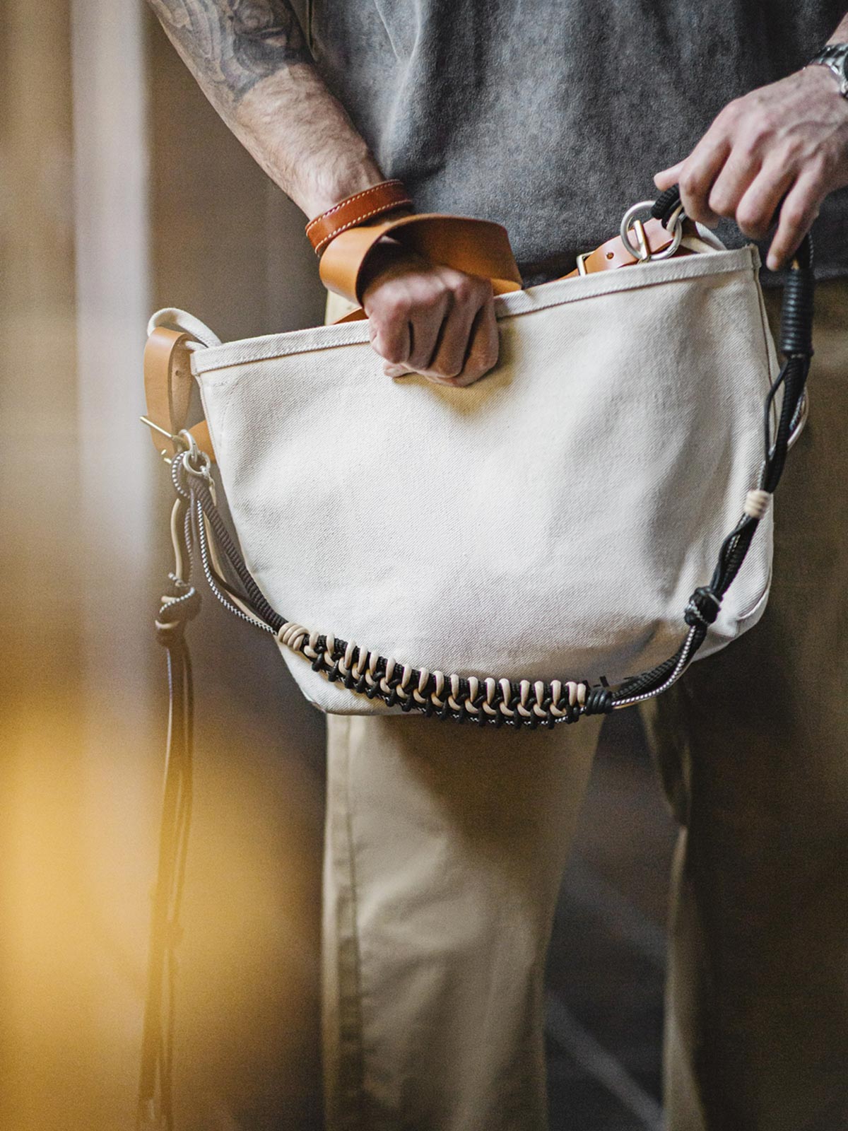 耐久性のあるロープ素材を使用し、精巧な手作業による編み込み技術を組み合わせることで、一インチごとに強固で質感のある仕上がりを実現しています。色の組み合わせと素材の選択は、レトロな雰囲気を醸し出し、着用者の個性を引き立てながら、様々な服装スタイルにも自在にマッチします。