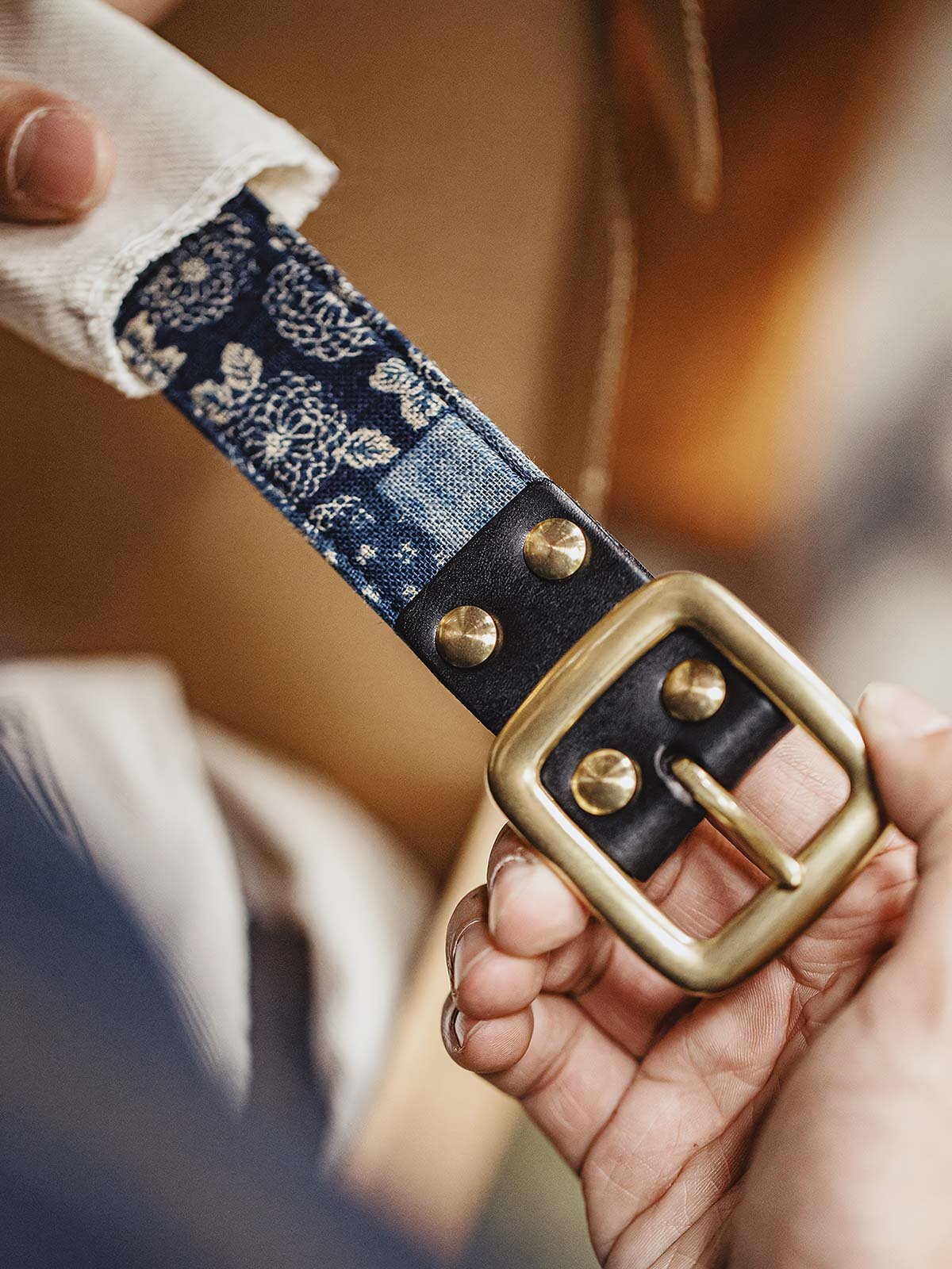 このレトロプリントベルトのデザインは、東アジアの伝統的な百家布(パッチワーク)工芸から着想を得ています。この工芸は長い歴史を持ち、もともとは異なる家庭の古布を手作業で繋ぎ合わせて作られ、各布片には代々伝わる物語や祝福が込められていました。