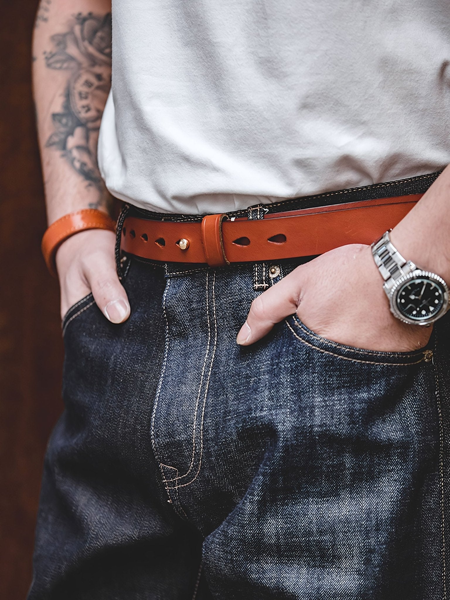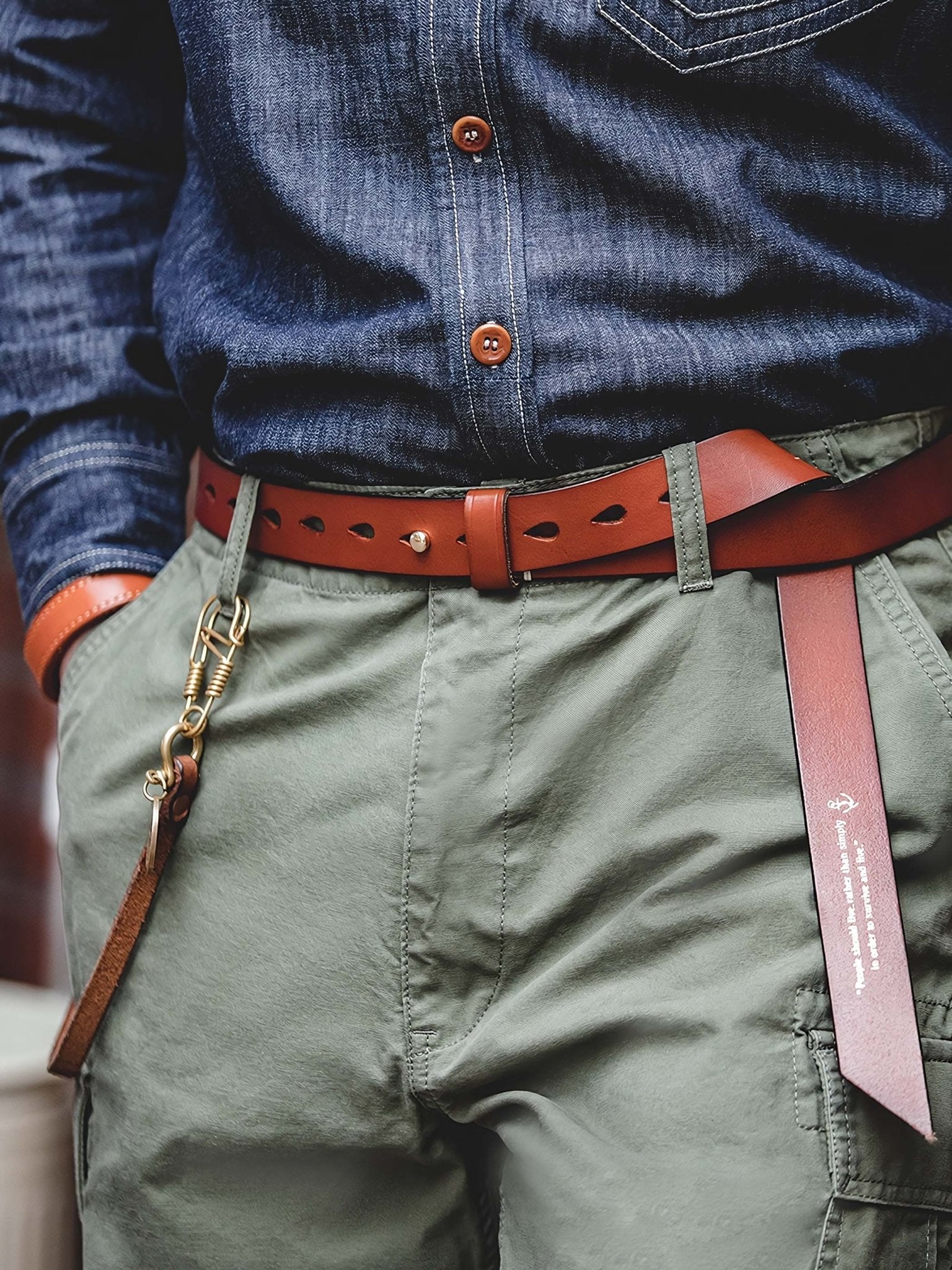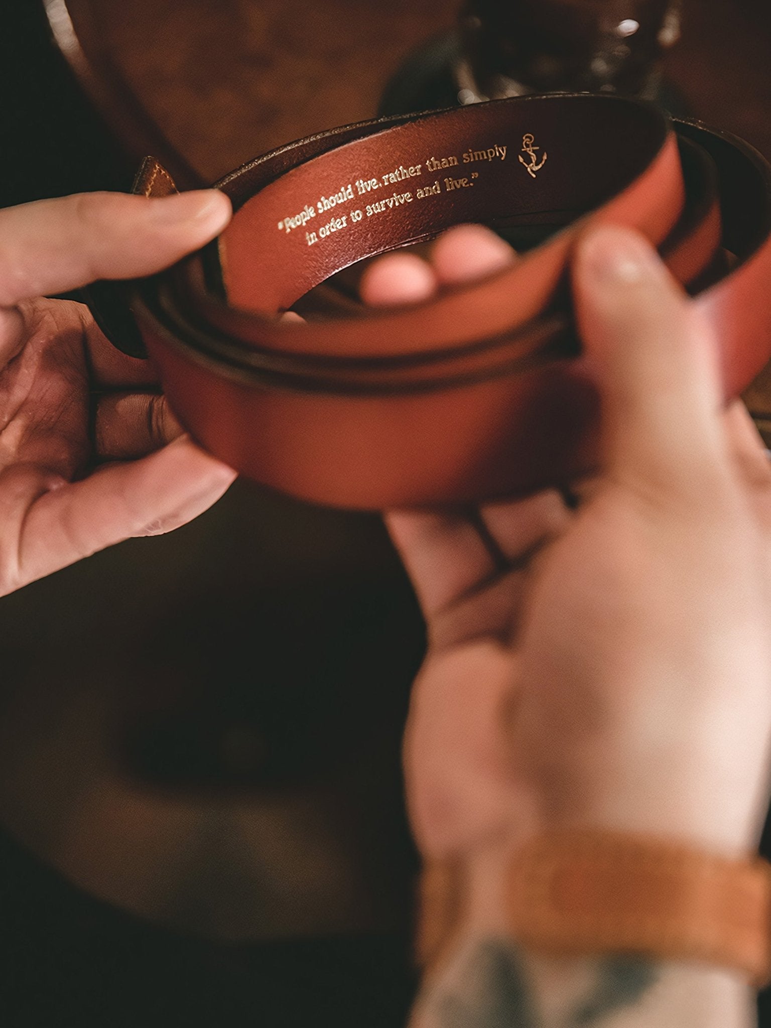 植物タンニンなめしの革を使用したことで、このベルトは他にはない独自の風合いを持っています。植物タンニンなめしの革はその革そのものの持ち味を生かした風合いを生むため、同じ革が2つとないオリジナリティのある革製品に変身します。植物タンニンなめしの革は使い込むほどに魅力が増し、より風格が増していきます。
