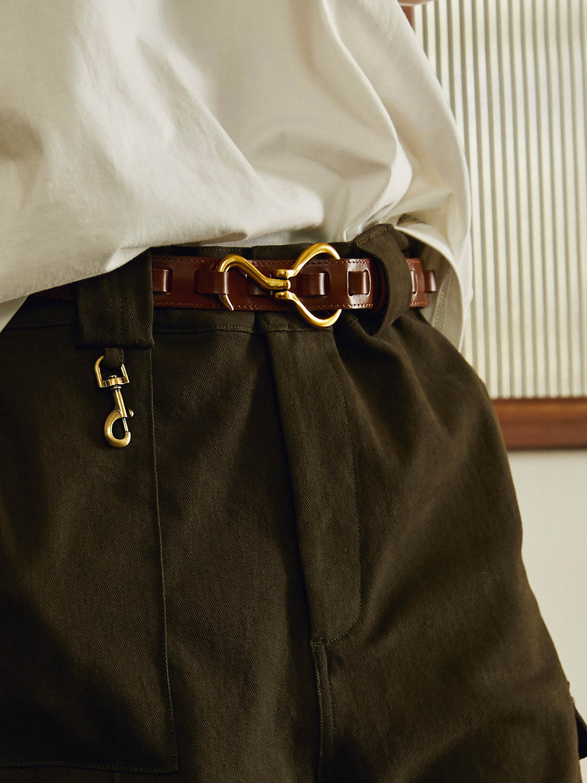 このレトロフックレザーベルトは、高品質のトップグレイン牛革を使用し、伝統的な手工芸と現代的なデザイン要素を組み合わせています。調整可能な真鍮フックを使用することで、ユニークな特性を加え、クラシカルでエレガントなスタイルを表現しています。