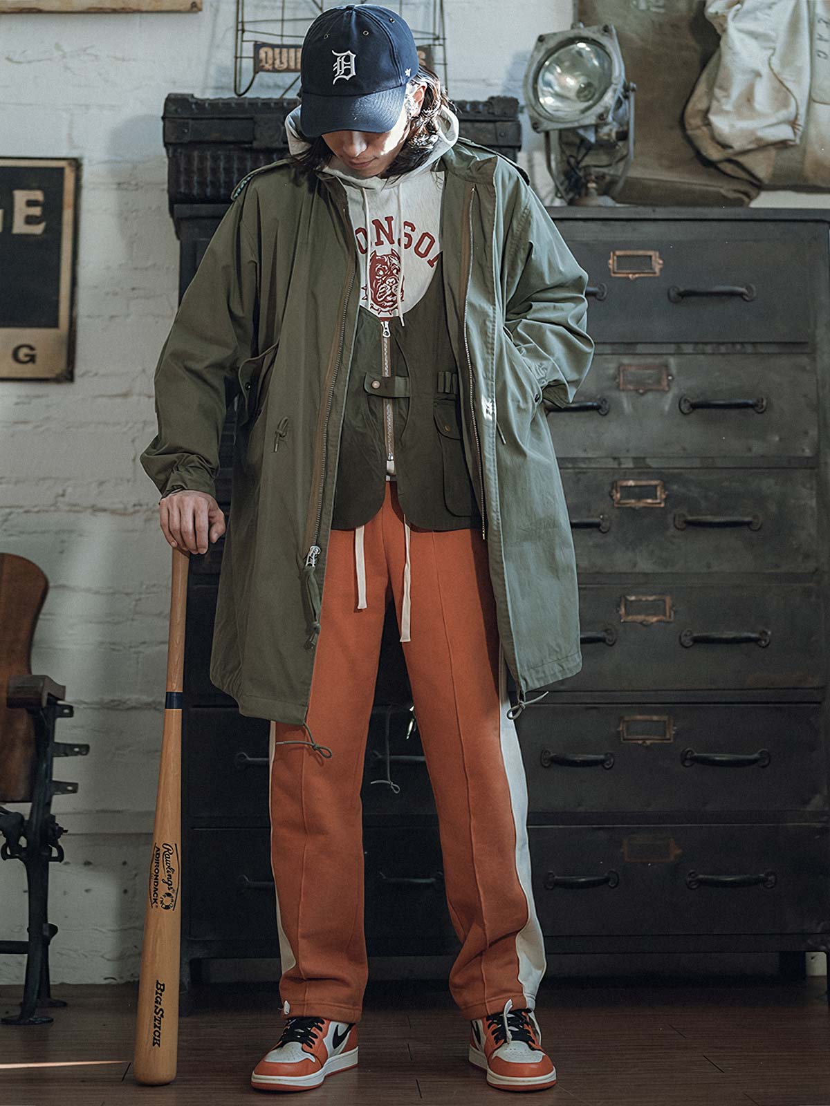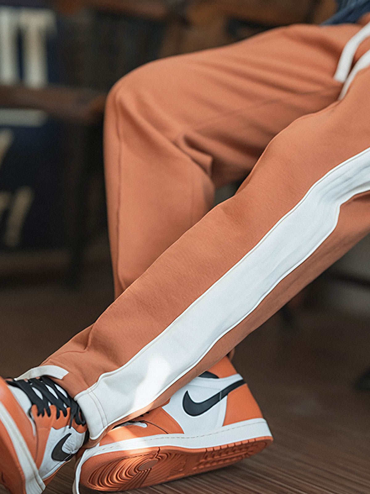 これらのスウェットパンツは、プレーンなTシャツやシンプルなスウェットシャツと相性が良く、快適でありながらもおしゃれなスポーツウェアルックを完成させます。スニーカーやスリッポンを合わせることで、スポーツカジュアルスタイルの日常的なアウトフィットになります。