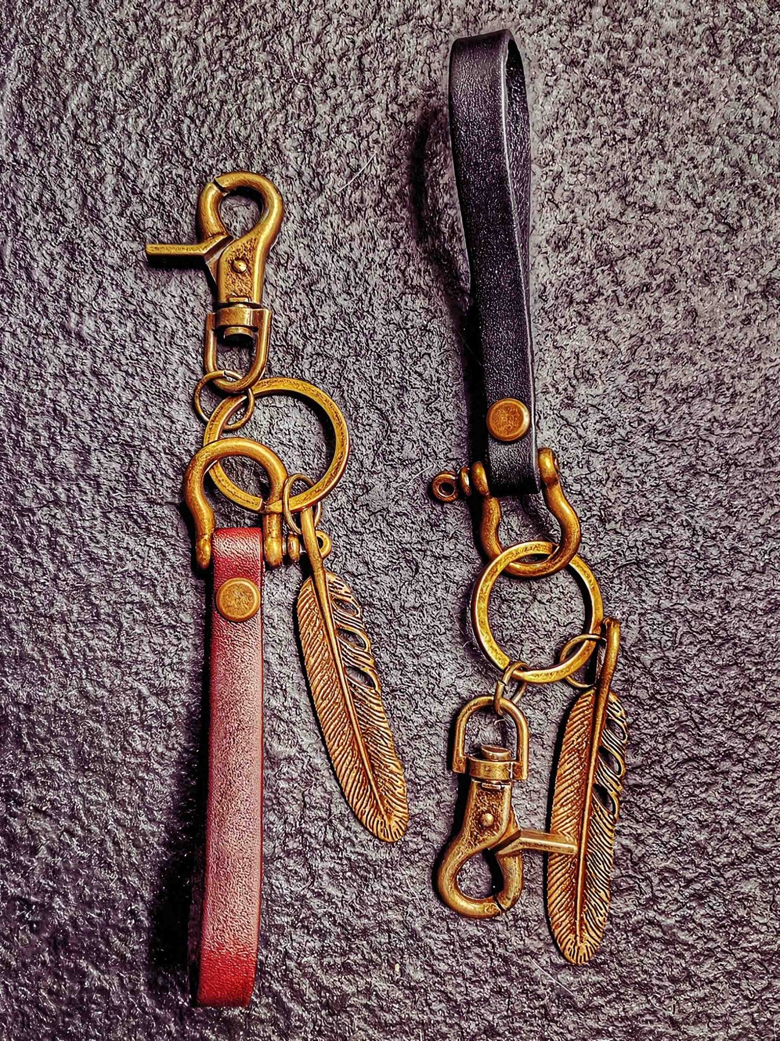 1本1本丁寧にフェザーのデザインをカービングしており、メンズやレディースを問わずにお楽しみいただけるデザインとなっています。タンニンなめし革を使用し、ヴィンテージフェザー仕上げの特製真鍮素材を特別な加工でお肌にやさしく仕上げています。その結果、長年使い込んだような風合いが演出され、全体的に無骨な雰囲気が魅力的です。