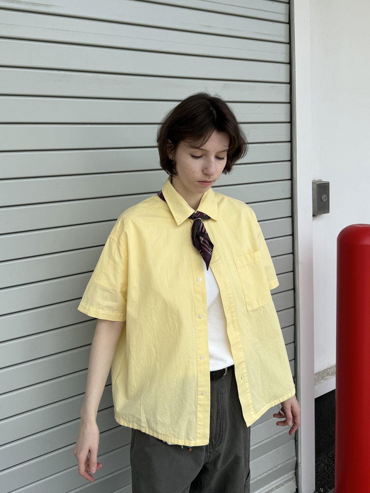 クラシックなアメリカンスタイルの無地半袖シャツ、快適で通気性のあるクロップドデザイン。