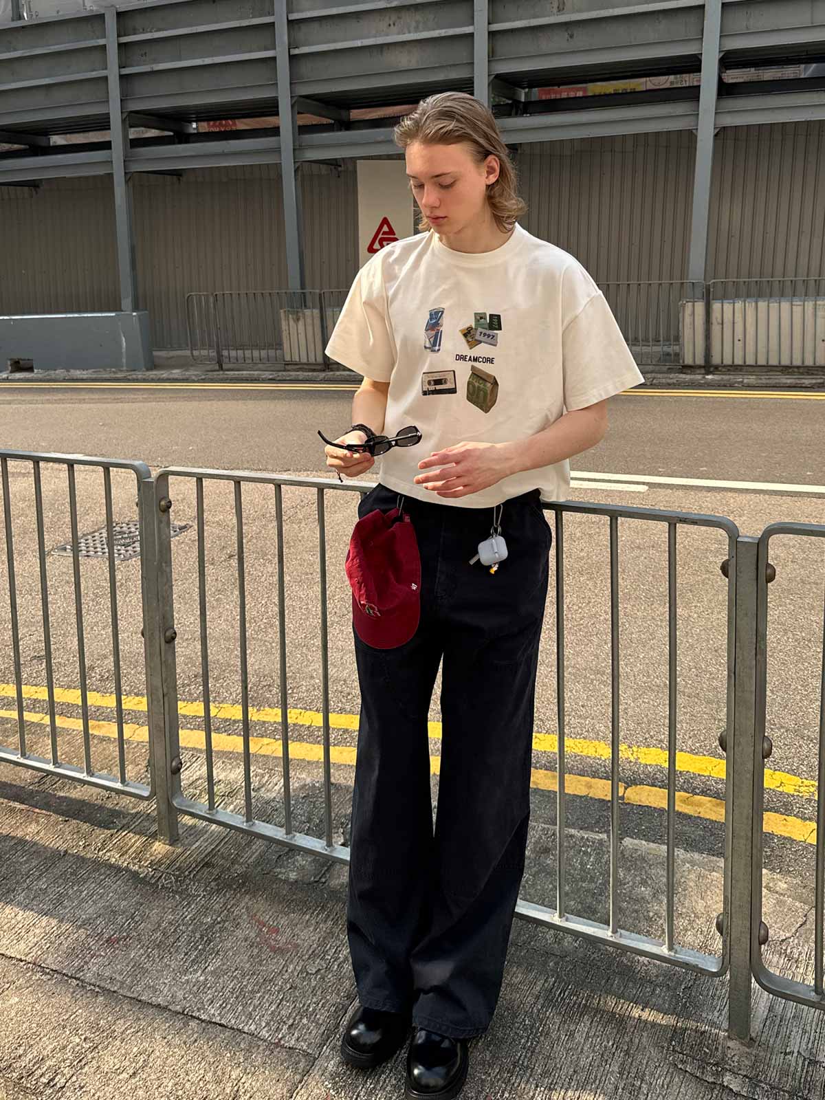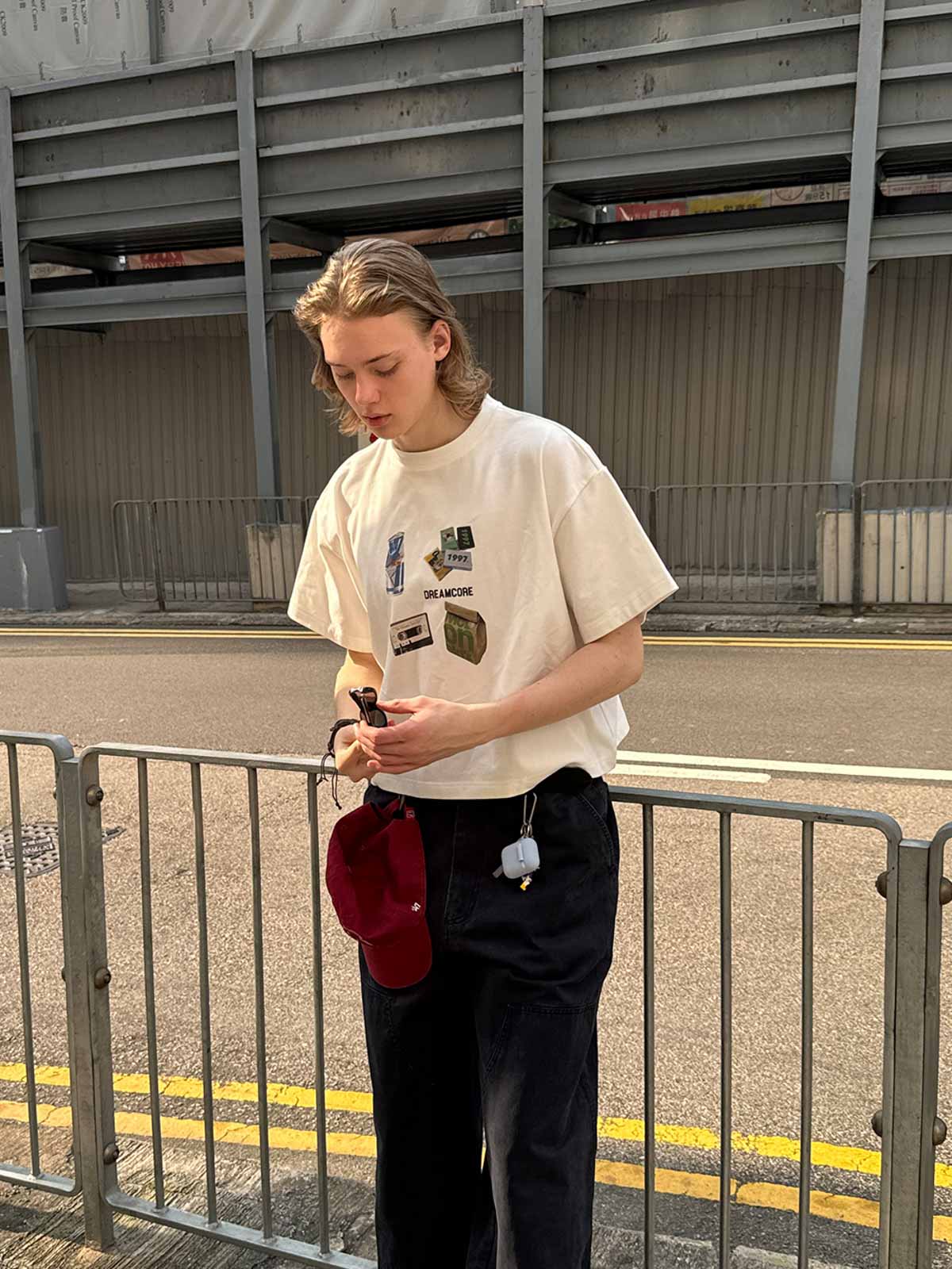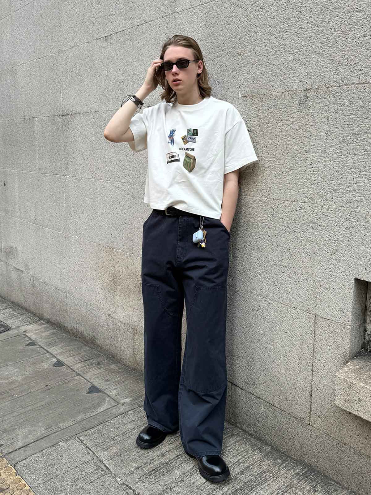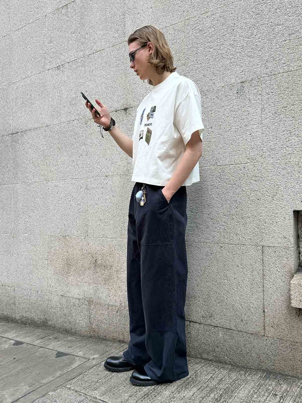 ユニークな柄デザインと快適なコットン素材のクロップドTシャツ、個性を引き立てる一枚。