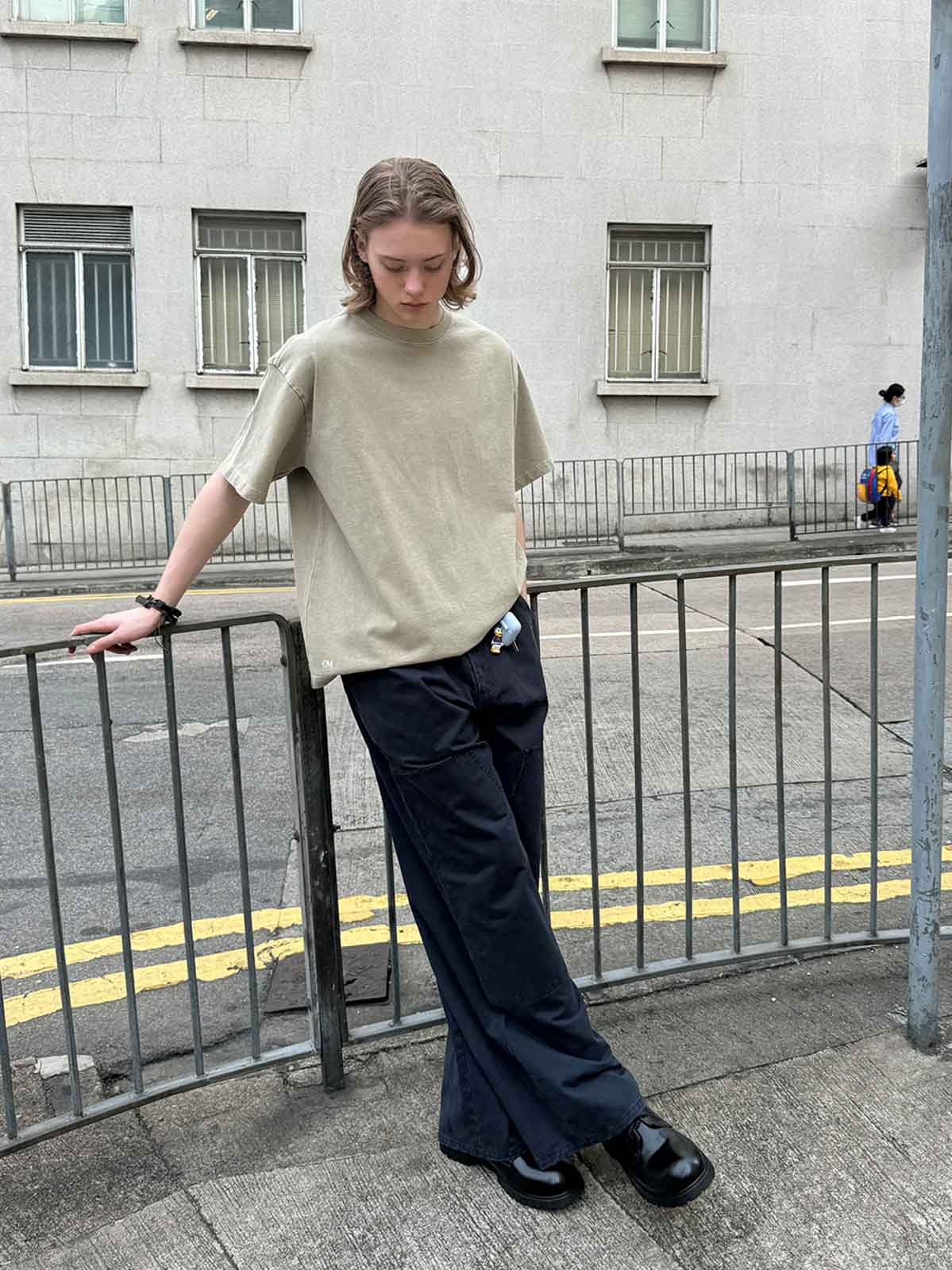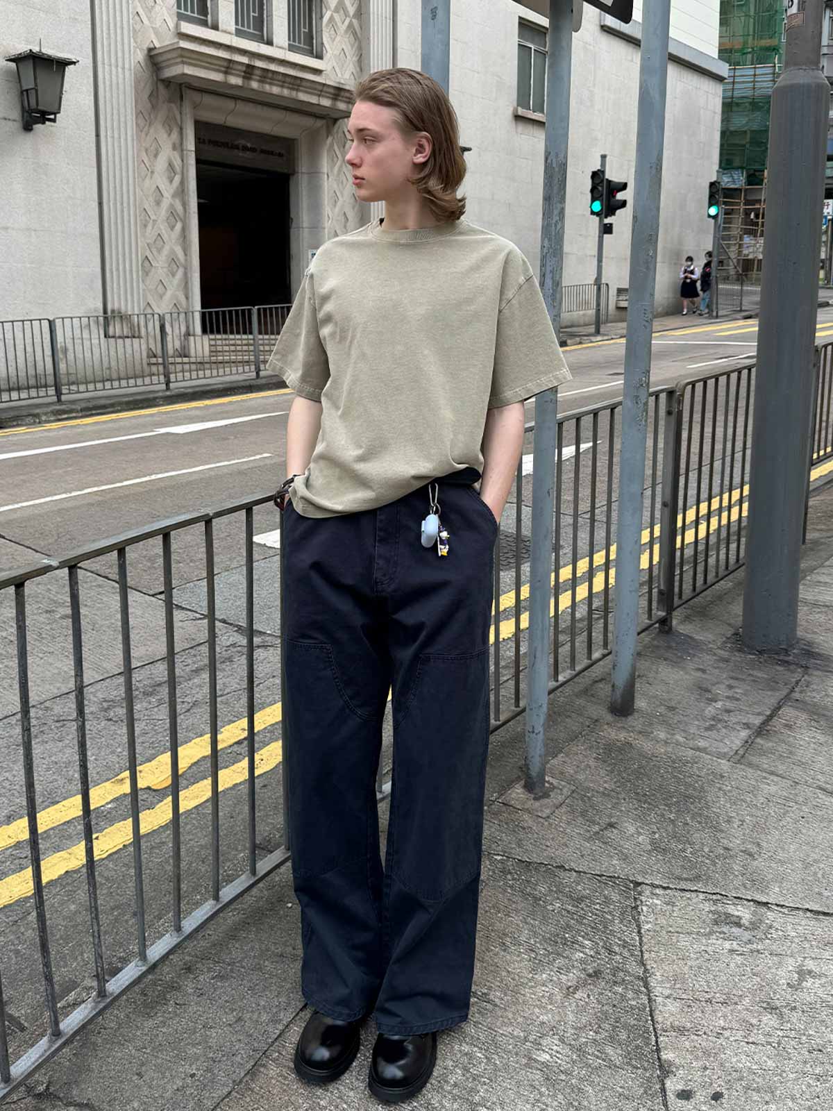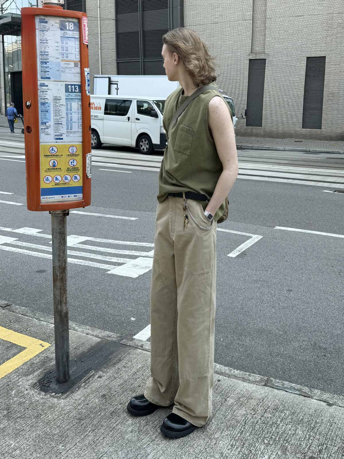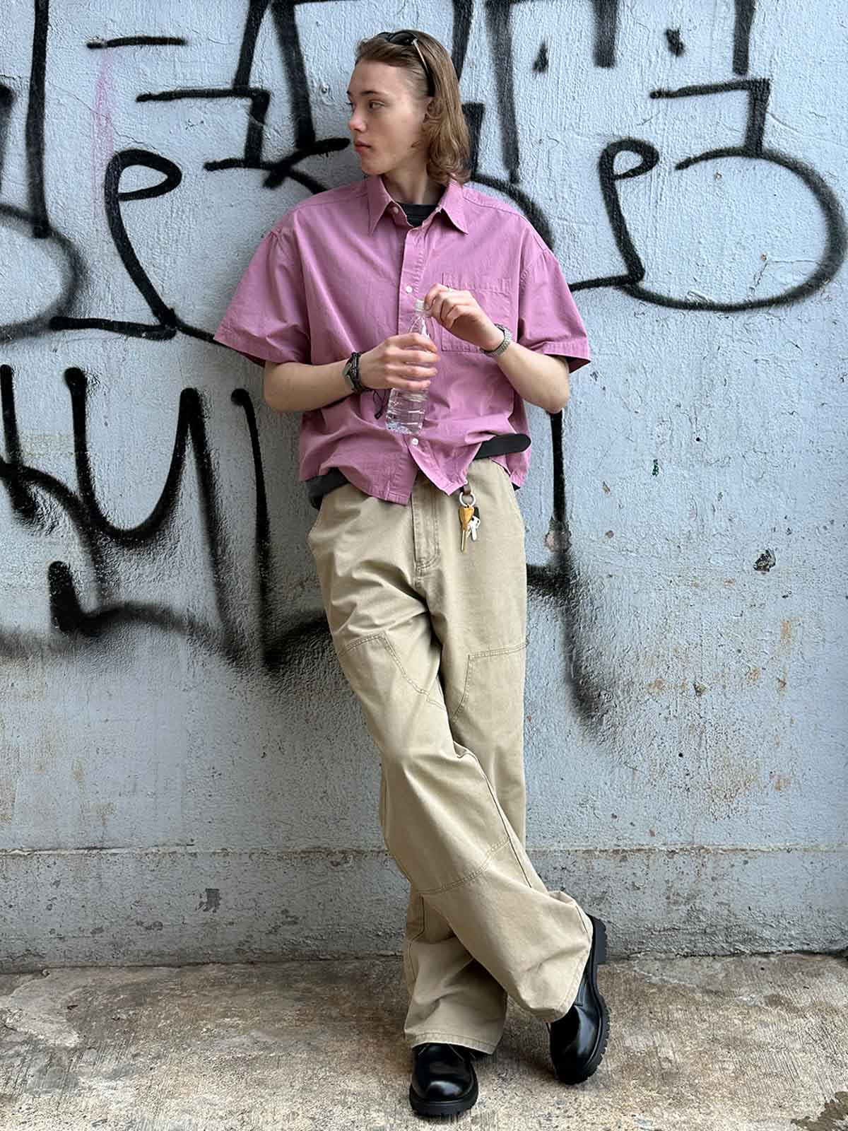 クラシックなワークデザイン、ヴィンテージカーキカラーでタフなスタイルを演出するストレートワークパンツ。