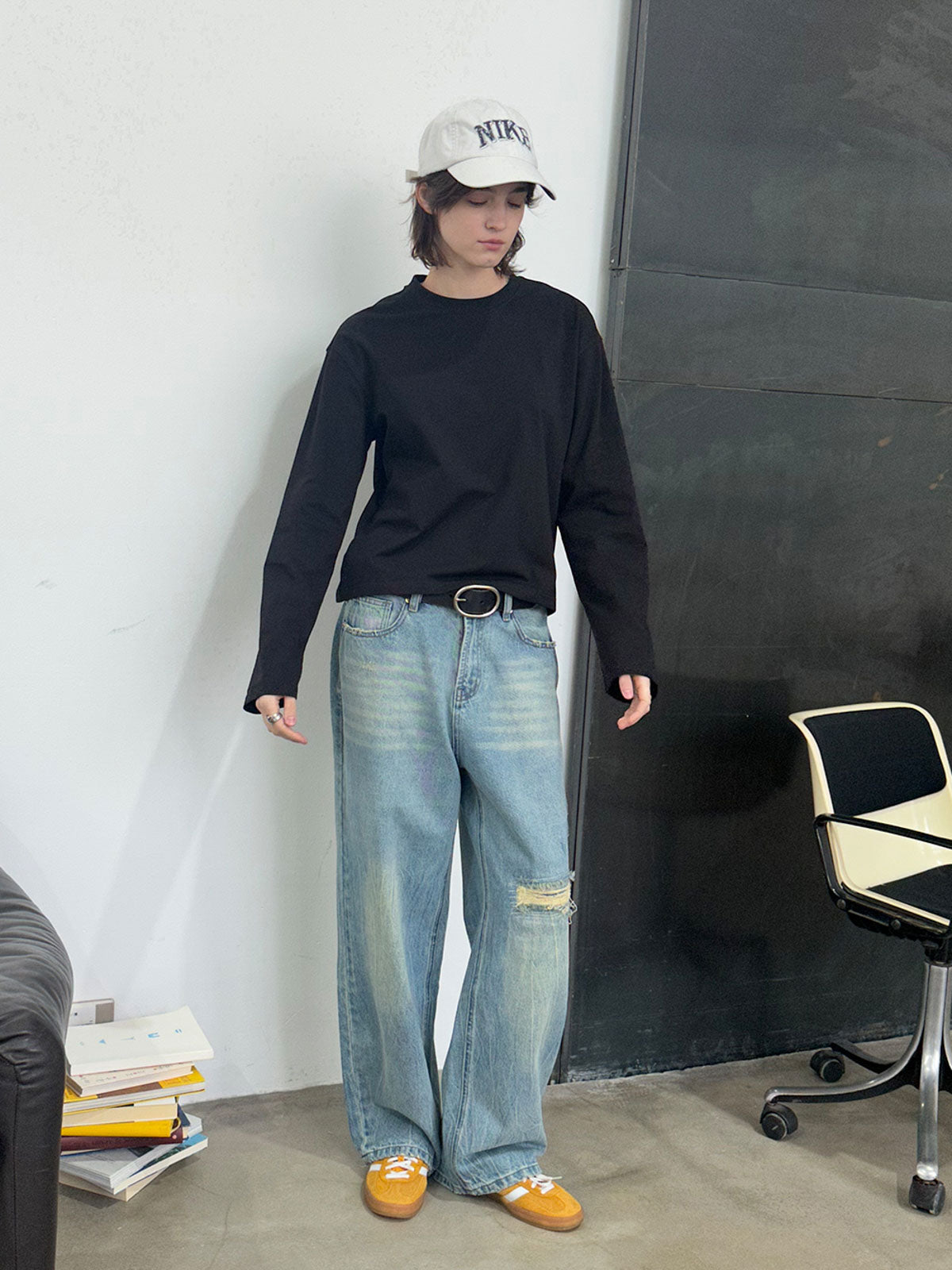 猫ひげ模様と破れ加工が特徴のレトロでスタイリッシュなアメリカンヴィンテージジーンズ。