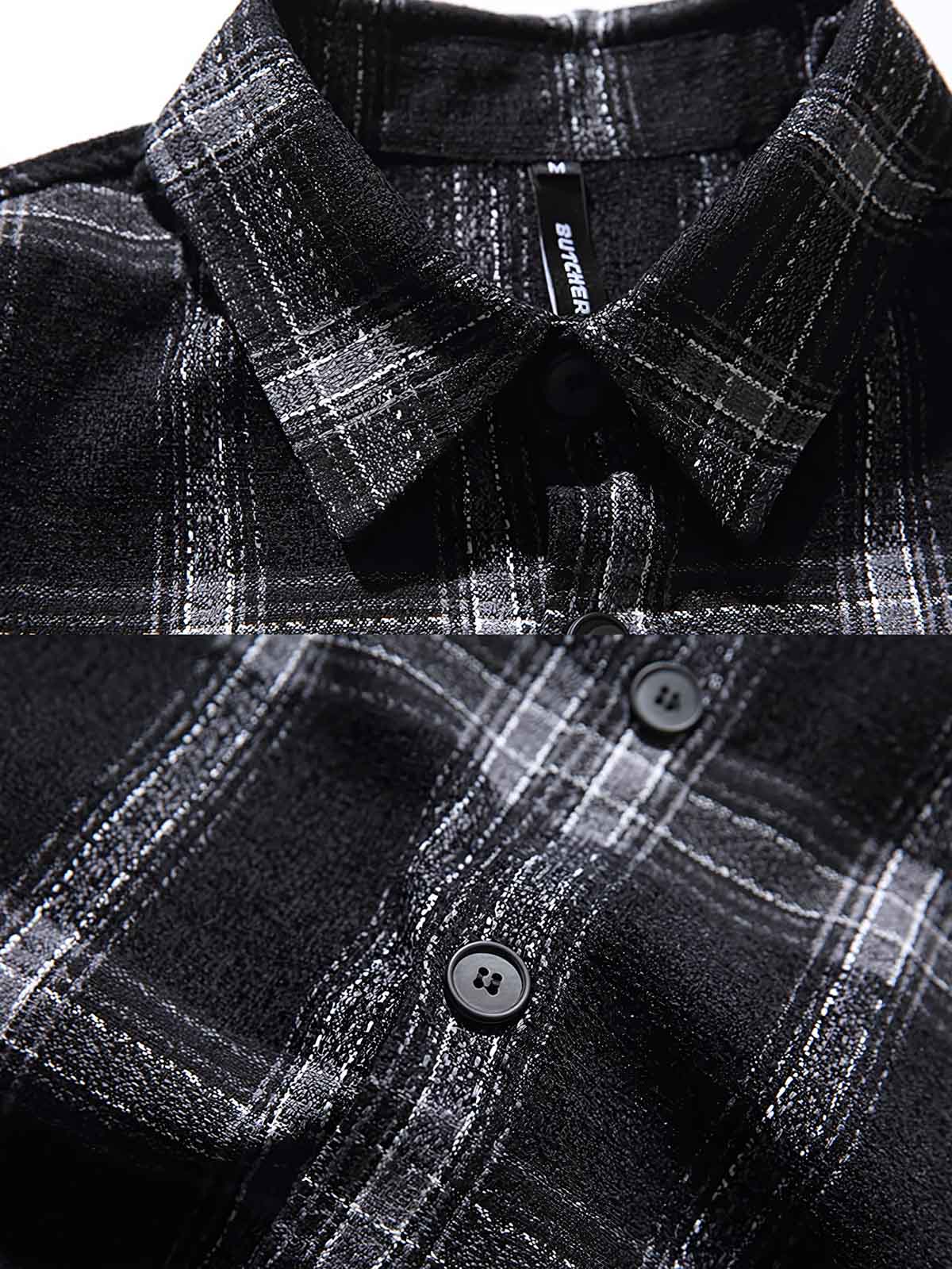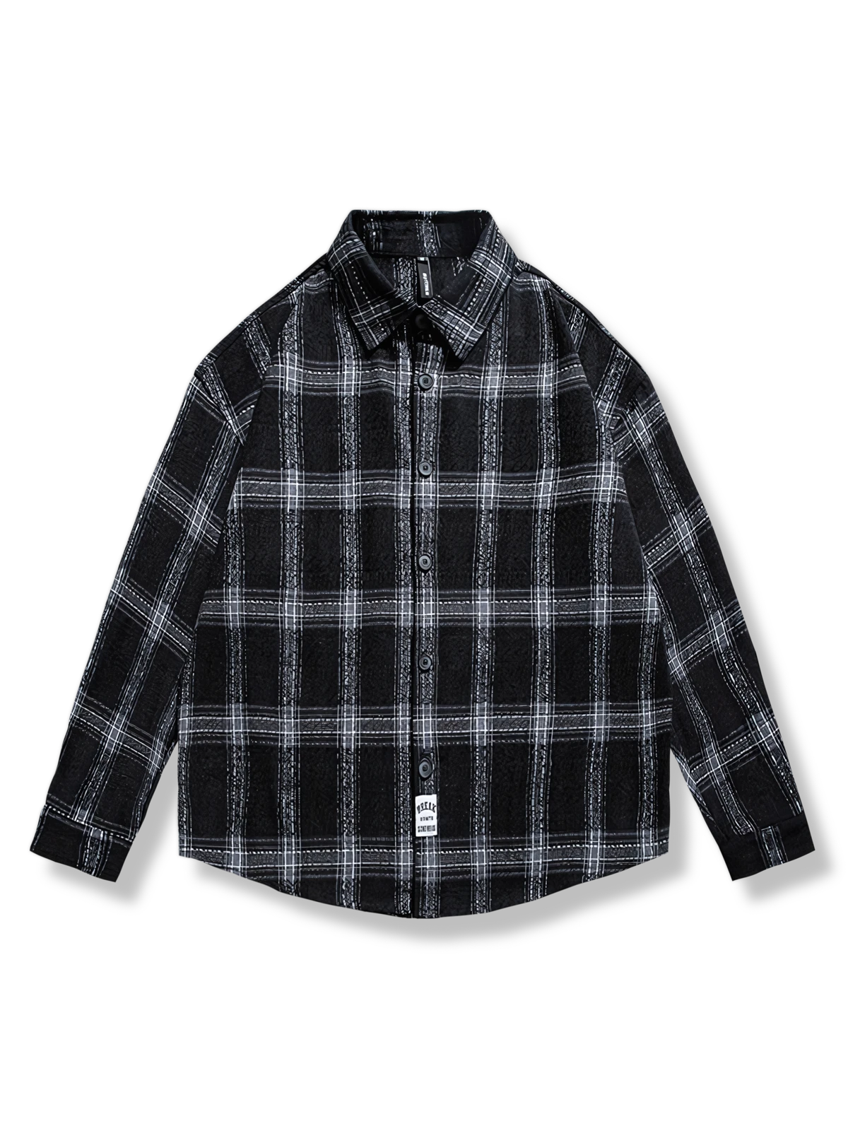 このチェック柄シャツは、男性ファッションの不朽のクラシックであり、スコットランドのタータンチェックの伝統からインスピレーションを受けています。20世紀アメリカのカジュアルファッションや、ロックやユースサブカルチャーからの影響を受けたこのデザインは、現代の都市生活における若者の個性を表現する手段として、背面に特徴的なテキスト刺繍を施しています。