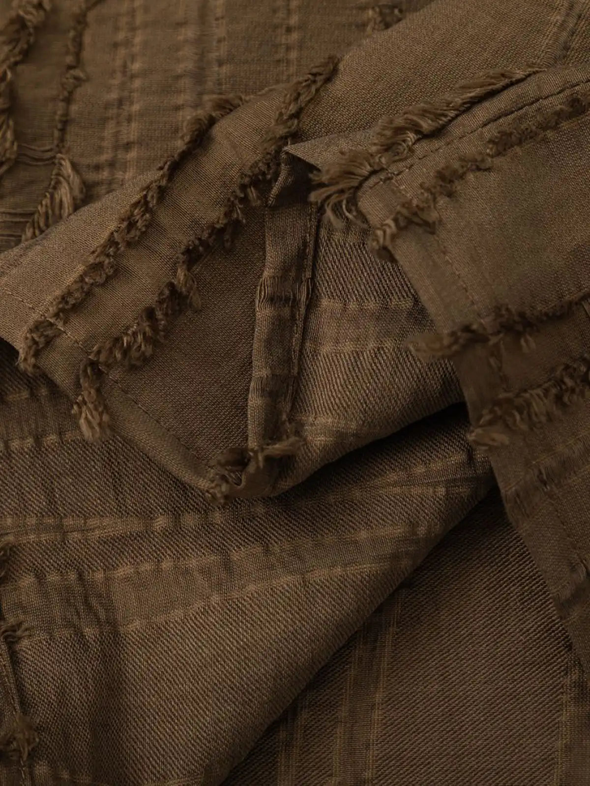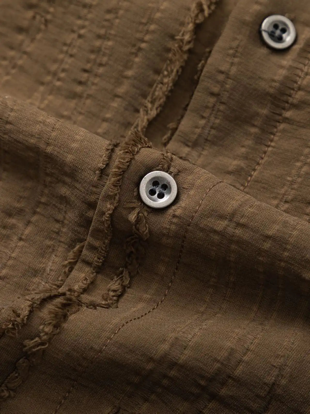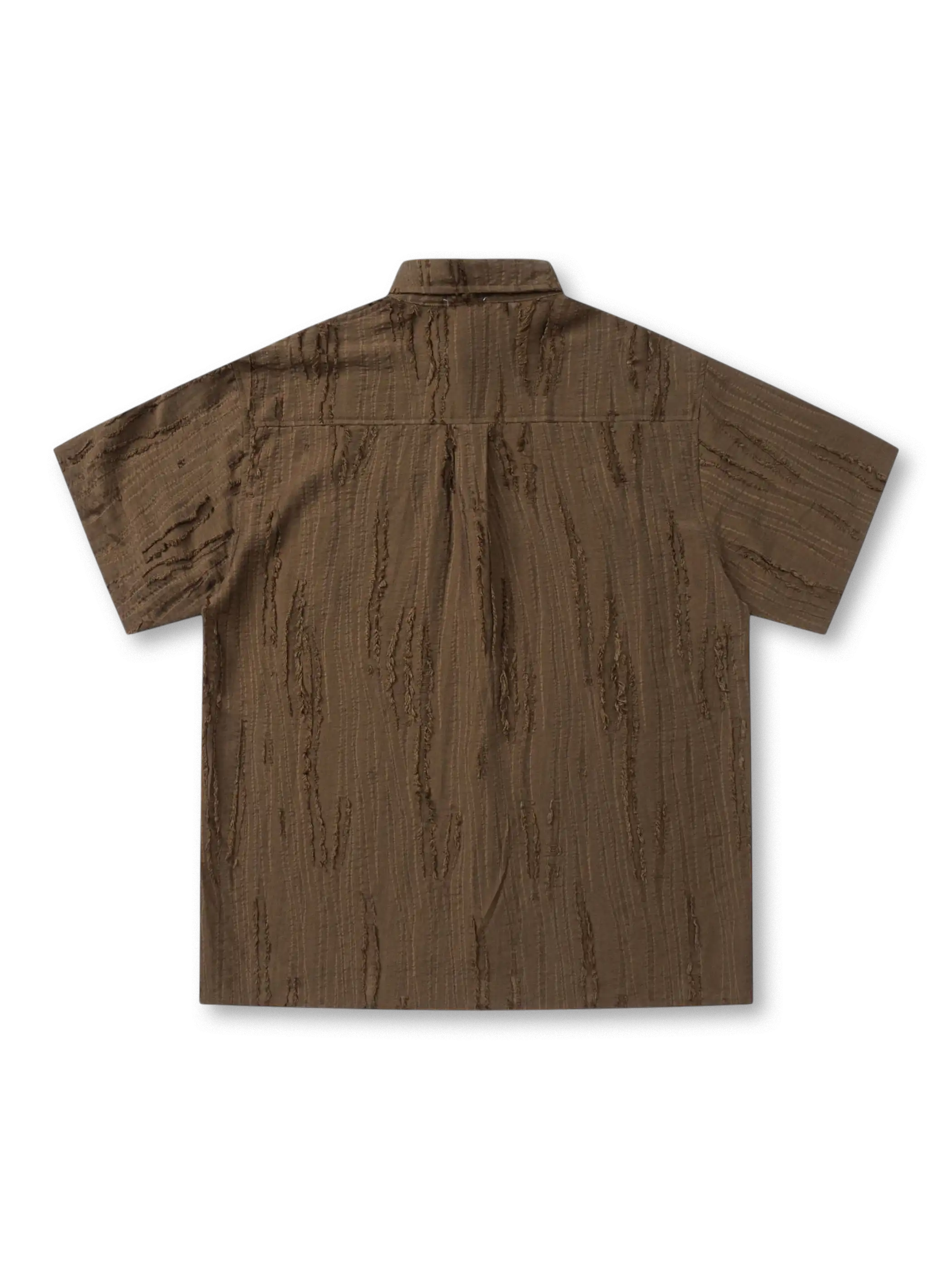 樹皮のような凹凸感が生む絶妙な陰影で、一枚でも存在感を放つ半袖シャツ。