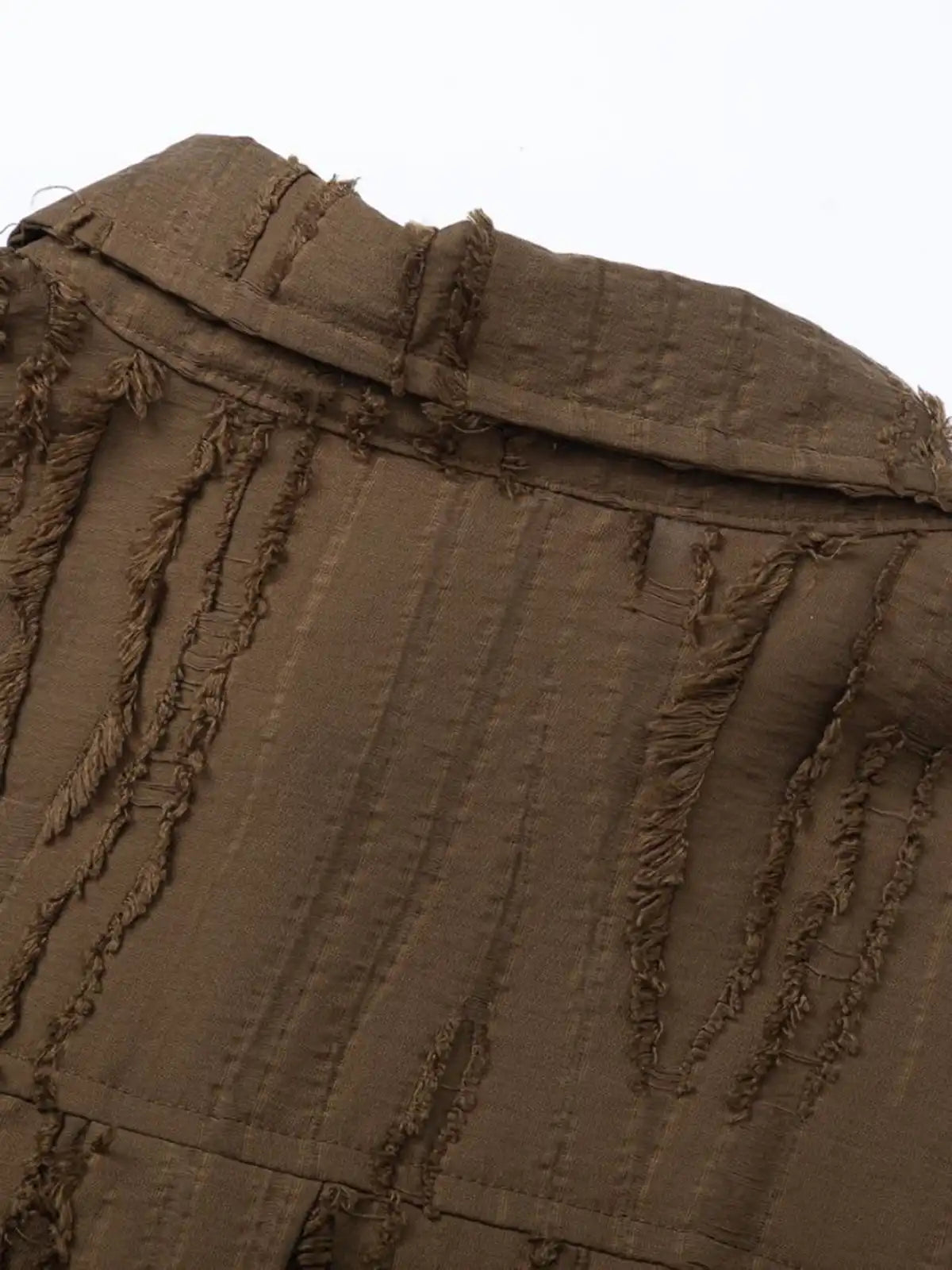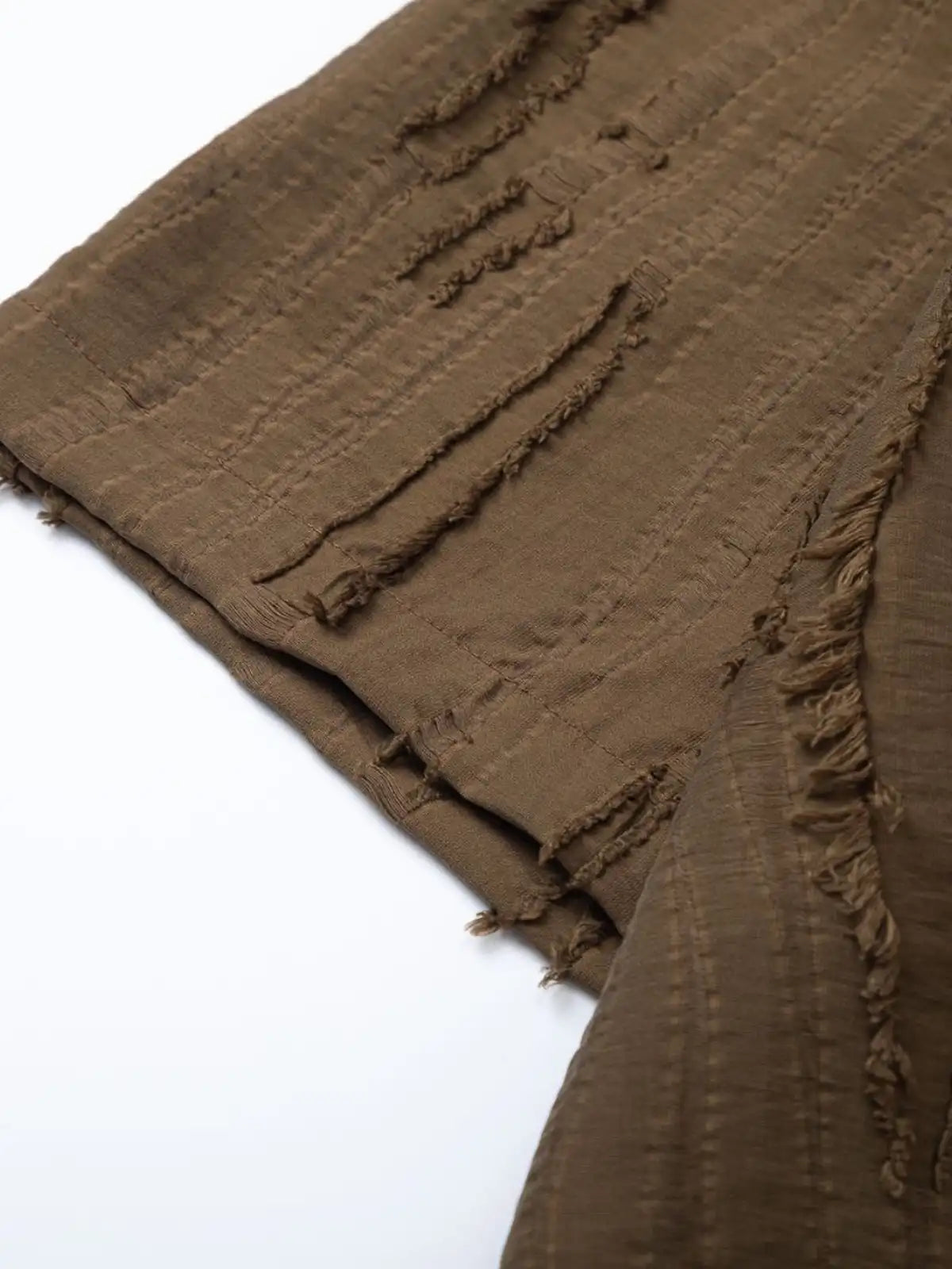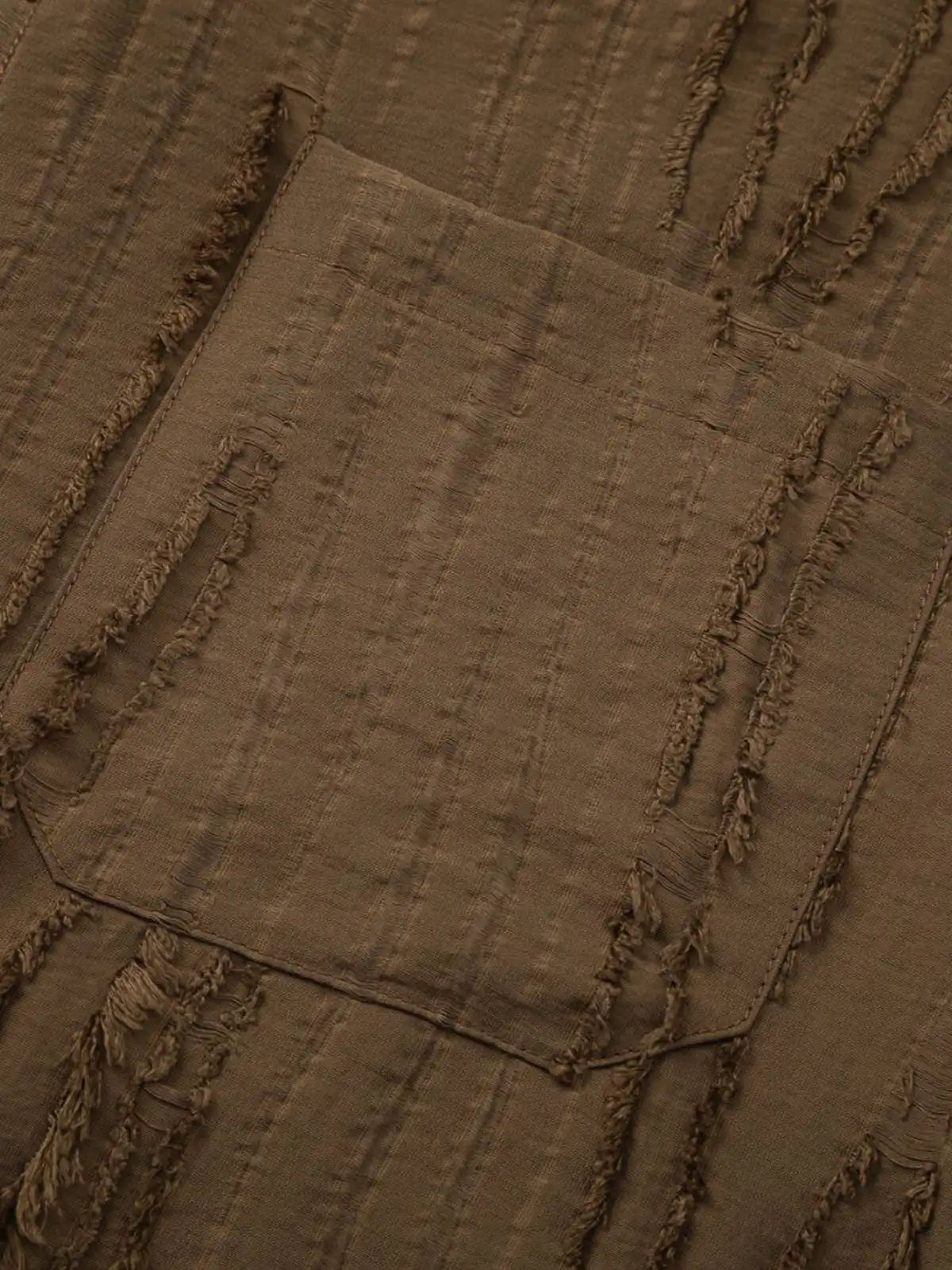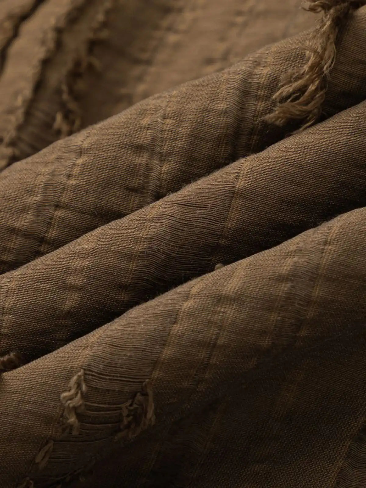 樹皮のような凹凸感が生む絶妙な陰影で、一枚でも存在感を放つ半袖シャツ。