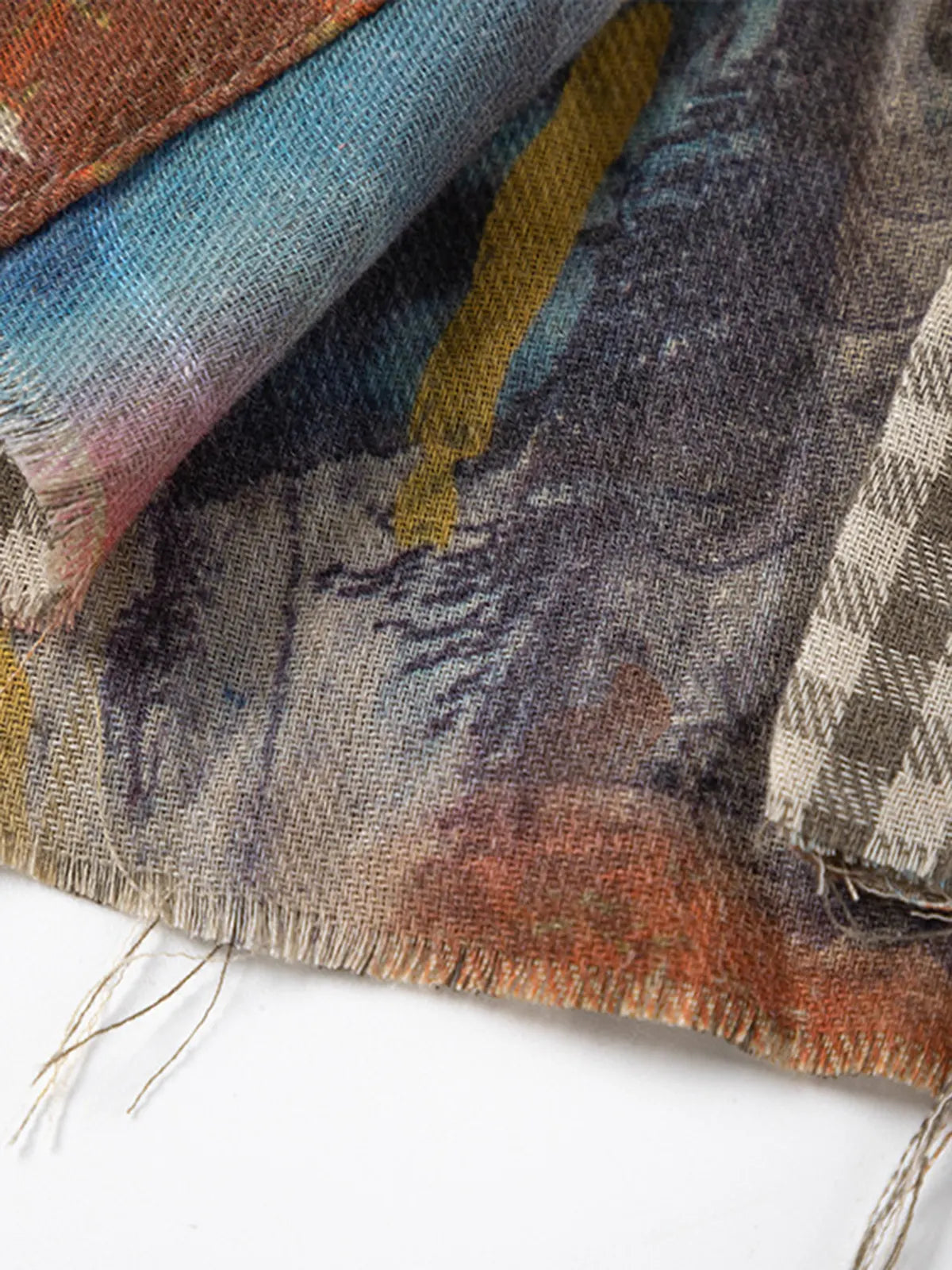一面は色鮮やかなペイントとコラージュ調グラフィティを大胆にプリントし、もう一面は落ち着いたブラウンチェックを配したリバーシブルデザイン。どちらも古着のような切りっぱなしの裾やダメージディテールをあしらい、ユニセックスで楽しめるオーバーサイズシルエット。コットン100%の軽やかな肌触りで通気性もよく、1枚で幅広いコーディネートに重宝します。