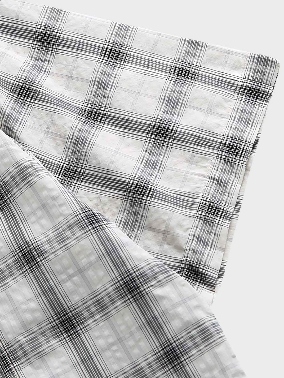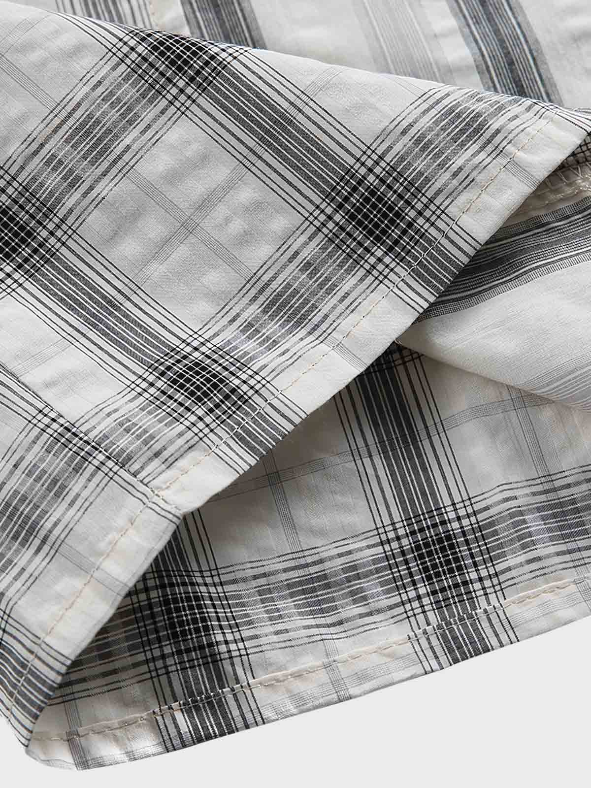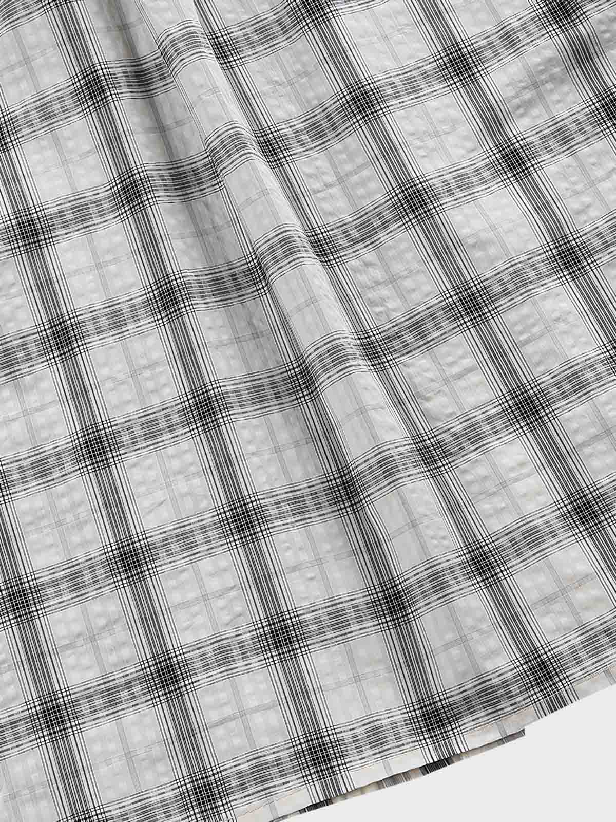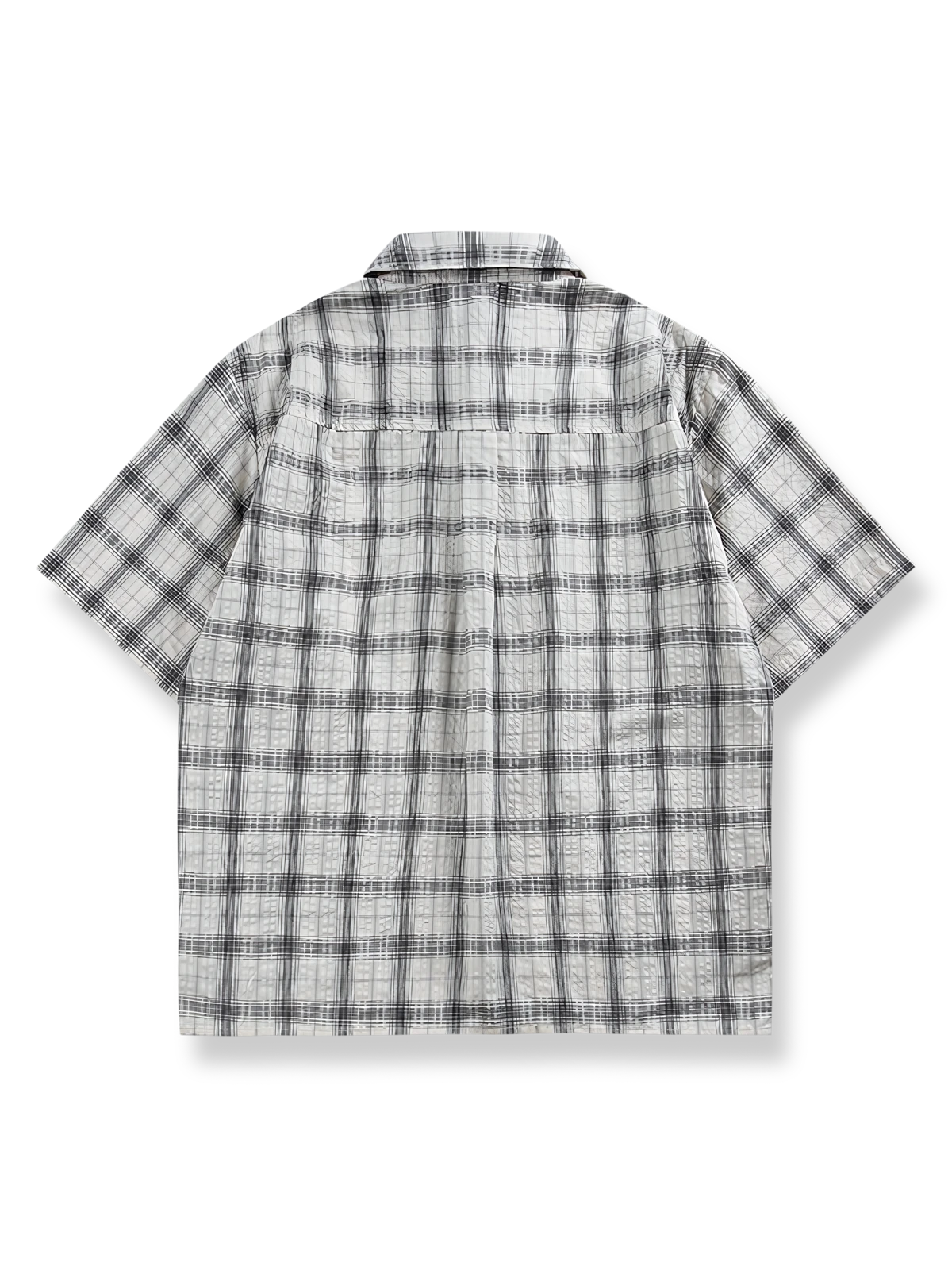 この半袖シャツは、クラシックなストライプとチェックを組み合わせたパッチワークデザインを特徴としています。古典的な美学の原則に基づいて異なるパターンを巧みに組み合わせることで、秩序と革新を融合したユニークな視覚効果を創出しています。