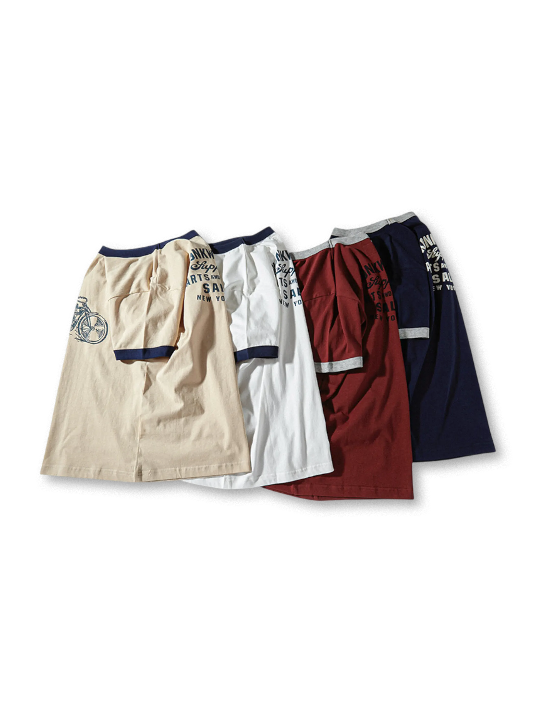 旧年代のオートバイをモチーフにした繊細なグラフィックを、210g/m²の平織ダブルヤーンコットンに彫り込むようにプリント。通常のオフセットでは味わえない立体感と、剥がれにくいシルクスクリーンの刻印技法が特徴です。襟と袖口に配した配色リブがアクセントを添え、三本針縫製や肩ツールテープで型崩れを防止。ほど良い厚さとハリ感が一枚で存在感を放ち、デニムやワークパンツと合わせて男らしいヴィンテージスタイルを完成させます。