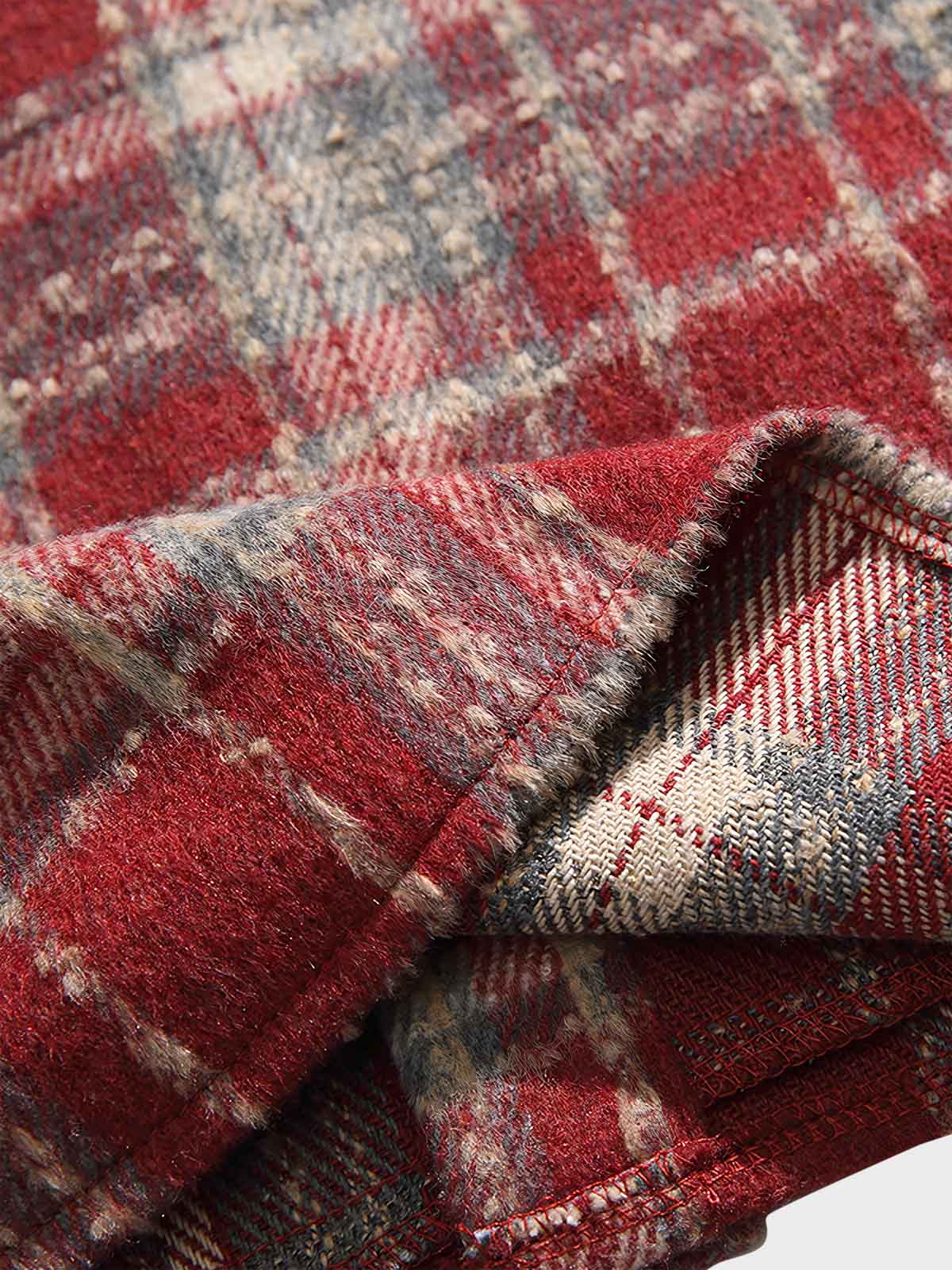 高品質なポリエステルニット生地を使用しており、耐久性と柔軟性に富んでいます。ニットならではの温もりと、ポリエステルの機能性を併せ持ち、秋から春にかけての長いシーズンで活躍します。ヴィンテージ感を出すために、色褪せたような色合いと柔らかなニット生地を採用しており、過去と現在が融合したファッションを提案しています。繊細なニットパターンがチェック柄の美しさを際立たせています。
