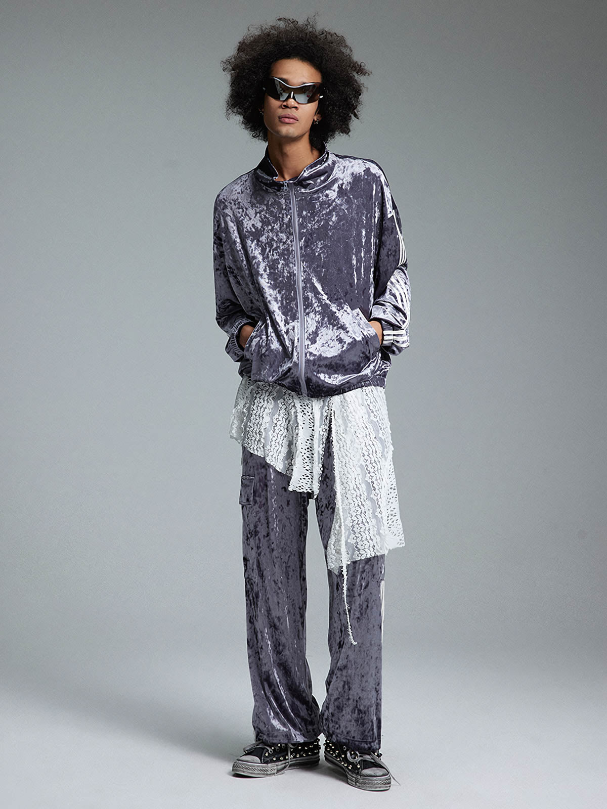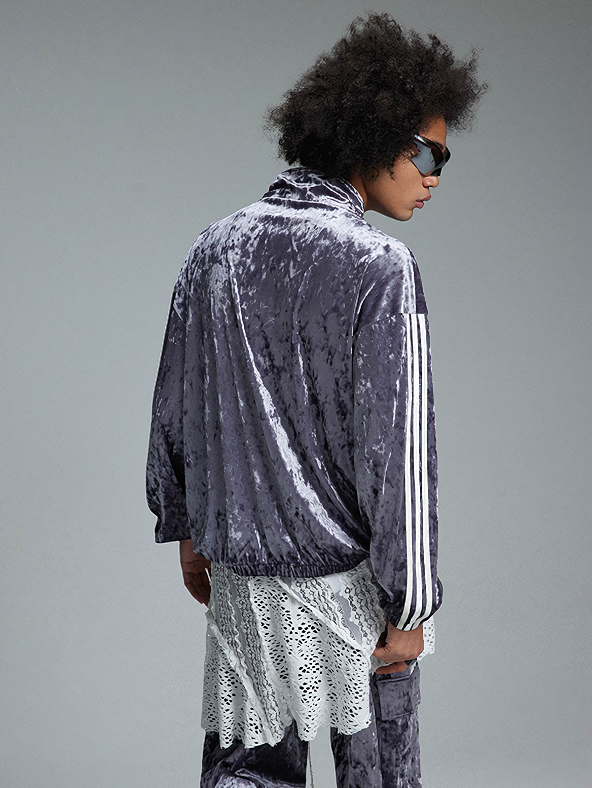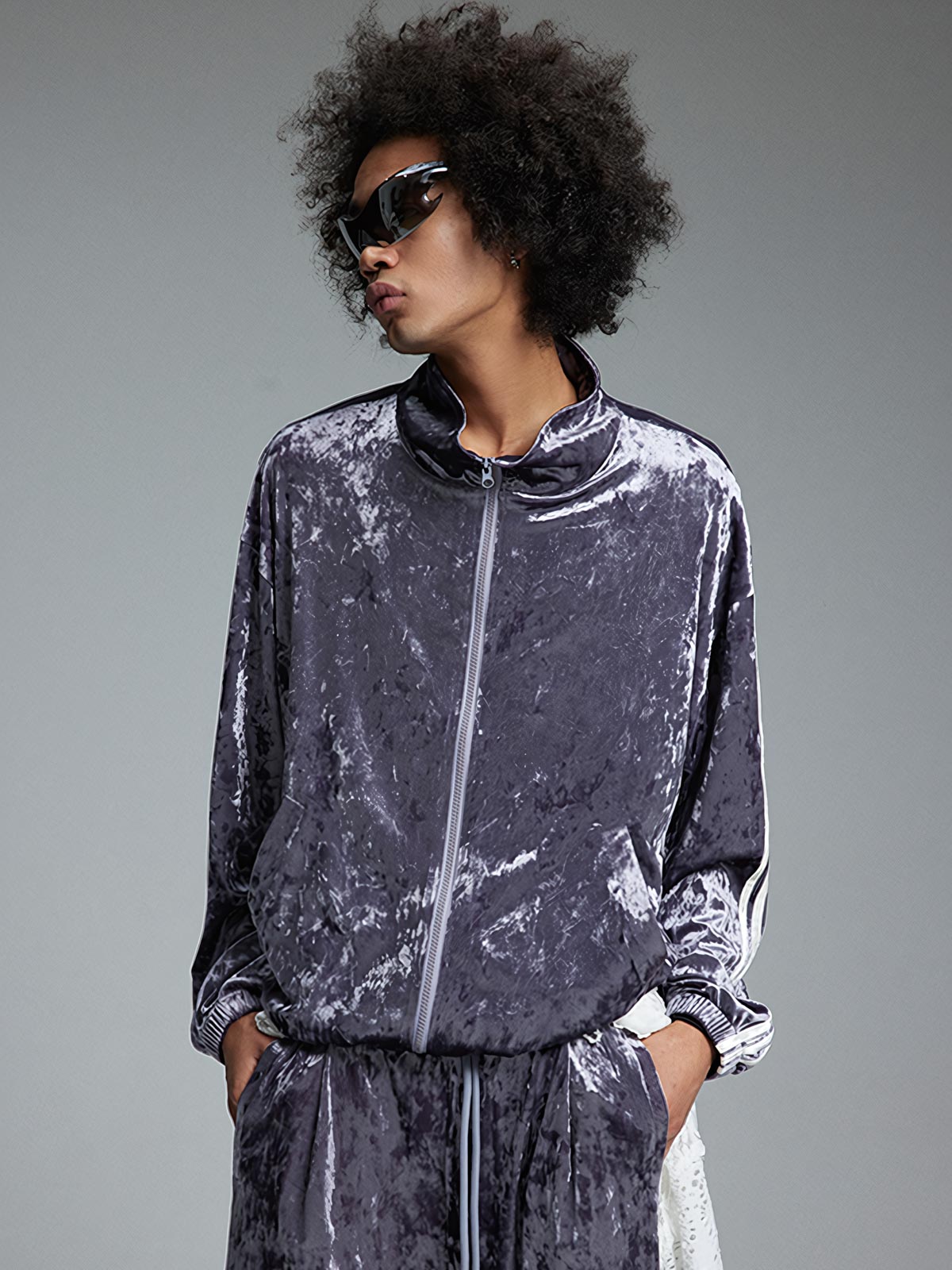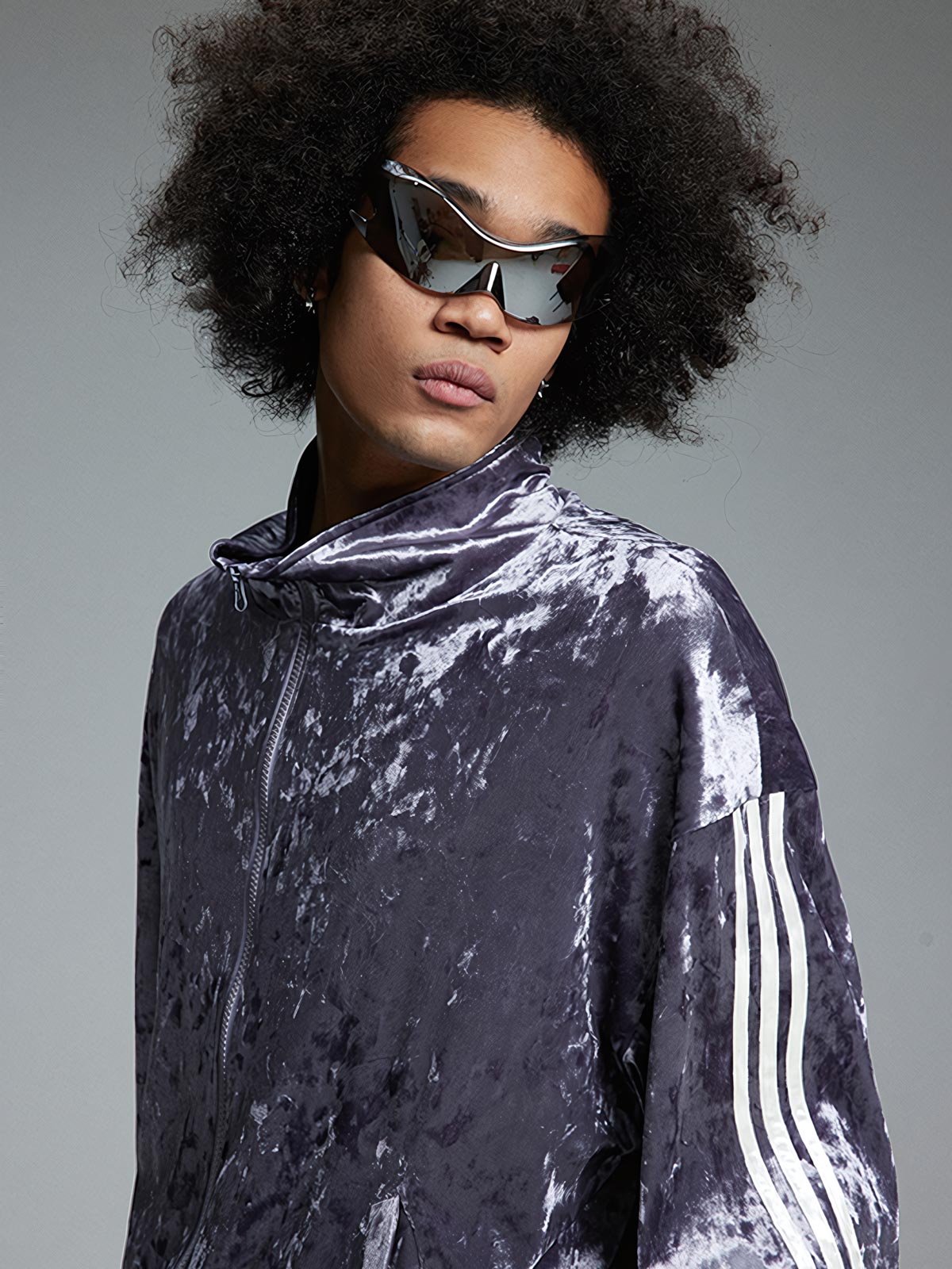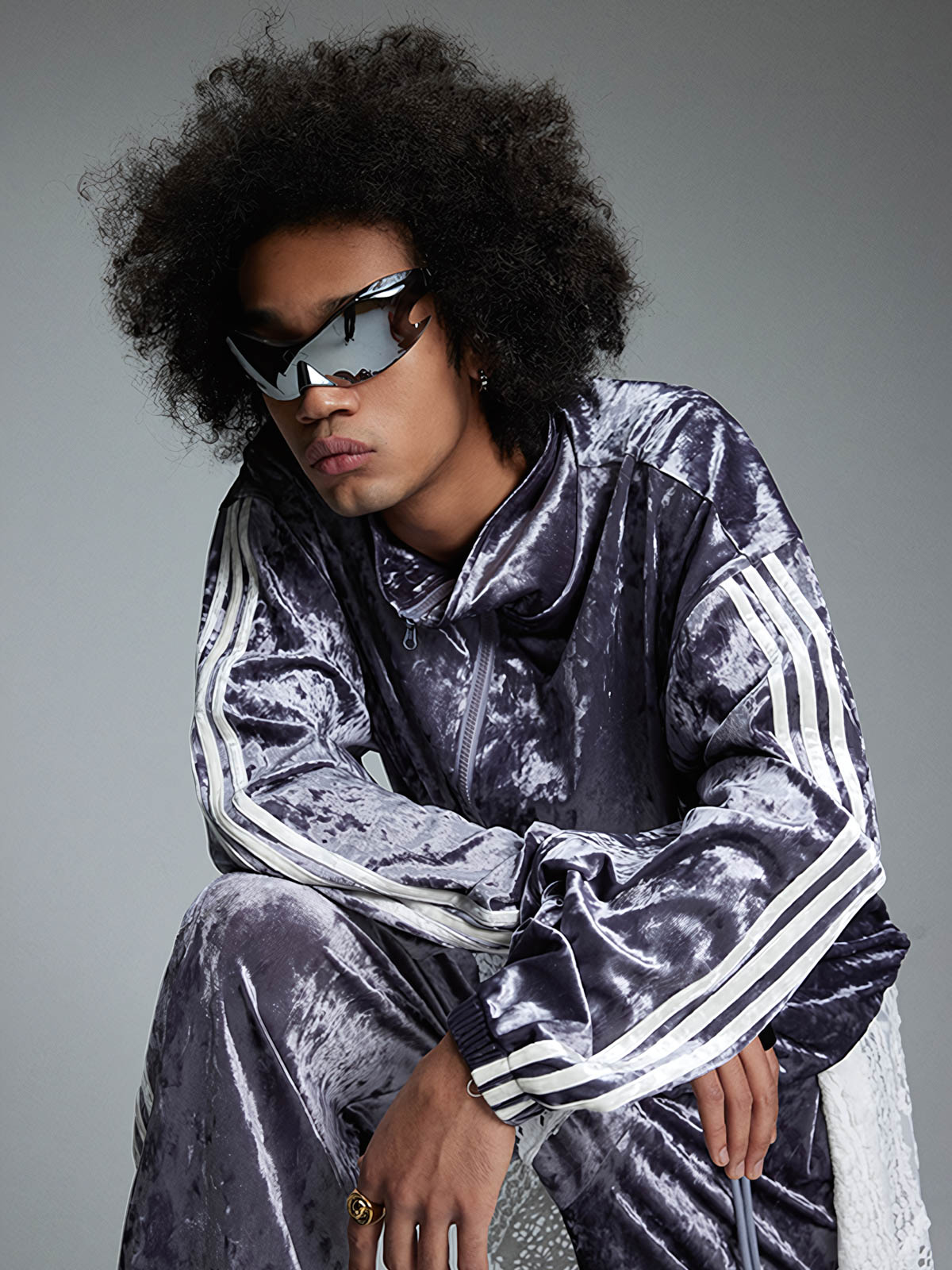 このベロアスポーツジャケットは、独特の生地の質感と現代的なデザインコンセプトを融合し、ファッションとスポーツの要素を組み合わせています。ダイヤモンドベロアの質感は、一風変わった視覚効果を提供し、伝統的なスポーツウェアの典型的なスタイルから一線を画し、新しいトレンドとしての未来感あるファッションを表現しています。