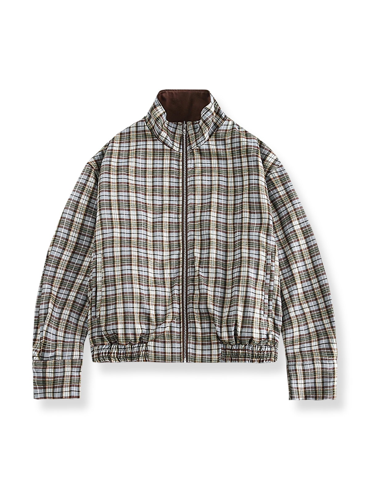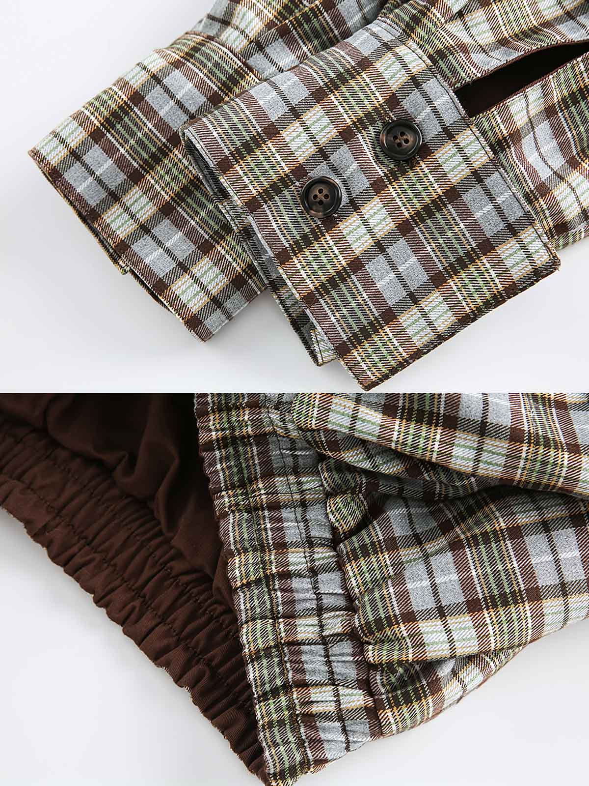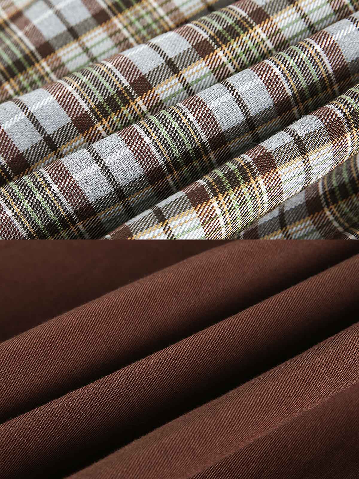 このリバーシブルジャケットは、クラシックなレトロスタイルと現代ファッションの実用性を融合させています。一方の面は伝統的なチェックストライプを展開し、もう一方はシンプルな純カフェカラーで、どちらのデザインスタイルもクラシックな英国スタイルから着想を得ており、20世紀のレトロファッションで人気がありました。