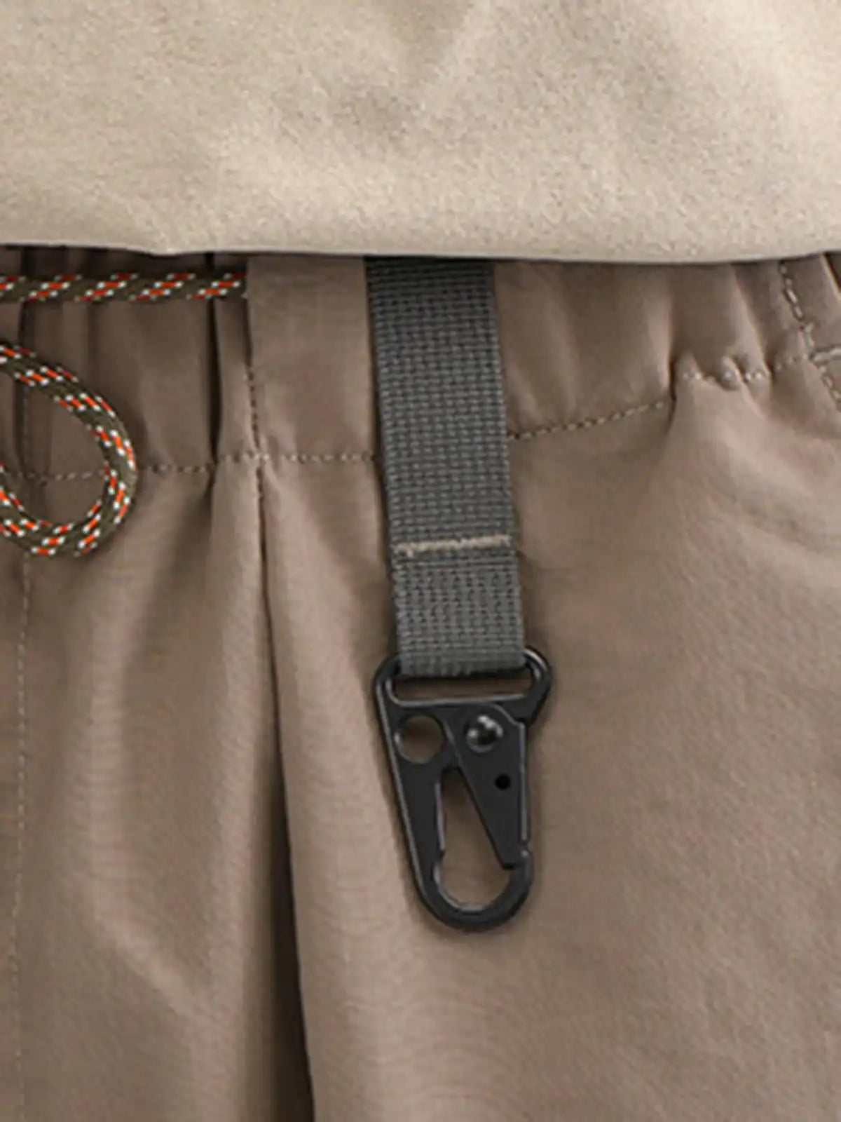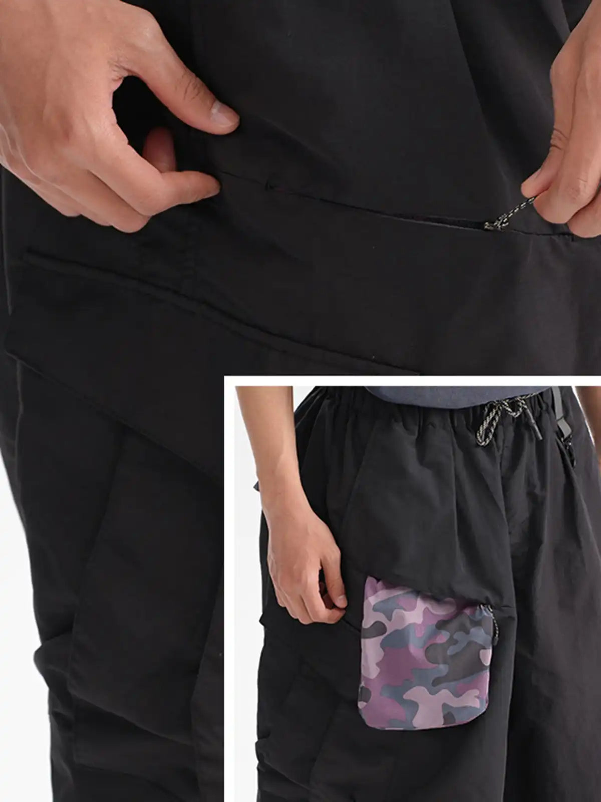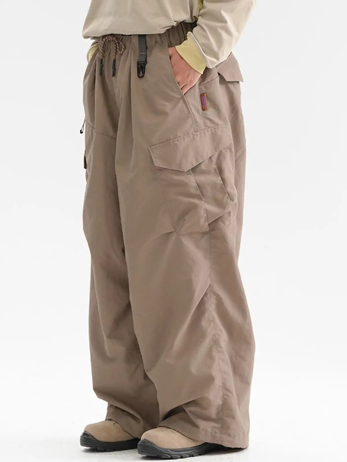 本パンツは、超ワイドシルエットと機能性を両立するために、全体をゴムとドローコードで仕上げたウエスト部と豊富なポケットディテールが特徴です。ナイロン100%の生地は、撥水・防風・速乾性に優れ、アウトドアや日常のストリートスタイルでも安心して着用できる耐久性を持ちながら、軽量で通気性も抜群です。さらに、脚口には調節可能なアジャスターが搭載され、シルエットやフィット感を自在に調整できるため、動きやすさとスタイリッシュさを同時に実現しています。以上のデザインと機能性の組み合わせにより、快適で実用的なユニセックスアイテムとして、幅広いシーンで活躍することができます。