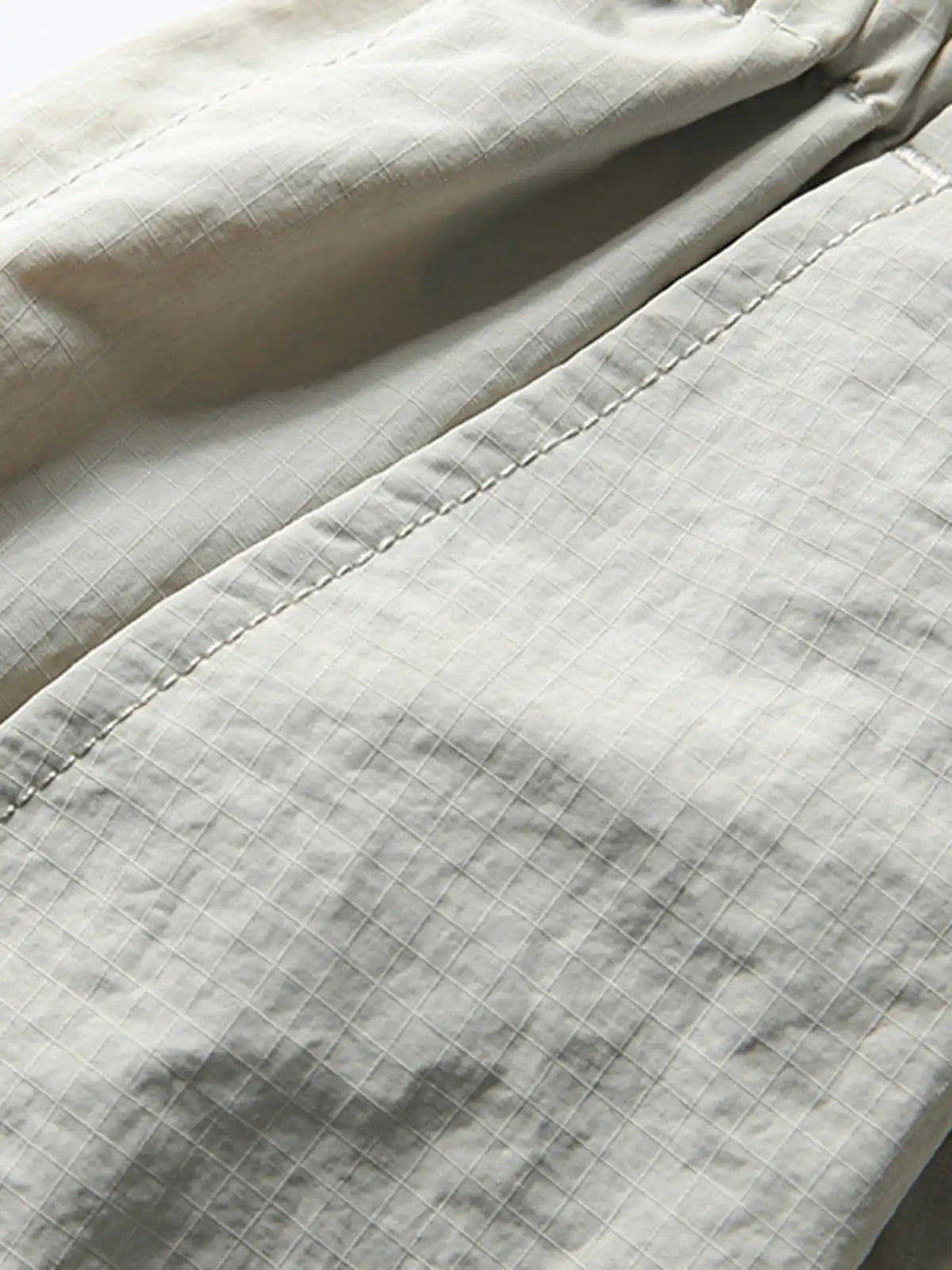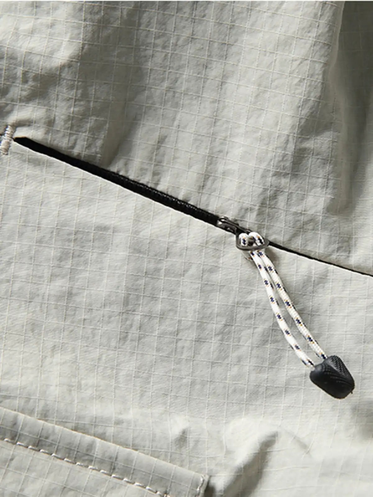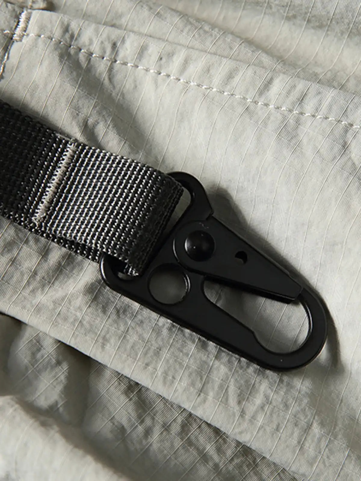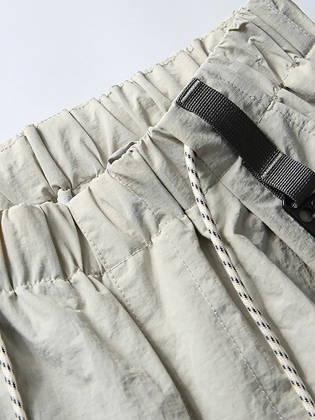 本パンツは、超ワイドシルエットと機能性を両立するために、全体をゴムとドローコードで仕上げたウエスト部と豊富なポケットディテールが特徴です。ナイロン100%の生地は、撥水・防風・速乾性に優れ、アウトドアや日常のストリートスタイルでも安心して着用できる耐久性を持ちながら、軽量で通気性も抜群です。さらに、脚口には調節可能なアジャスターが搭載され、シルエットやフィット感を自在に調整できるため、動きやすさとスタイリッシュさを同時に実現しています。以上のデザインと機能性の組み合わせにより、快適で実用的なユニセックスアイテムとして、幅広いシーンで活躍することができます。