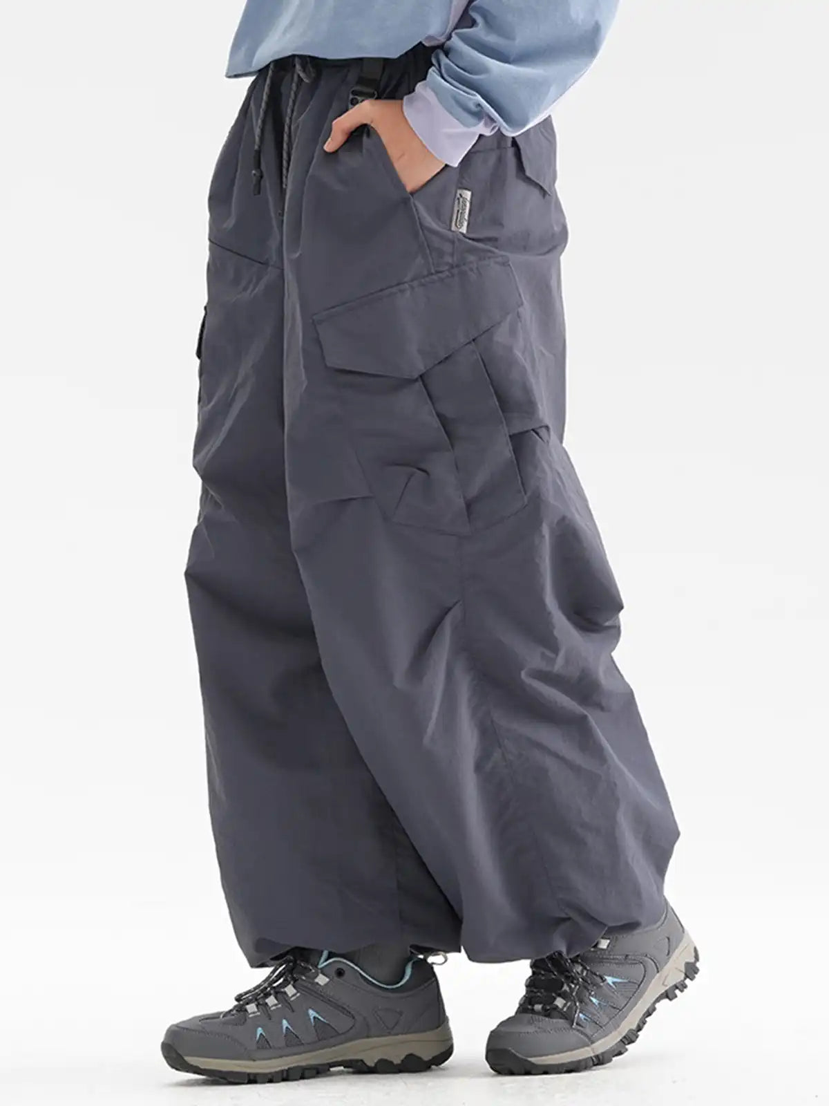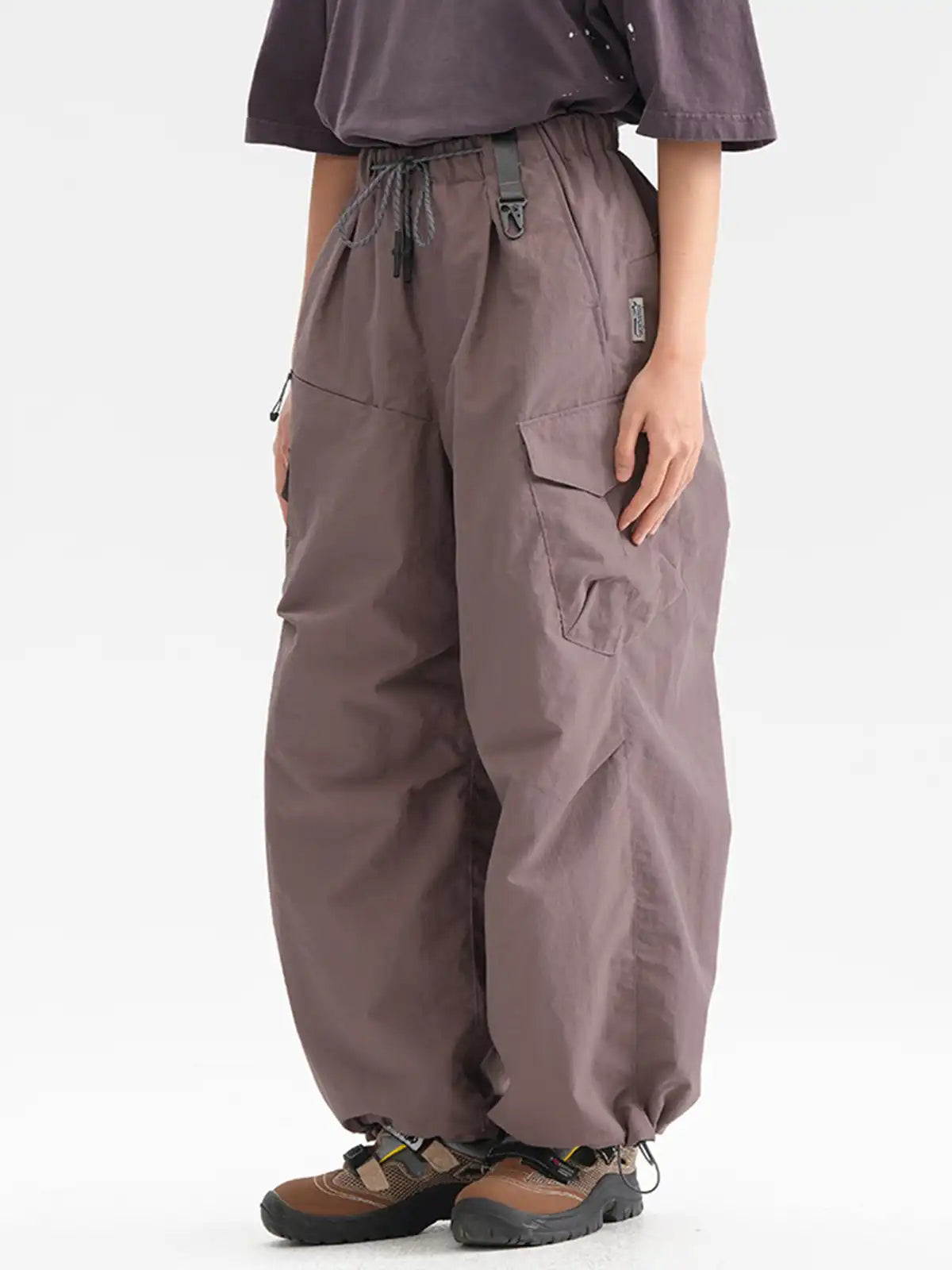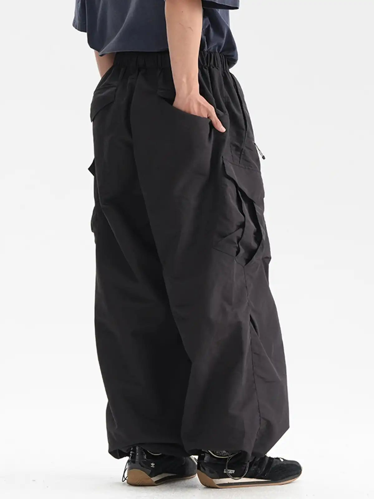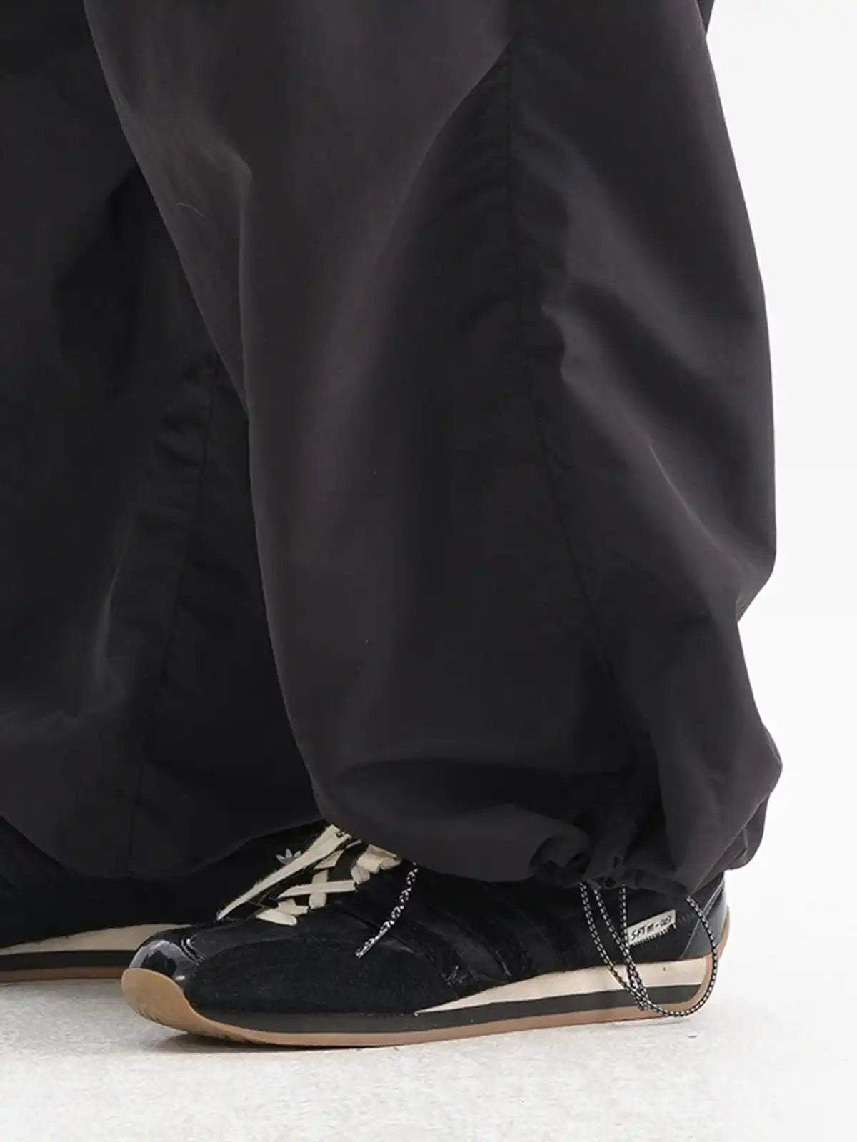 このパラシュートパンツは、防水・速乾性を備えた軽量ナイロン生地と超ワイドシルエットを組み合わせ、機能性とファッション性を両立させた一着です。