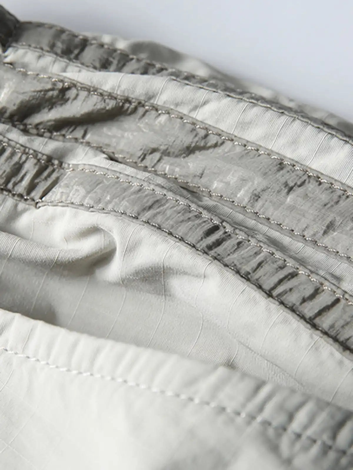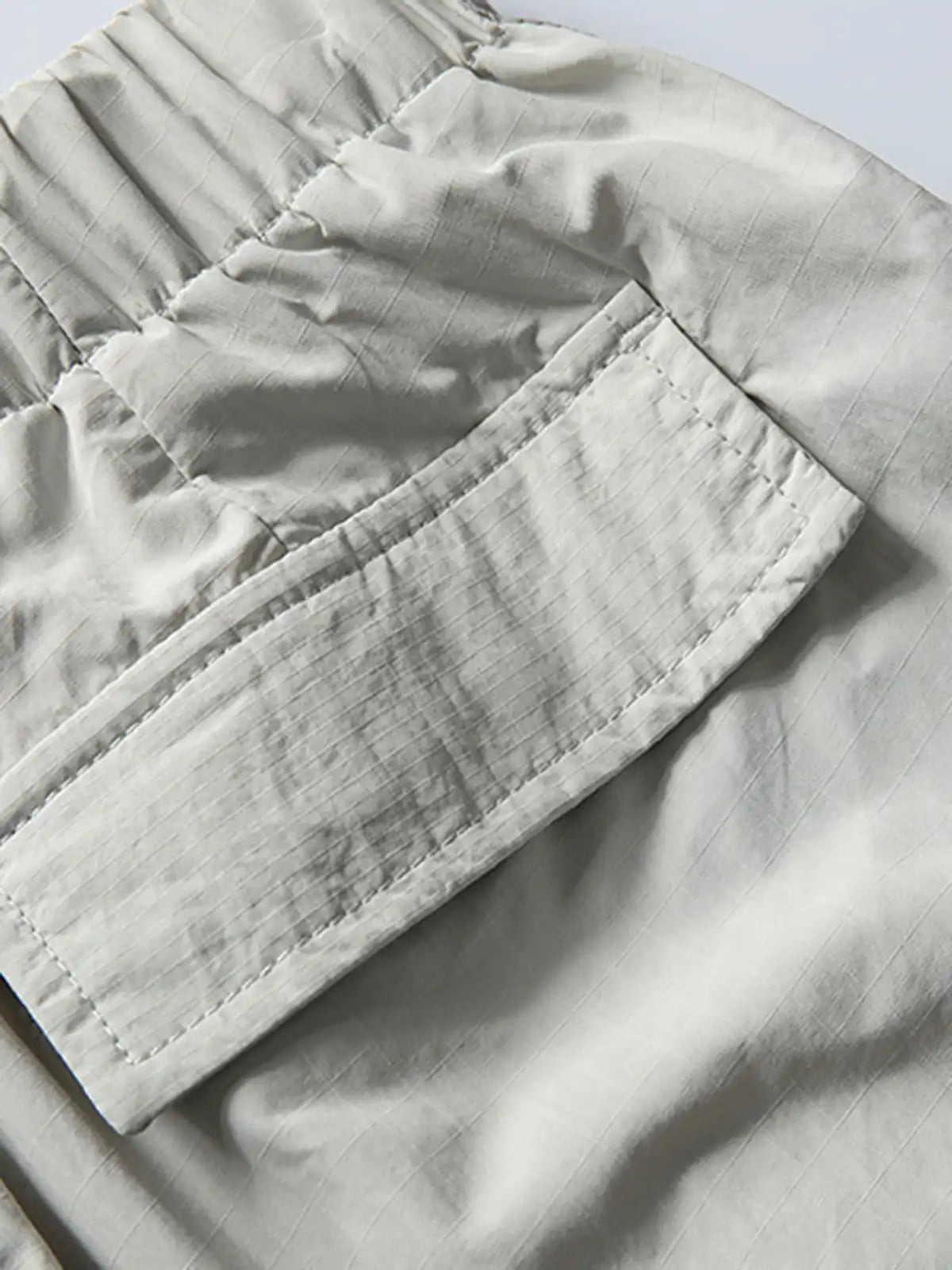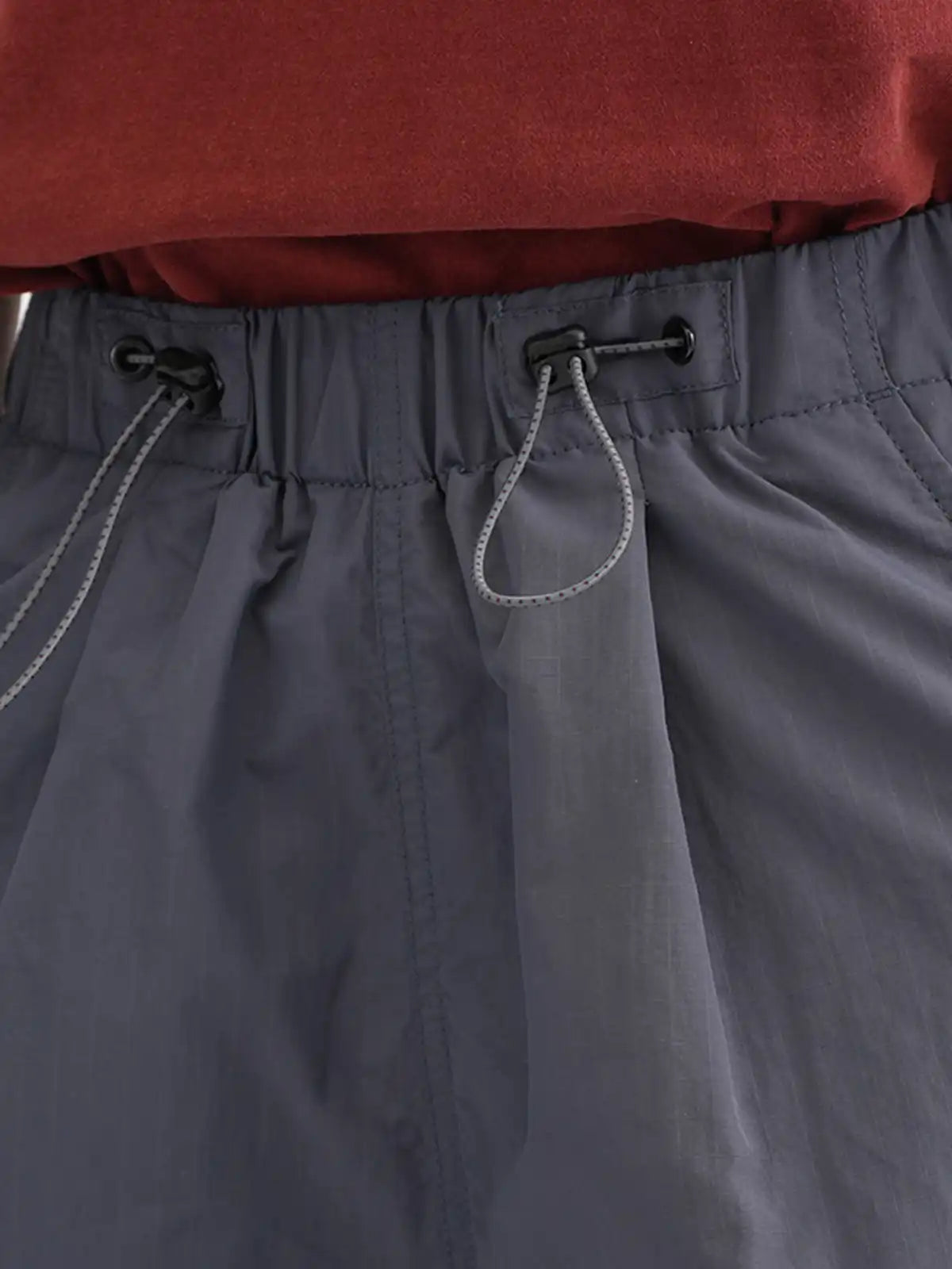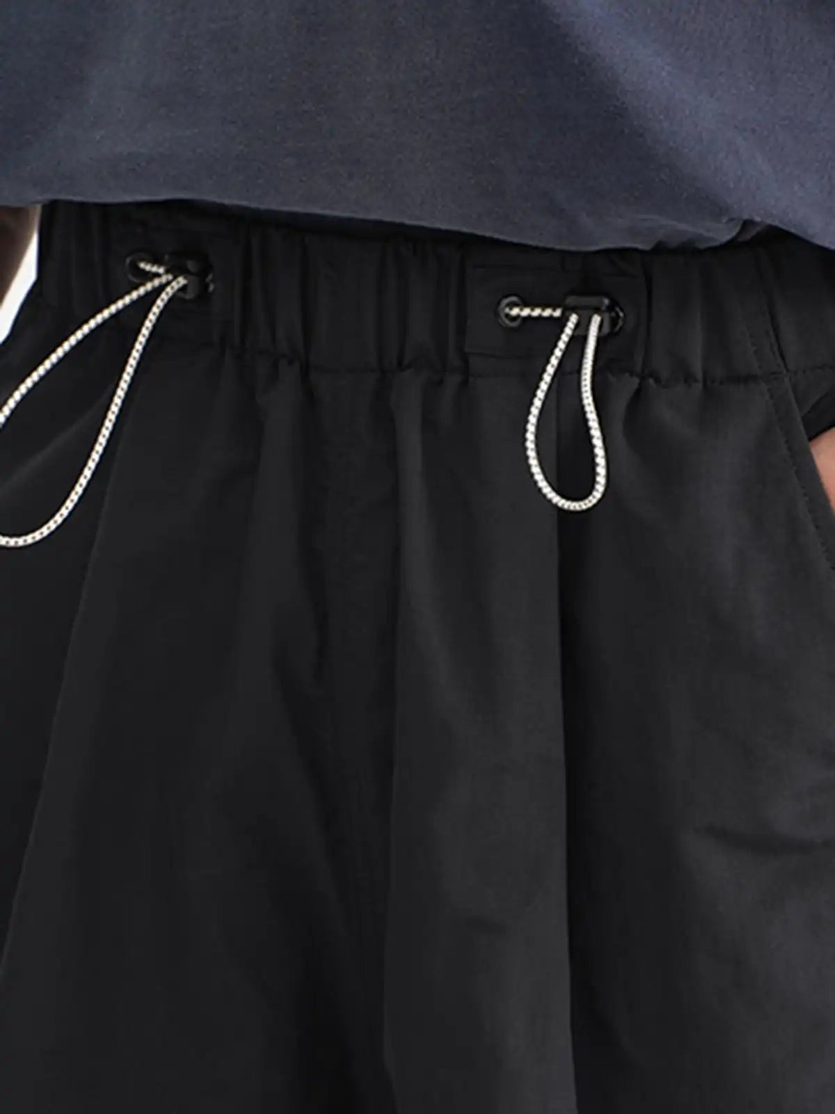 この超ワイドカーゴパンツは、パラシュート風のデザインと多機能ポケット、調整可能な裾を備え、アウトドアからタウンユースまで幅広く活躍する一着です。