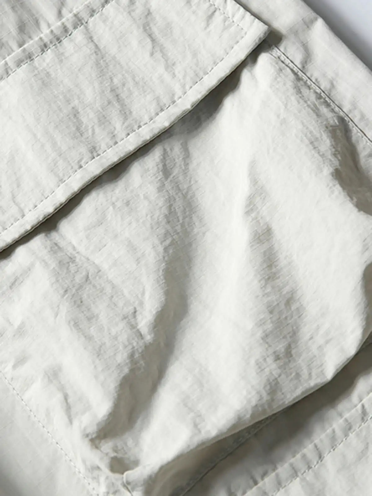 撥水性と防風性に優れたナイロン生地は、通気性を損なわず軽量で動きやすいのが特徴。しわになりにくく、さらに速乾性があるため、お手入れも簡単です。
