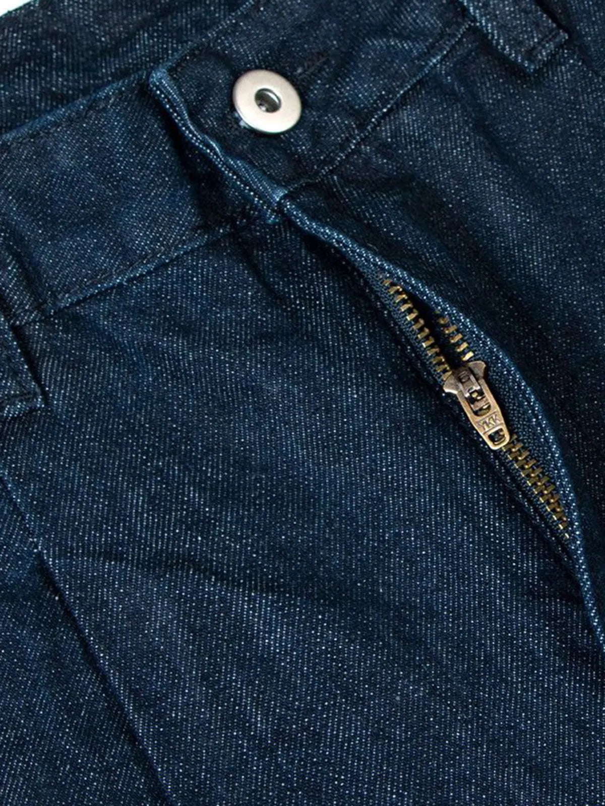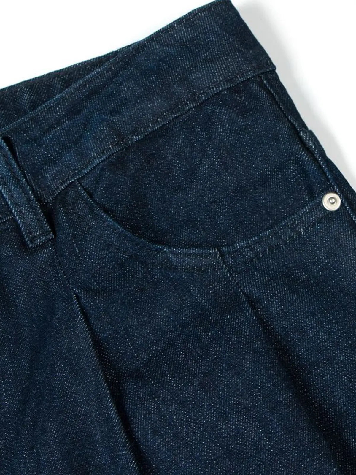 このワイドデニムパンツは、1920〜30年代の作業着に着想を得たデザインを継承し、80%コットン×20%ポリエステルの生地が生み出す程よいハリ感としなやかさで、履くだけで力強い存在感を放ちます。バギーシルエットは足元をすっきり見せつつ、ロールアップで軽快にも、ブーツインでワークテイストにも対応。インディゴの色落ち変化を楽しみながら、自分らしいカジュアルスタイルを完成させてください。