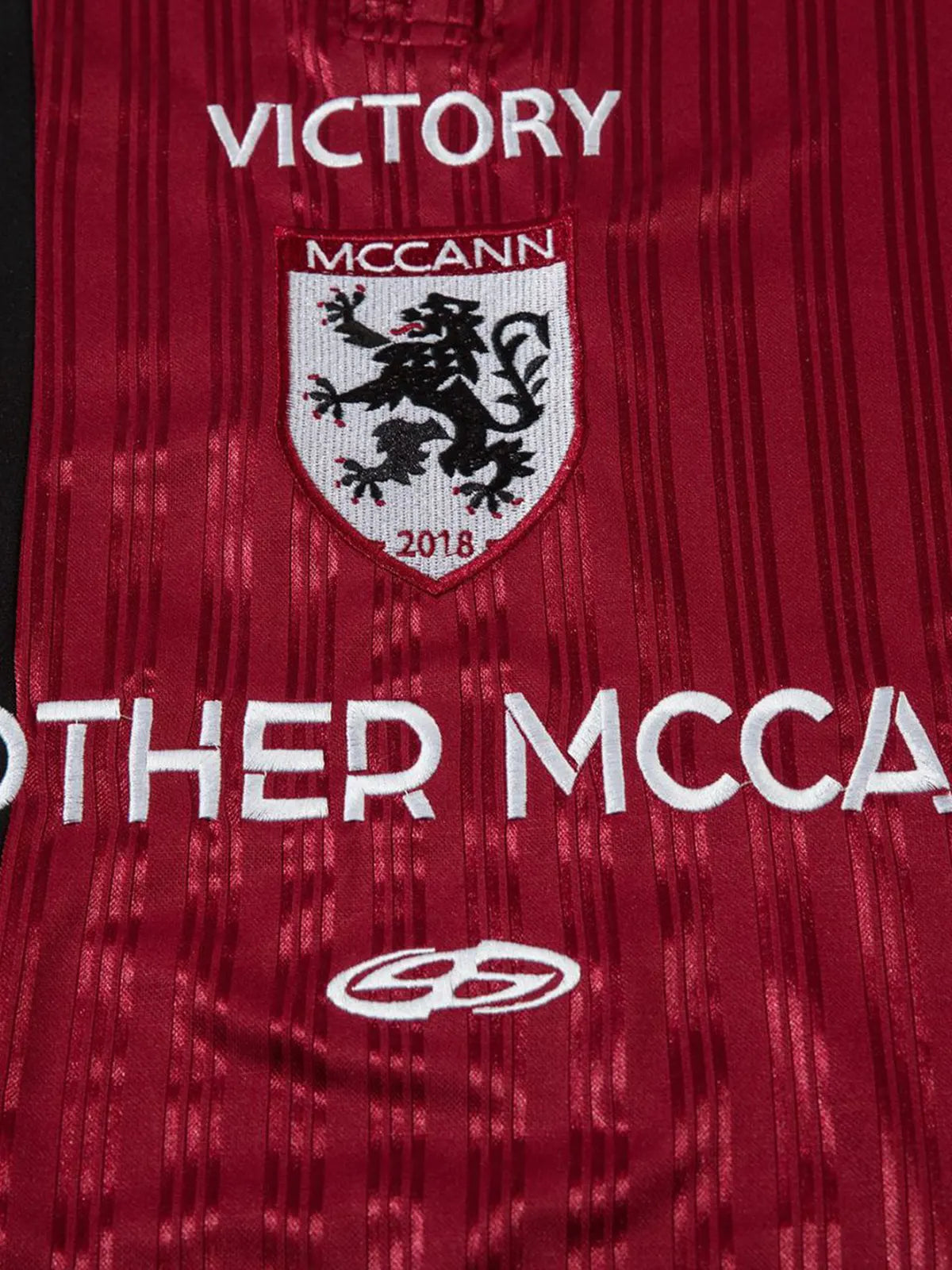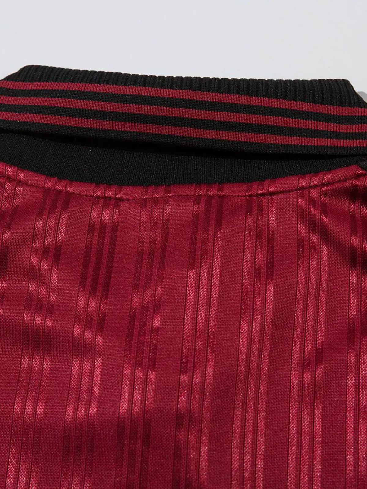 1990年代北米フットボールジャージを想起させる配色パネルとリブラインを取り入れ、胸元には勝利を象徴するクレスト刺繍と立体ラバーロゴを配置。光沢のあるポリエステルニットは軽量かつ速乾性に優れ、試合観戦やストリートスタイルで活躍する。リブ付きカフが風の侵入を抑え、ポロカラーと二つボタンの前立てがクラシックな表情を保ちつつモダンな存在感を放つ。